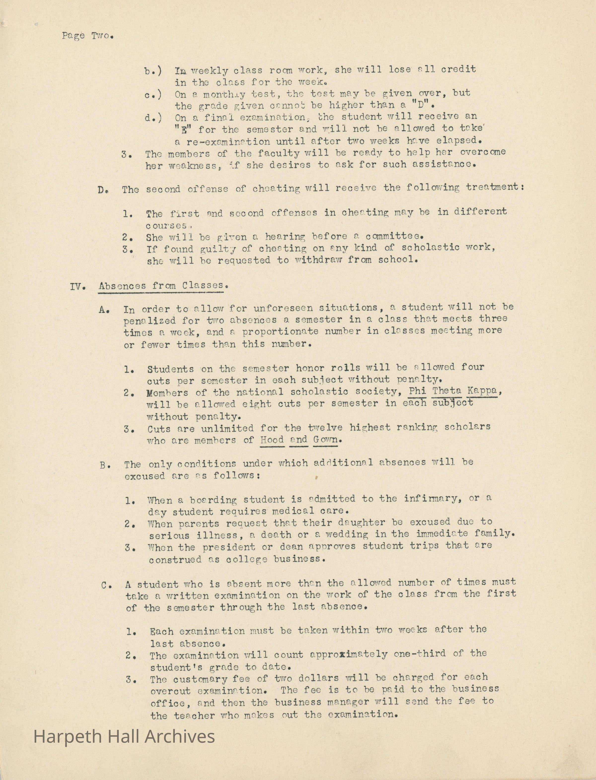 Ward-Belmont Academic Policy, 1943-1944Entry/Object ID