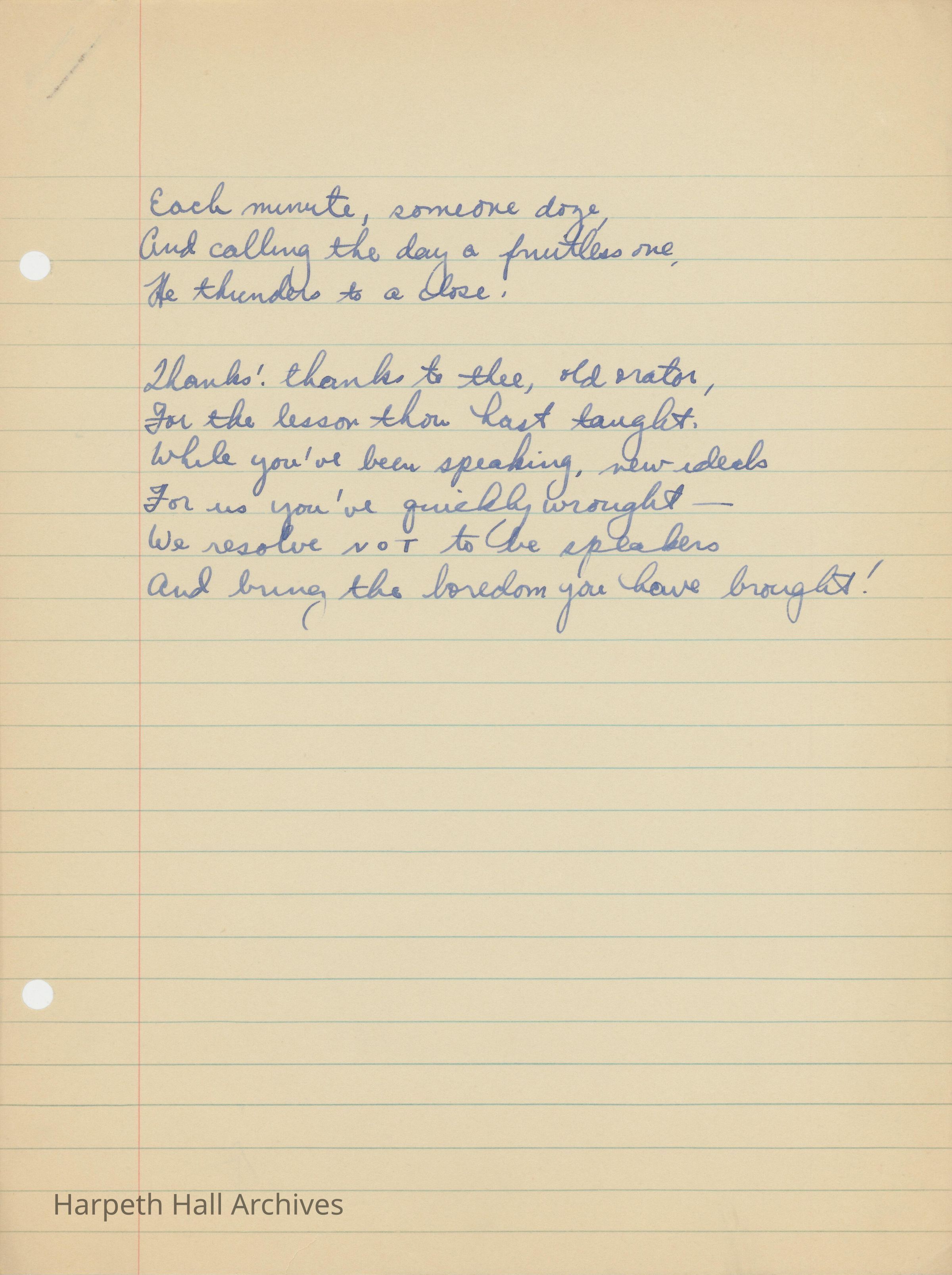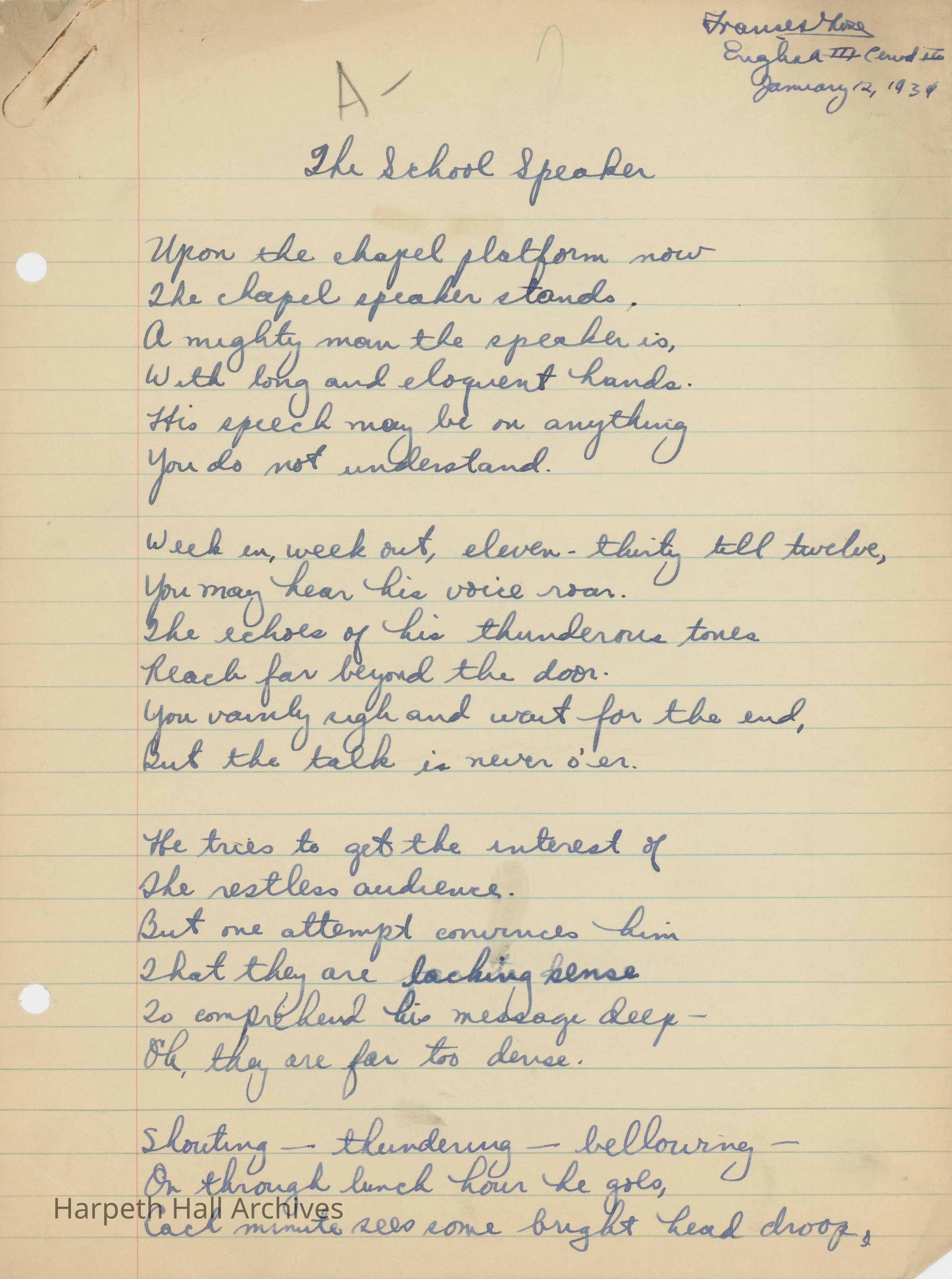 A poem entitled, "The School Speaker" written by Ward-Belmont student Frances Rose on January 12th, 1934.Collection