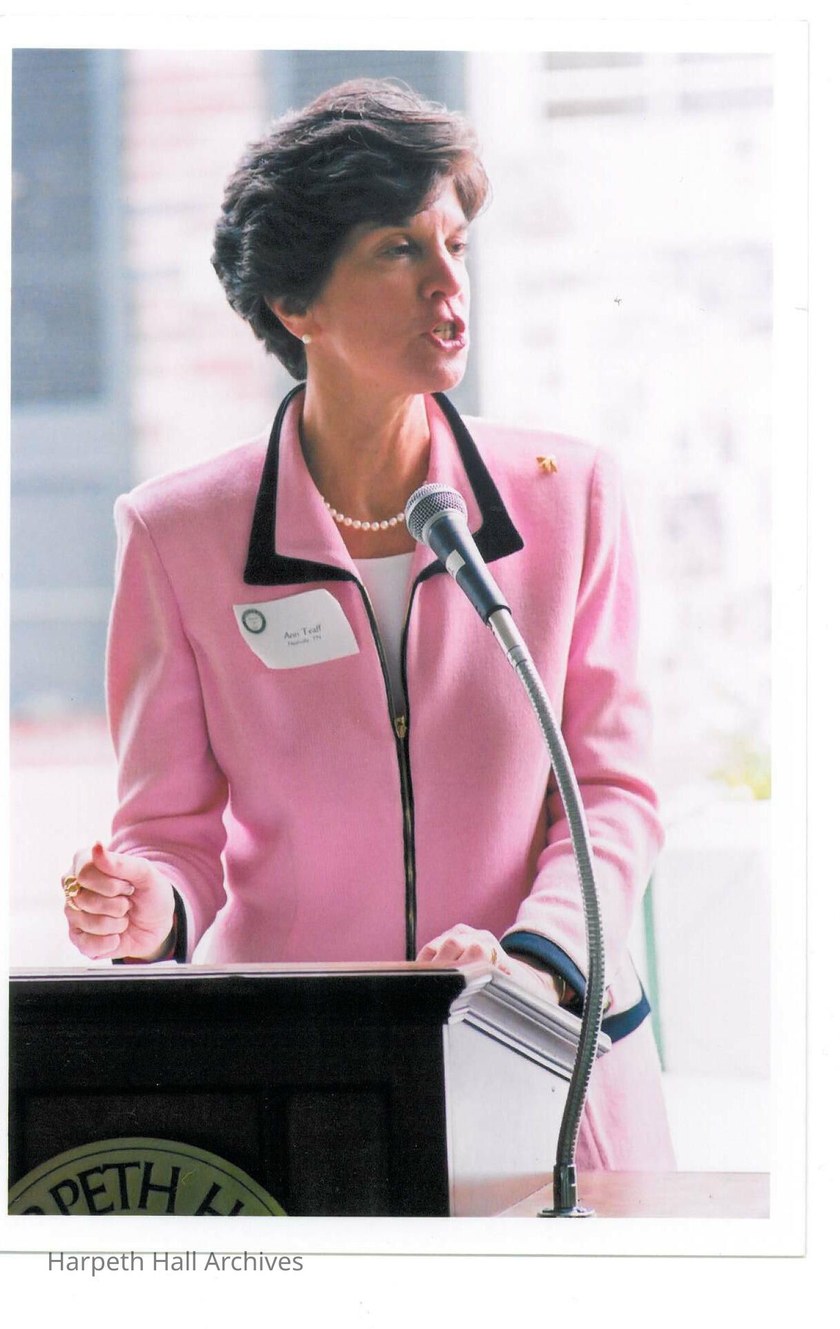 Ann Teaff (Head of School 1998-2014) at the Grand Alumnae Luncheon on May 4th, 2002 behind Souby Hall at the Harpeth Hall School