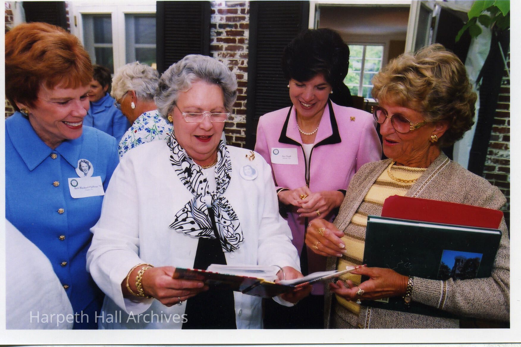 Ann Teaff (Head of School 1998-2014) with Truesdell "Trudy" Grimes Madden (1952), Elizabeth "Beth" Blackard Hoffman (1952) and one other at the Grand Alumnae Luncheon on May 4th, 2002 behind Souby Hall at the Harpeth Hall School