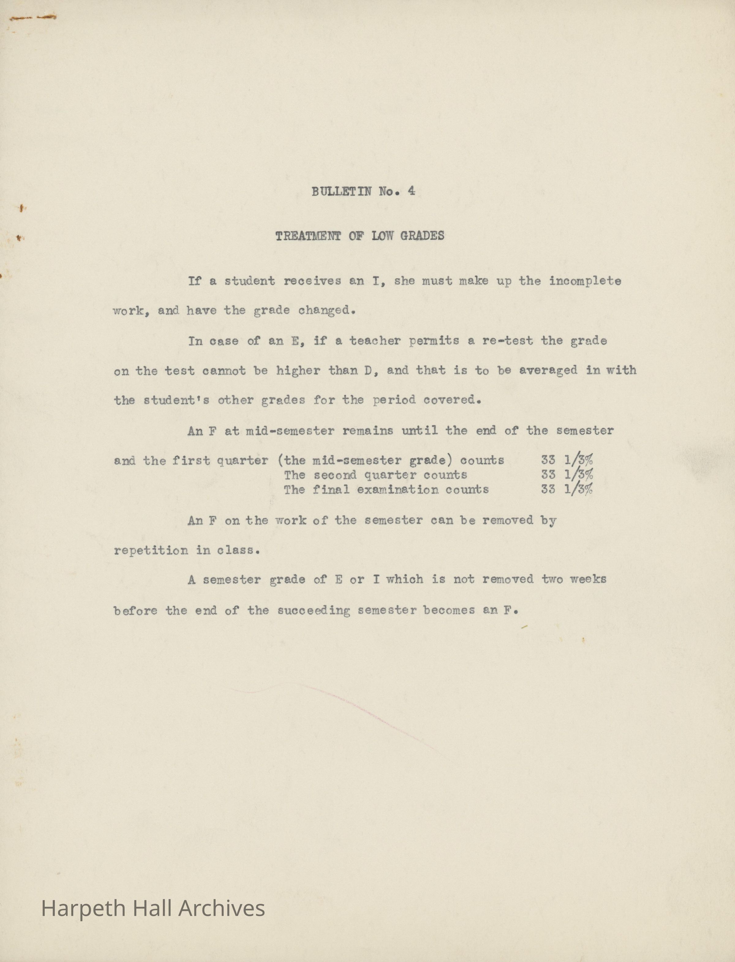 Bulletin No. 2 and 4 which discuss low grades, missing tests, and dropping courses.
