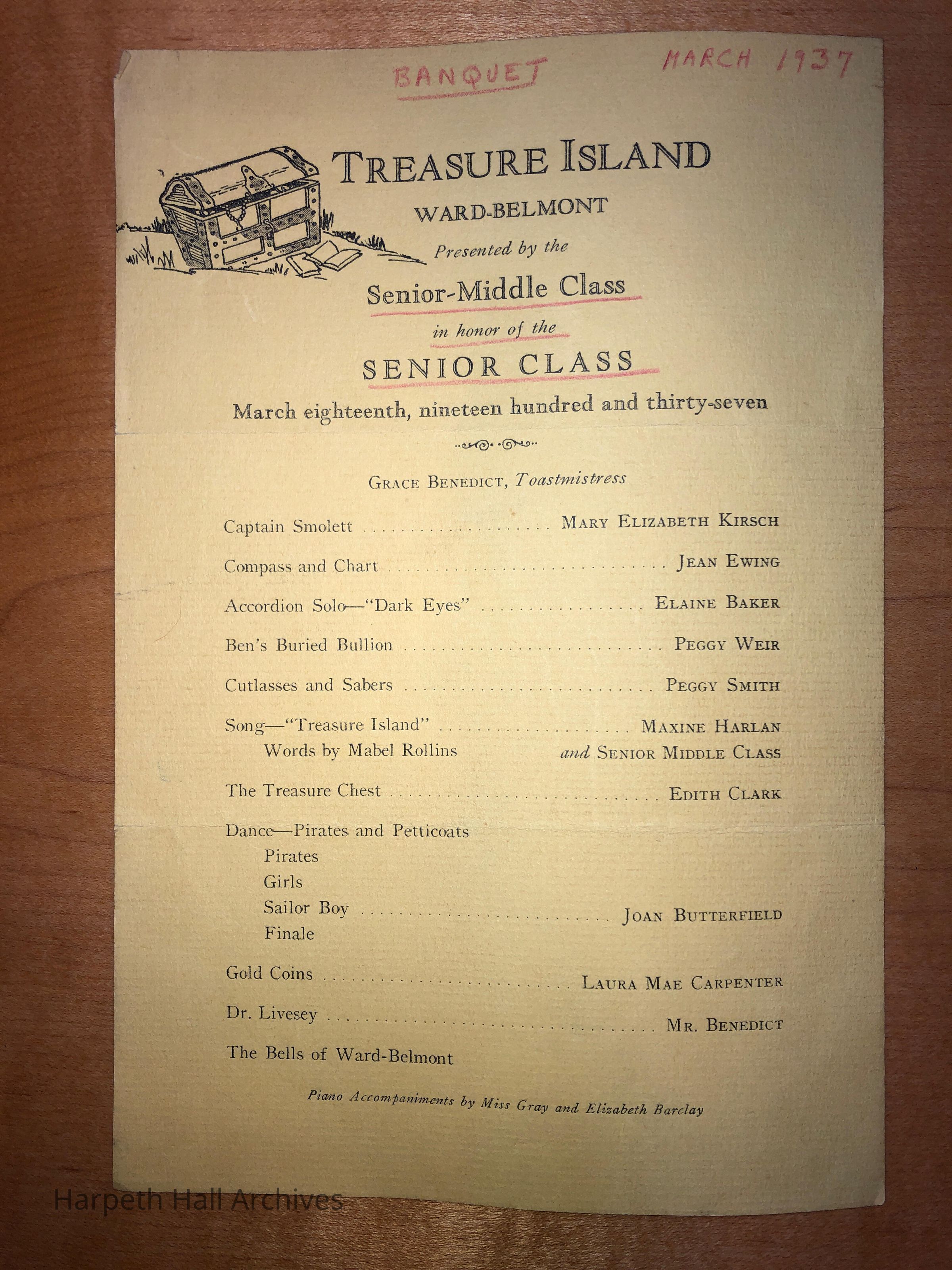 Treasure Island Banquet? at Ward-Belmont presented by the Senior-Middle Class in honor of the Senior Class on March 18th, 1937.