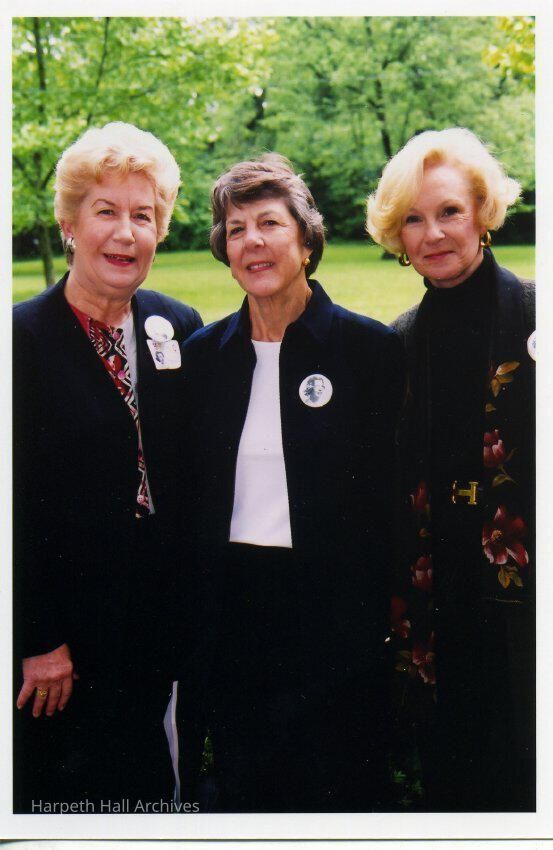 Martha Barrick Caldwell (1952), on the right, and others at the Grand Alumnae Luncheon of May 4th, 2002 on the back porch of Souby Hall