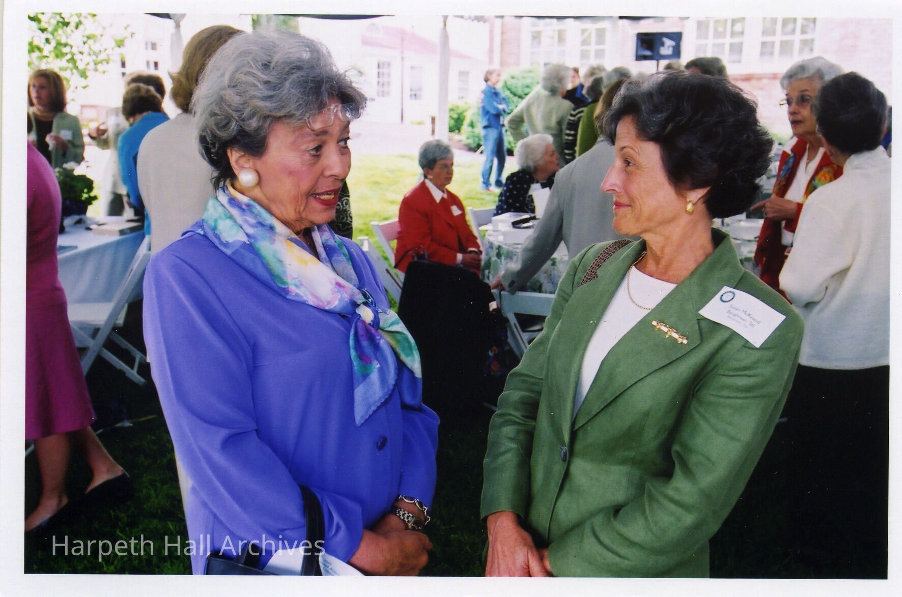 2nd from left is Susan McKeand Baughman (1956) at the Grand Alumnae Luncheon on May 4th, 2002 behind Souby Hall at the Harpeth Hall School