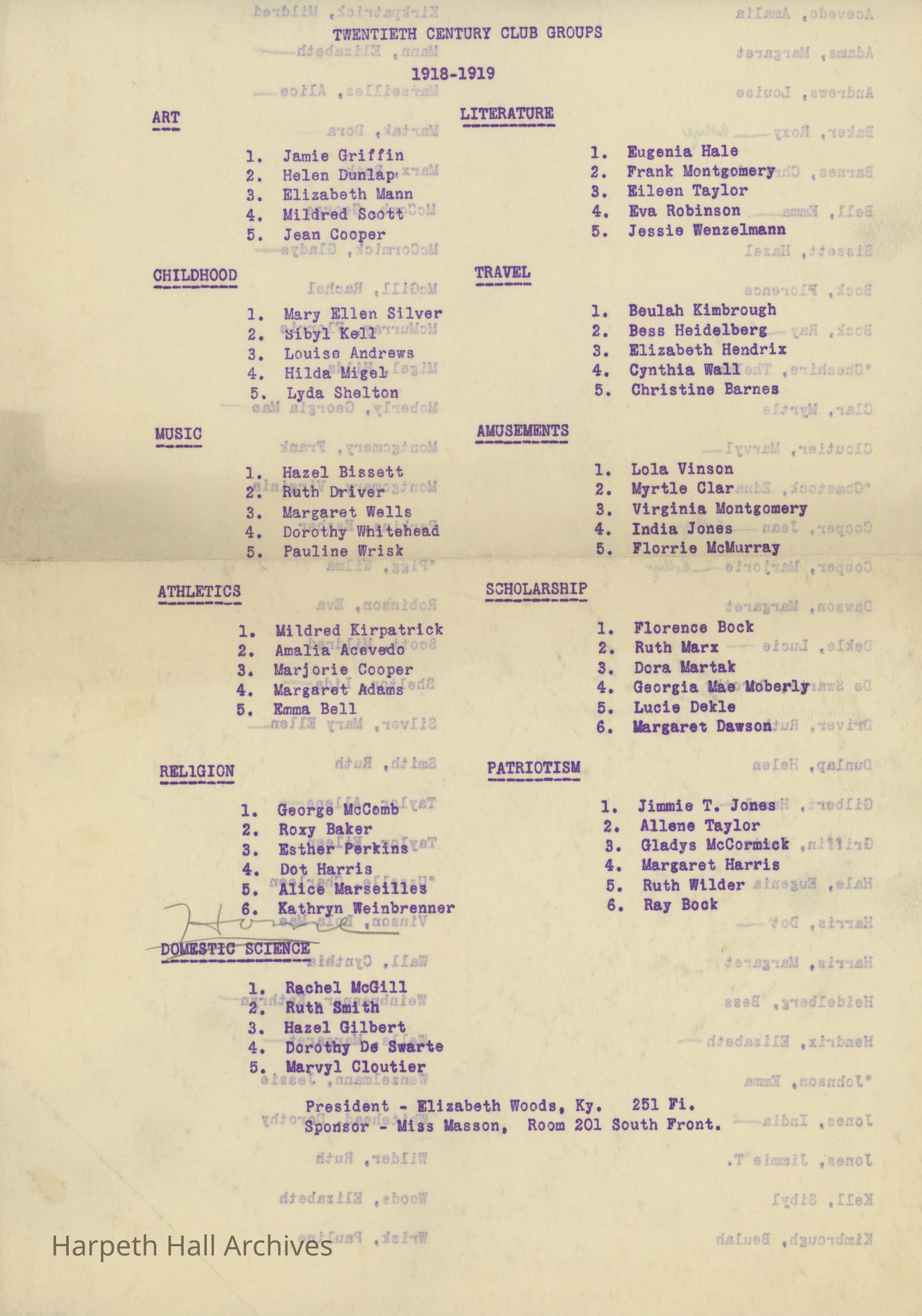 Ward-Belmont, Twentieth Century Club, 1918, 1919