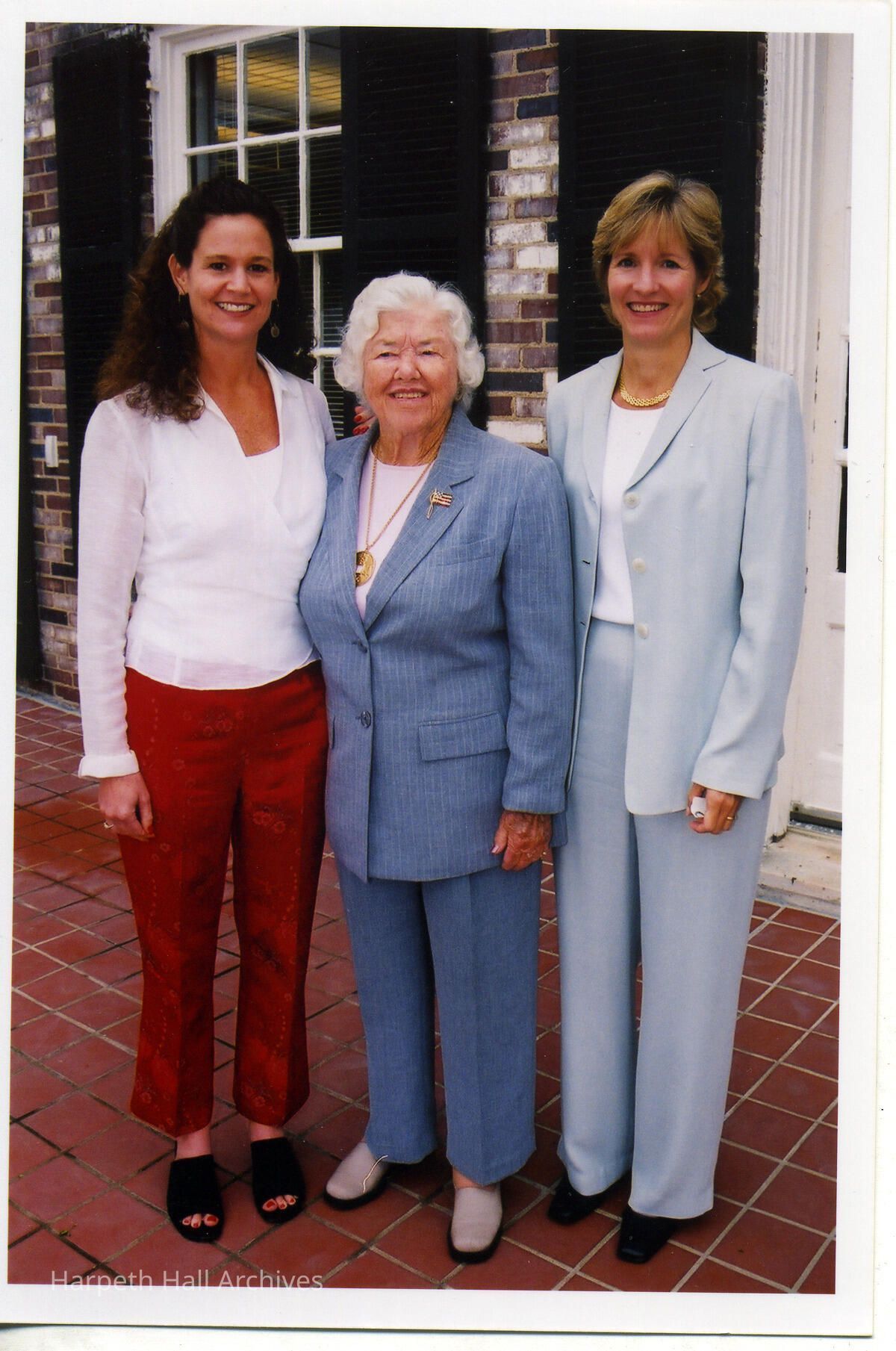 Sarah Nichols (1983), Patty Chadwell (1935) and Emily Perkins Zerfoss (1975) at the Grand Alumnae Luncheon on May 4th, 2002 behind Souby Hall at the Harpeth Hall School