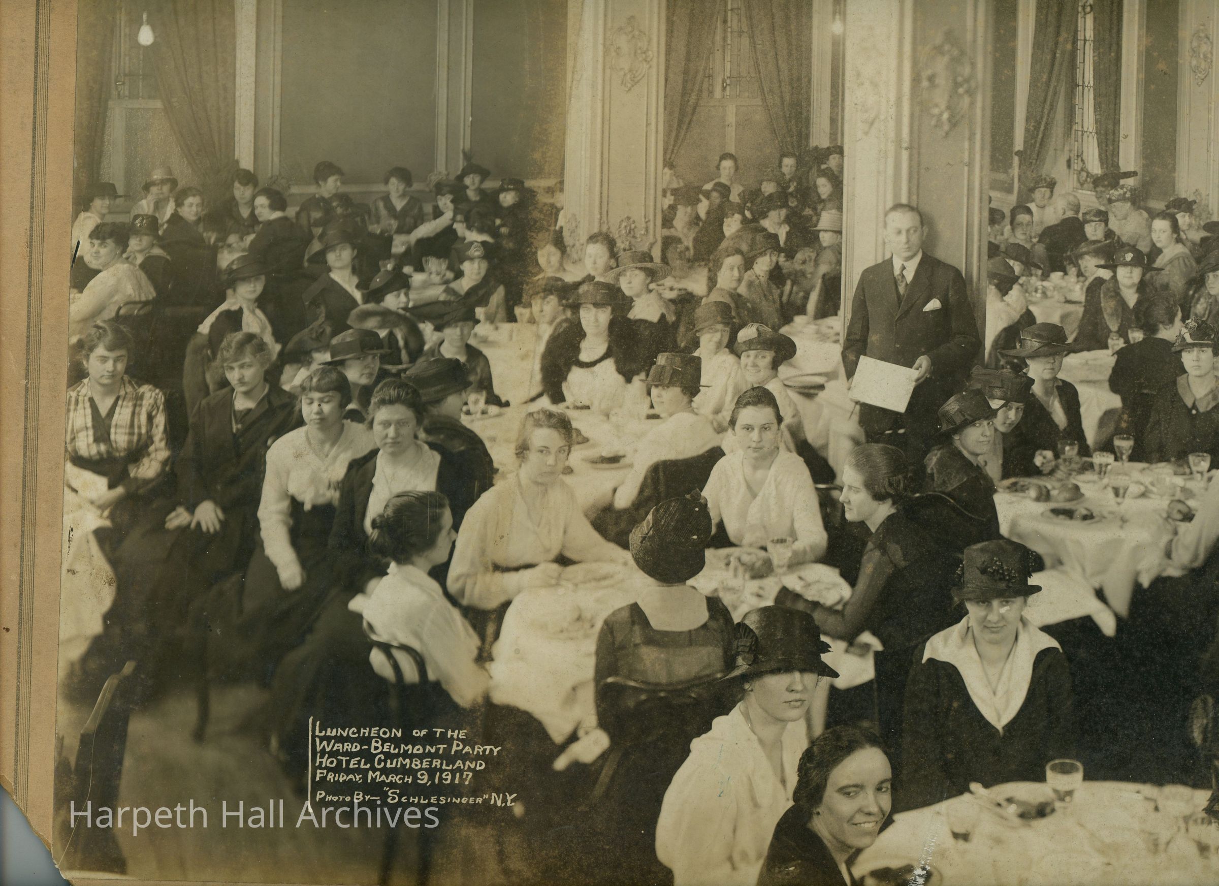Large size photograph (20x14) of the Ward-Belmont Party Luncheon at the Hotel Cumberland, Friday, March 9, 1917. Photo by Schlesinger N.Y. Dr. Blanton (President of Ward-Belmont and Ward Seminary) is handwritten on the back.Context