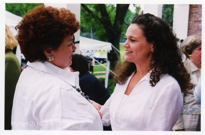 Rosie Paschall (Faculty) with Sarah Nichols (1983) at the Grand Alumnae Luncheon on May 4th, 2002 behind Souby Hall at the Harpeth Hall School