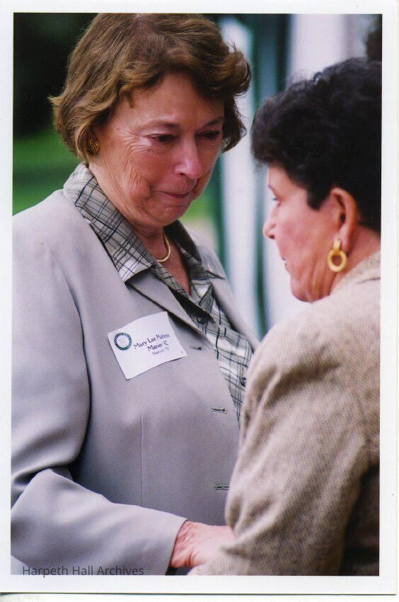 Mary Lee Mathews Manier (1942) with Mary "Polly" Jordan Nichols (1953) at the Grand Alumnae Luncheon on May 4th, 2002 behind Souby Hall at the Harpeth Hall School