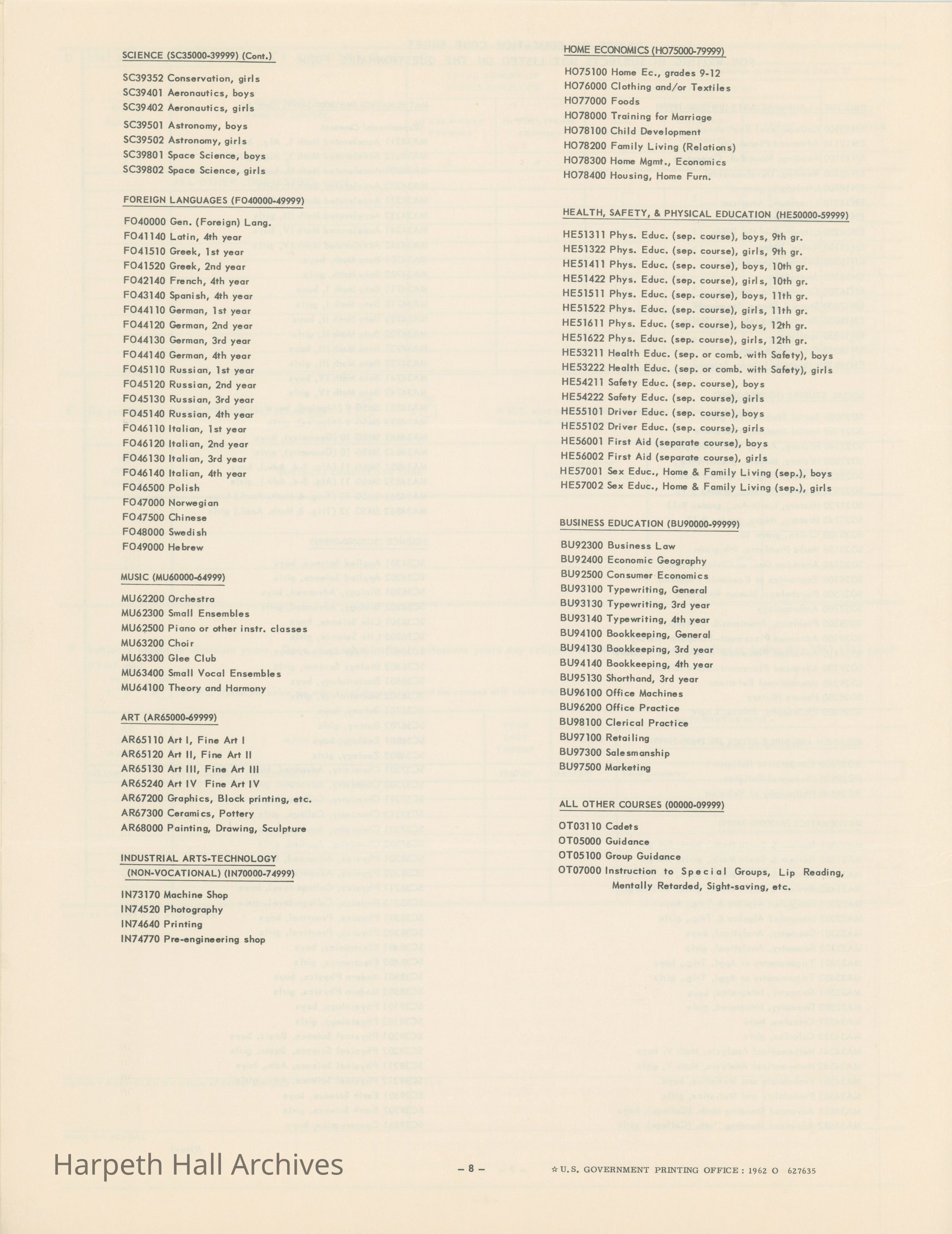 Survey of Subject Offerings and Enrollments in Grades 9-12 of Nonpublic Secondary Schools, 1961-62Entry/Object ID