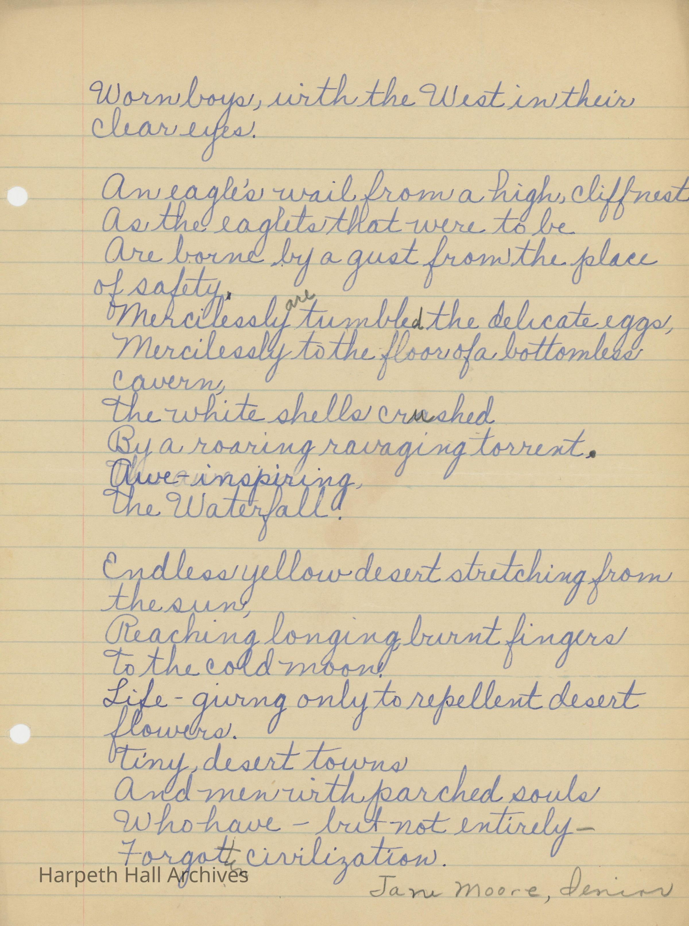 Various poems written by Ward-Belmont senior, Jane Moore.