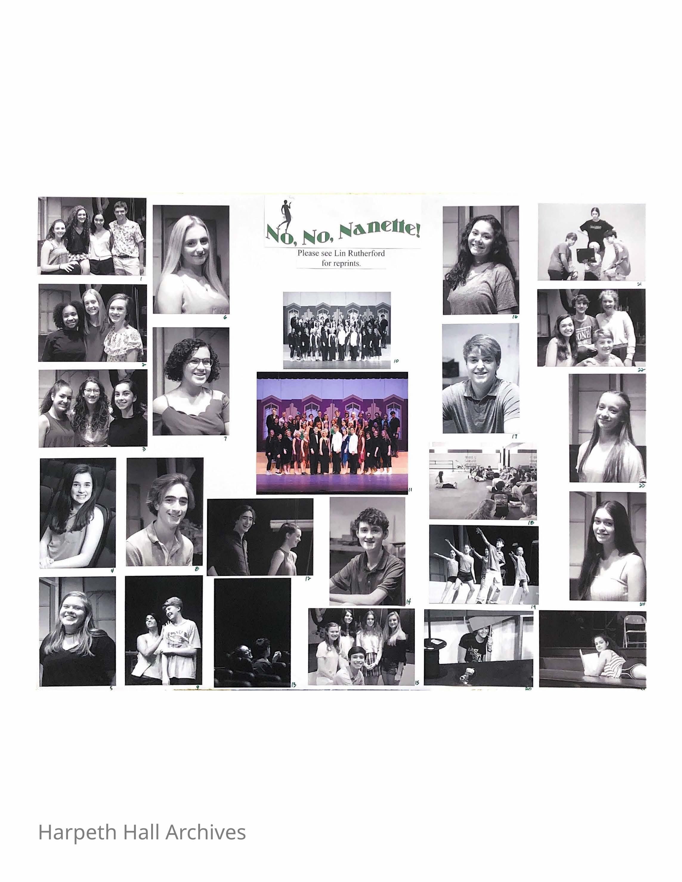 The cast board for the showing of No, No, Nanette! put on by the Harpeth Hall Playmakers in August of 2019.