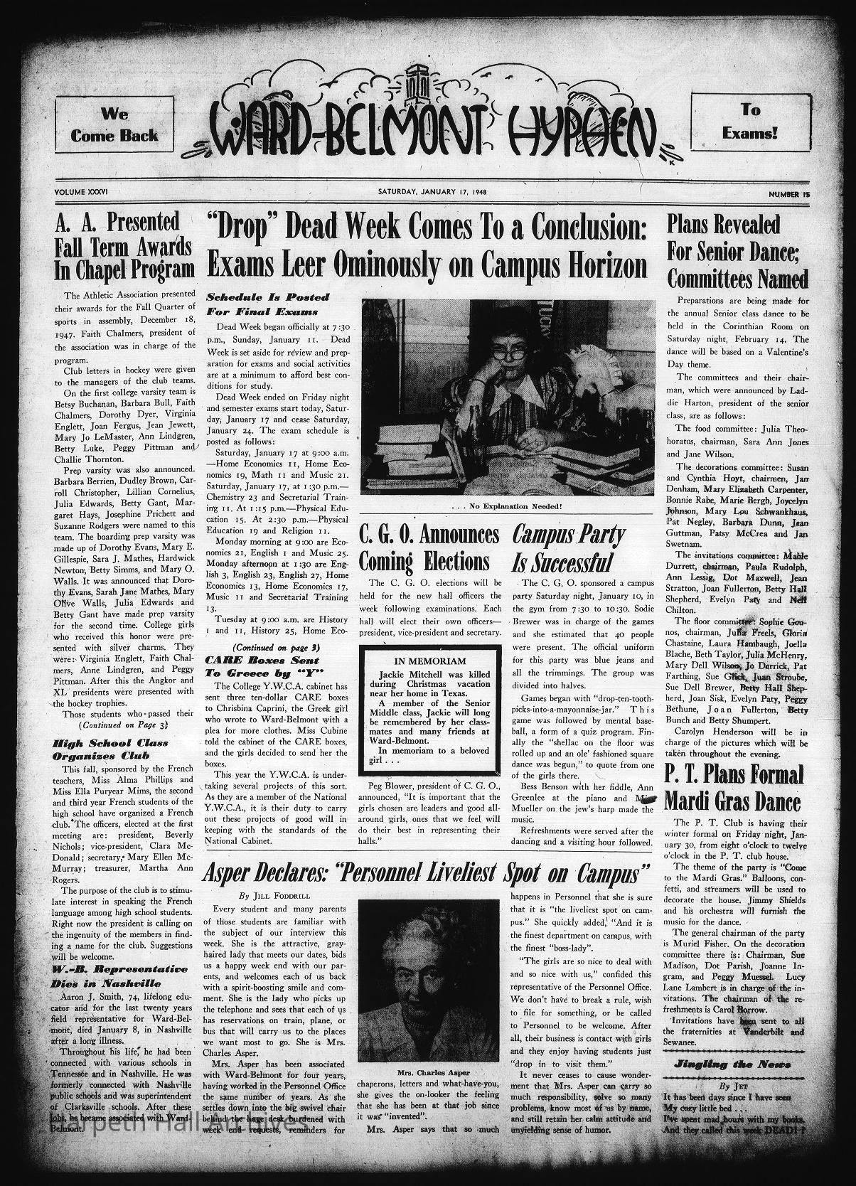 The link to see the online digitized copy of all of the Ward Belmont newspapers from 1948 is at the bottom of the page under "Web Links"!