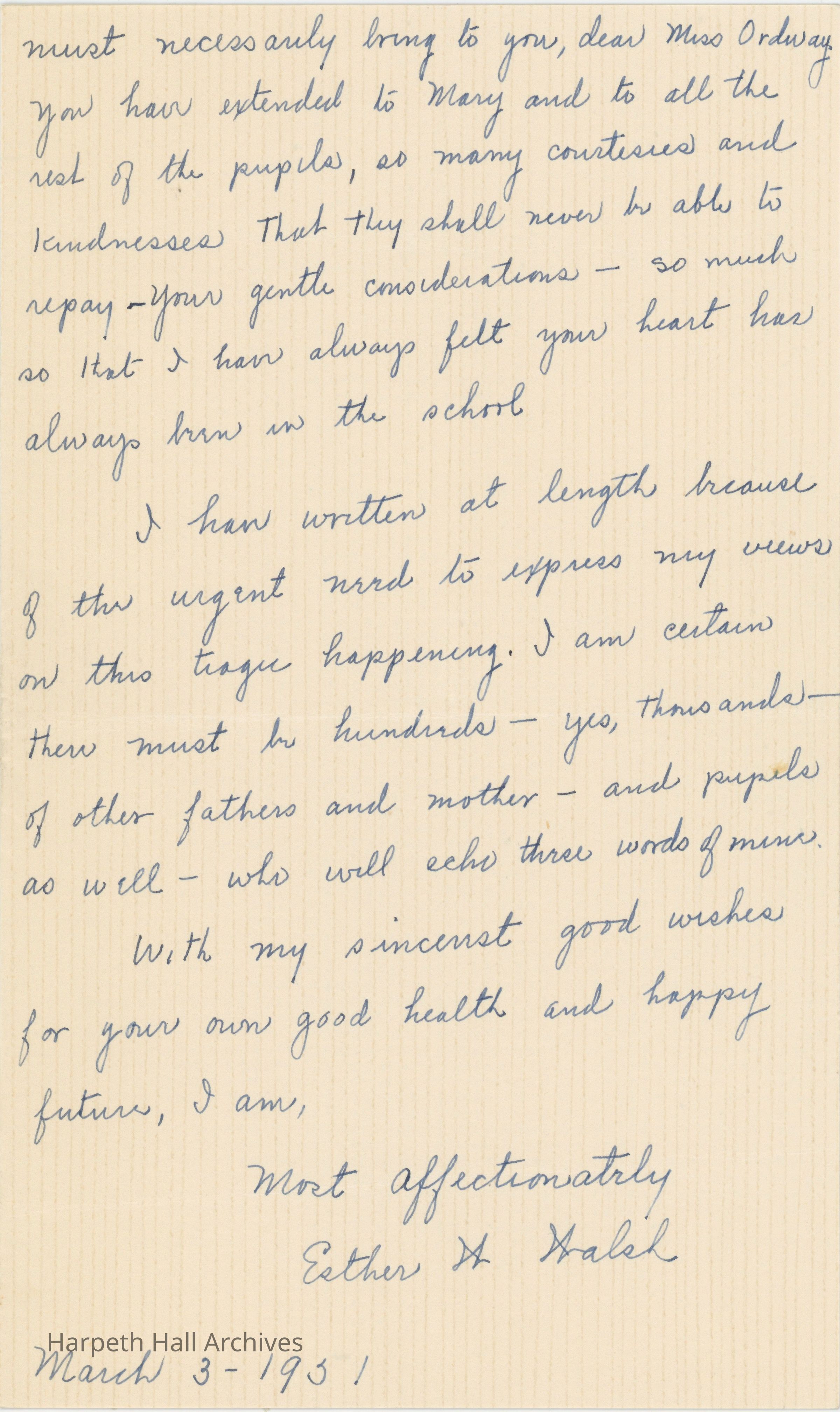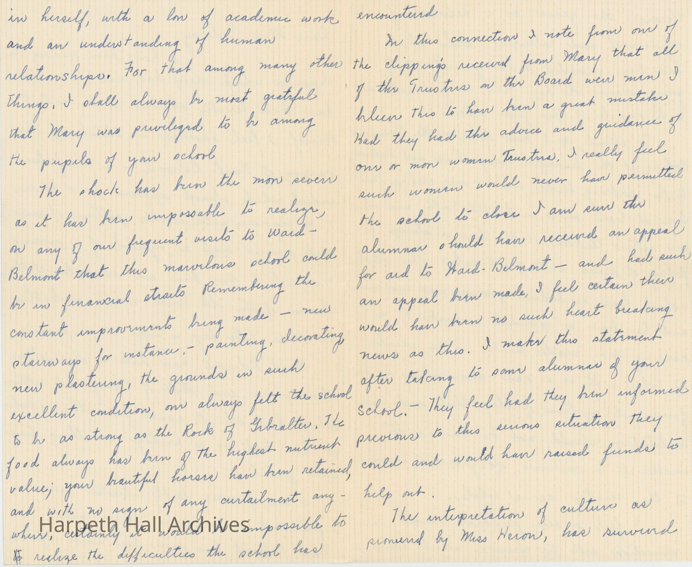 Letter from Alumna About Ward-Belmont's Transfer, 1951Entry/Object ID