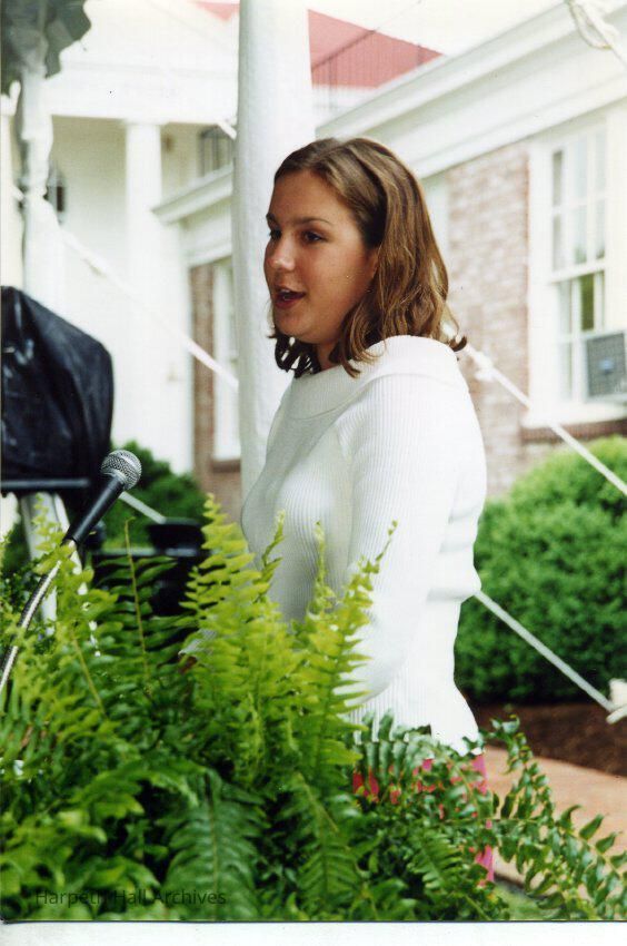 Rebecca "Becky" Brown (2002), Student Council President, speaking at the Grand Alumnae Luncheon on May 2002 behind Souby Hall at the Harpeth Hall School