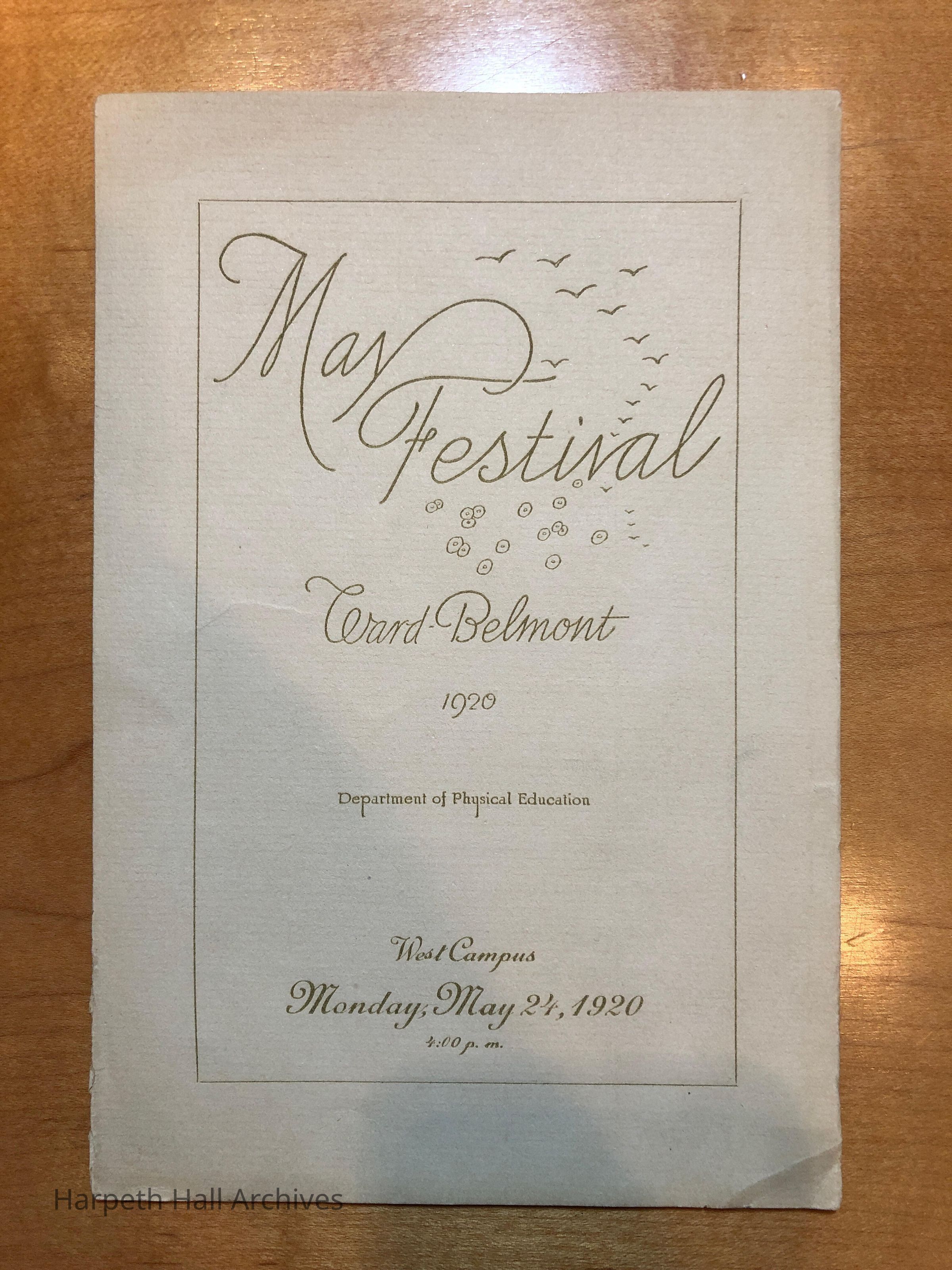 A bulletin for the Ward-Belmont May Festival held on May 24th, 1920. Details schedule for the event including the names of girls performing.