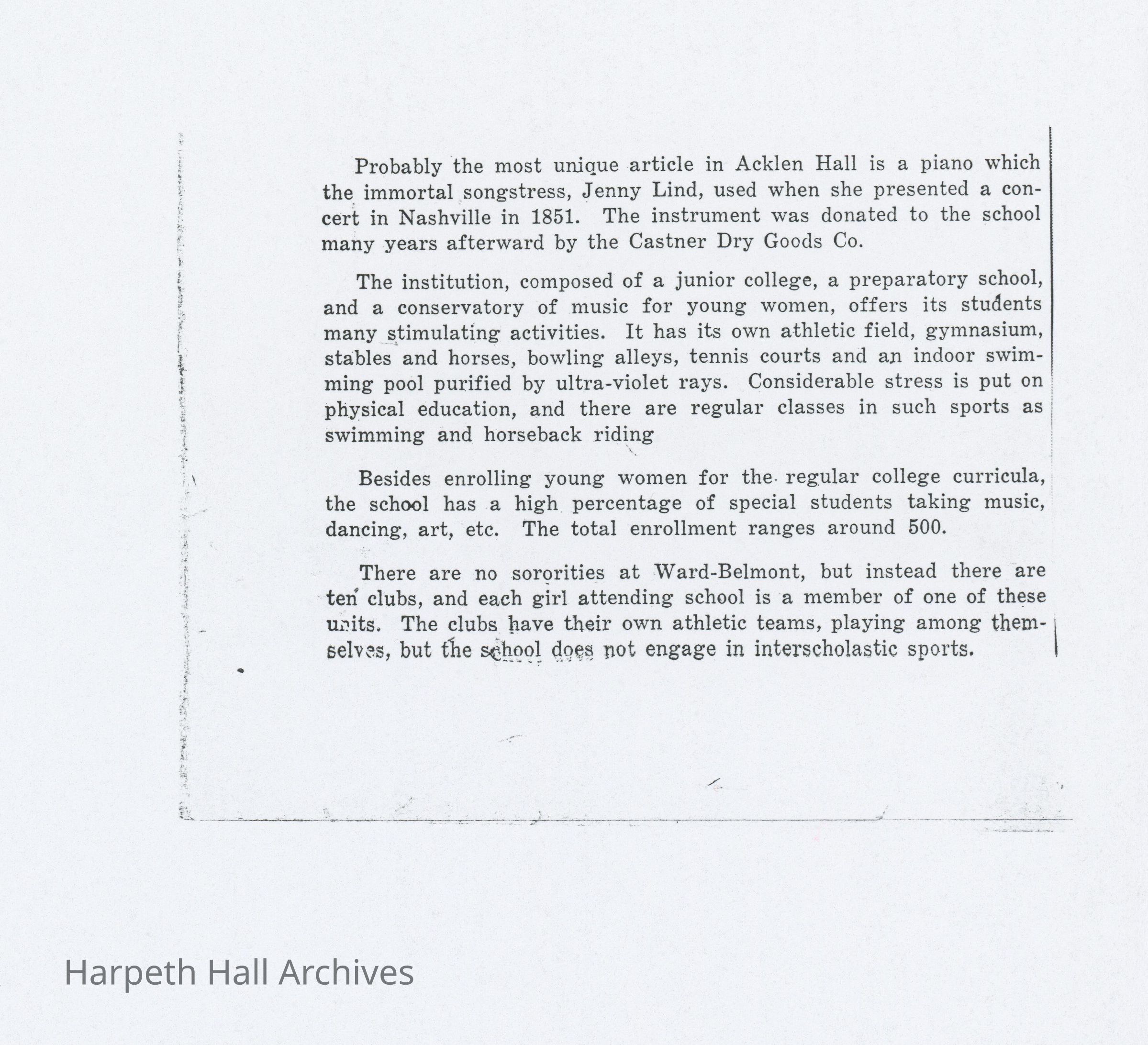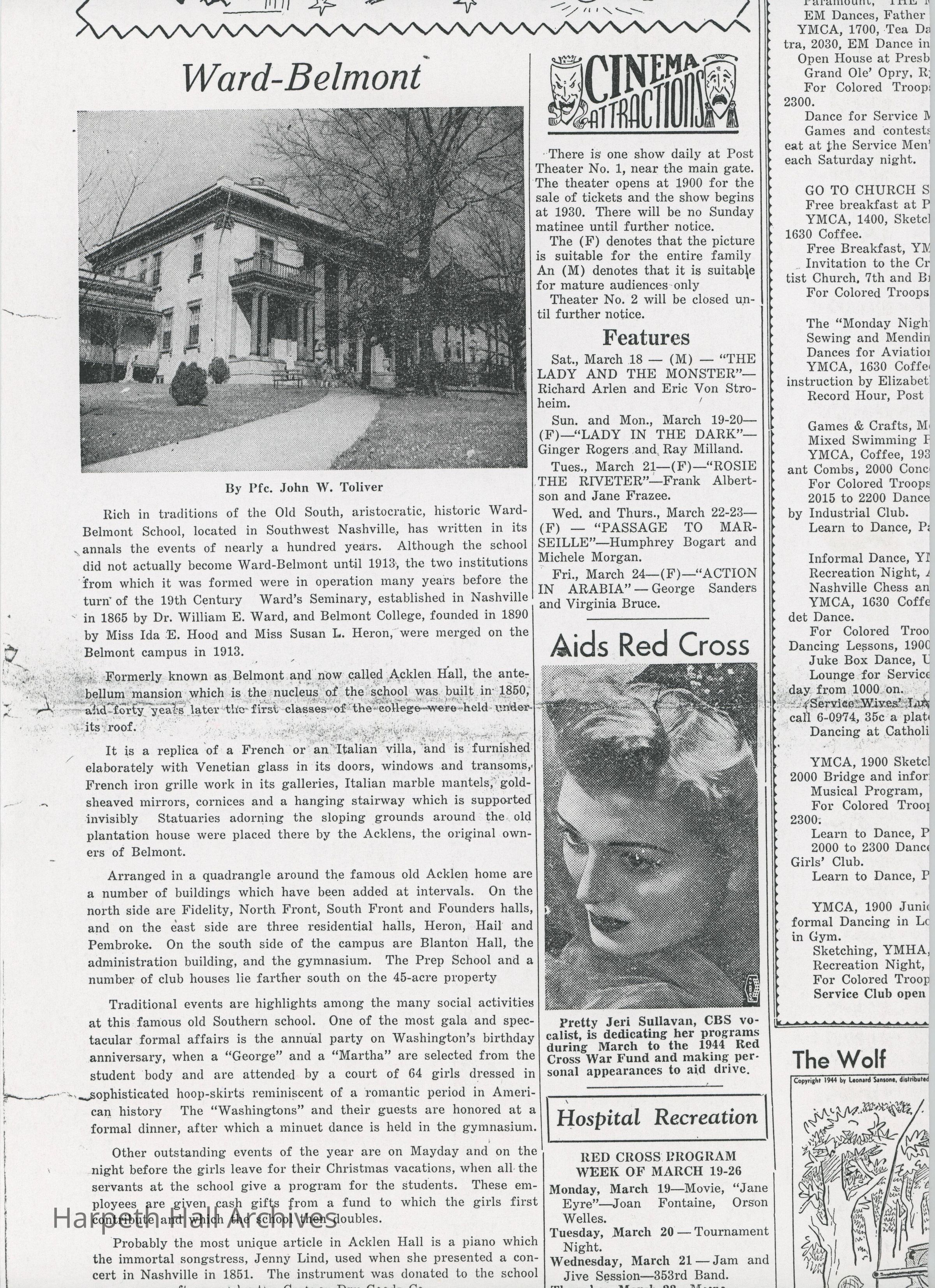 An article written about Ward-Belmont published in Center Sentry's Around and About journal on March 18th, 1944.Collection