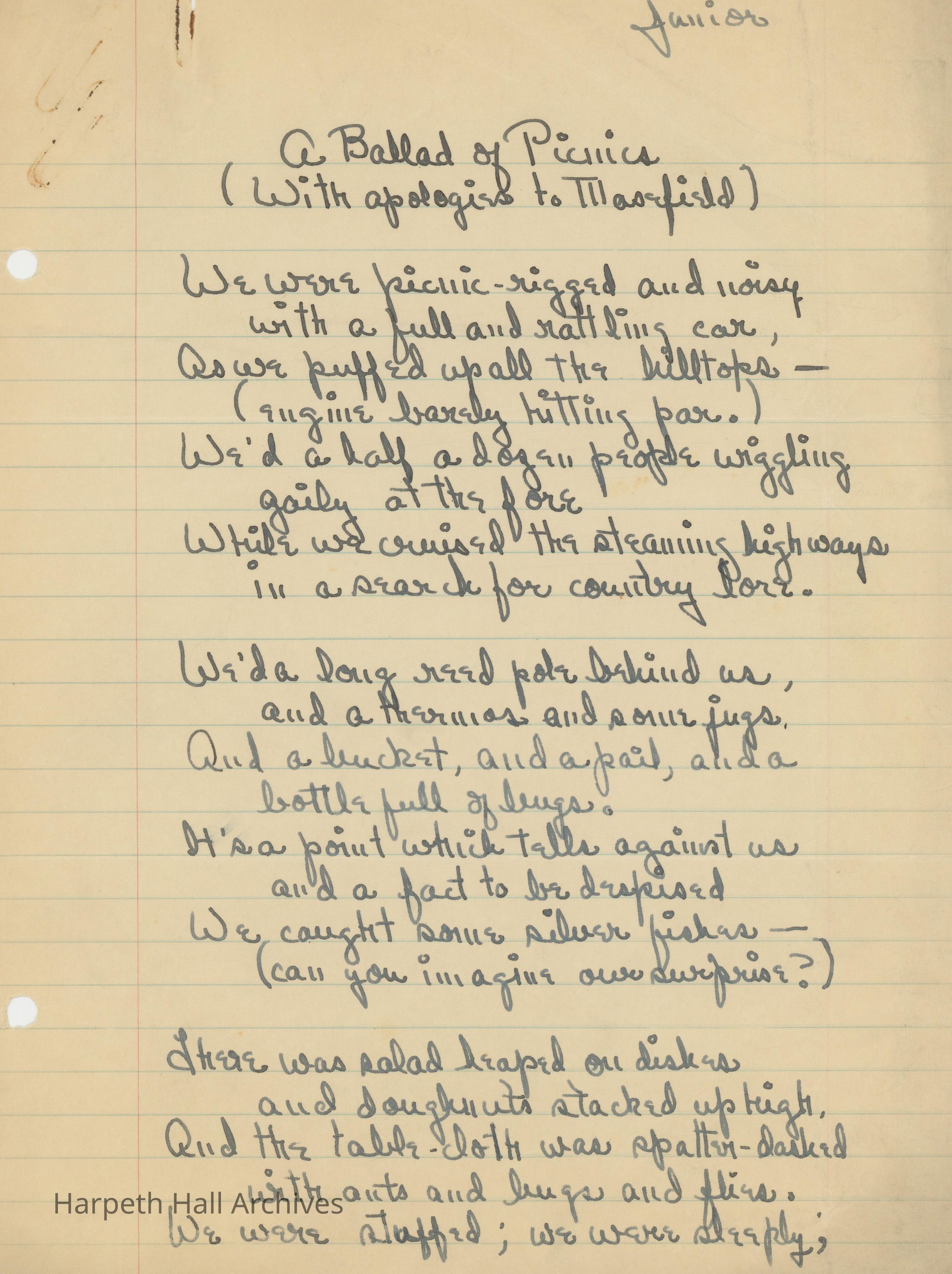 A poem entitled, "A Ballad of Picnics (With apologies to Masefield)" written by a Ward-Belmont junior.Collection