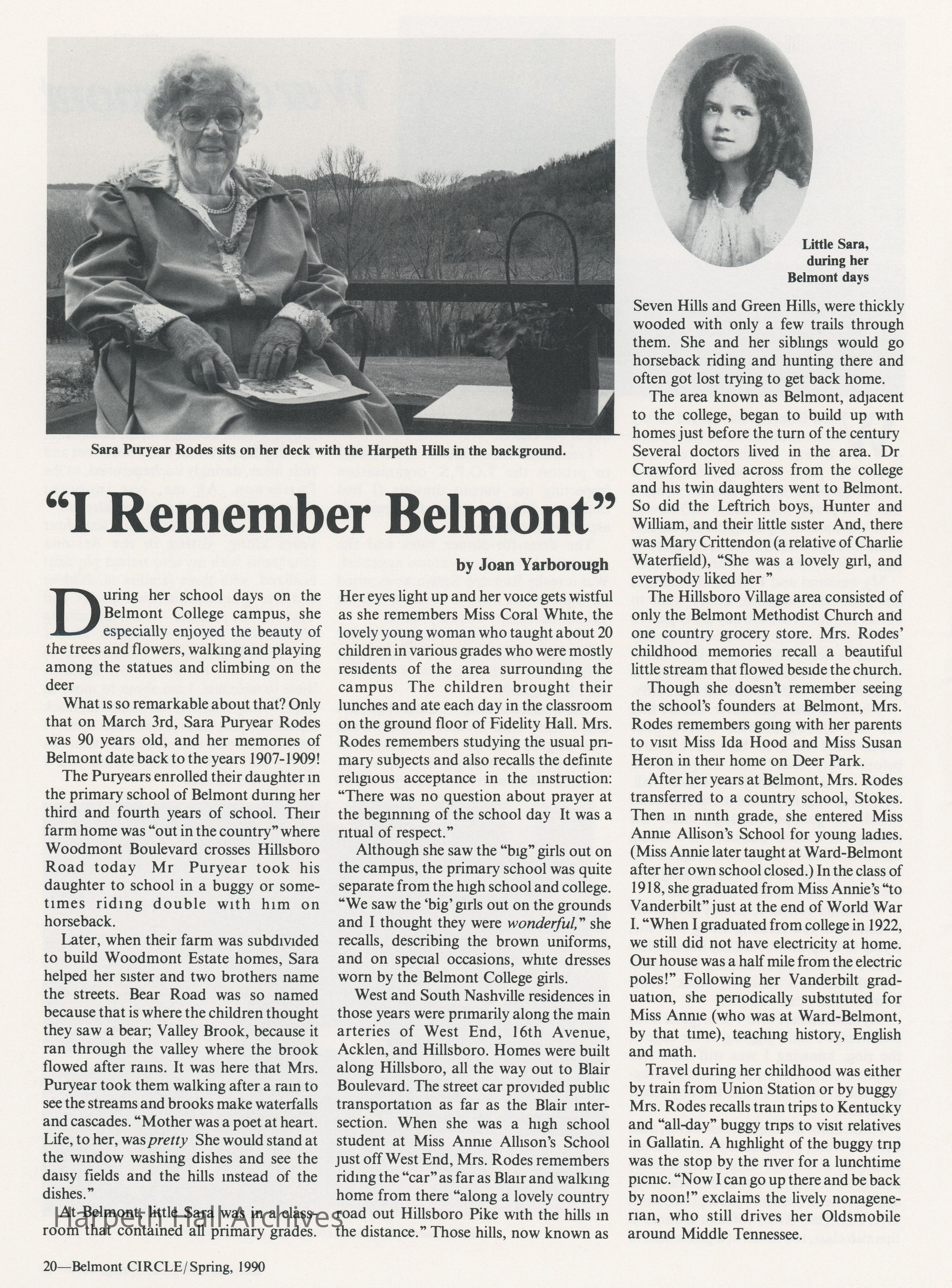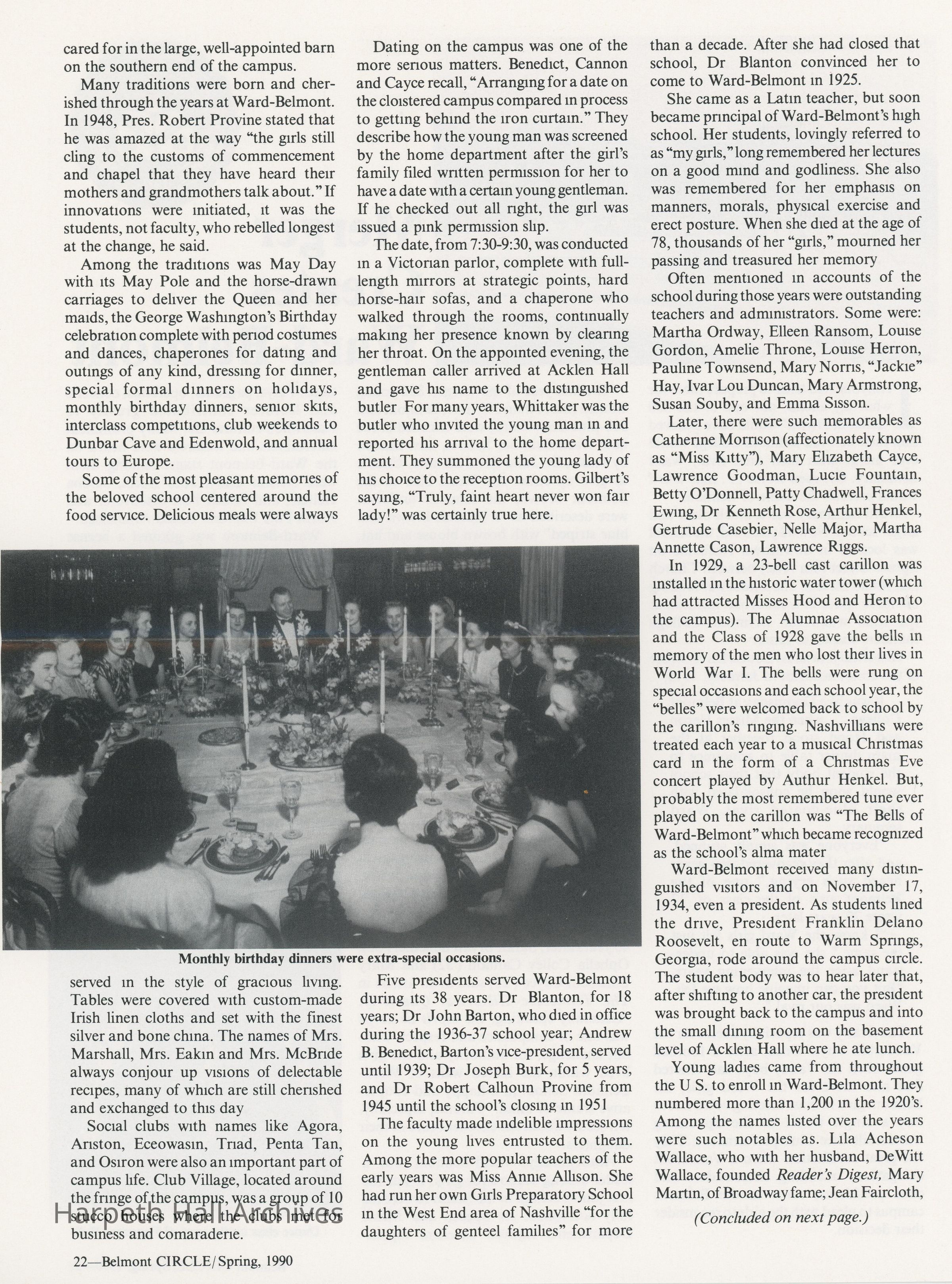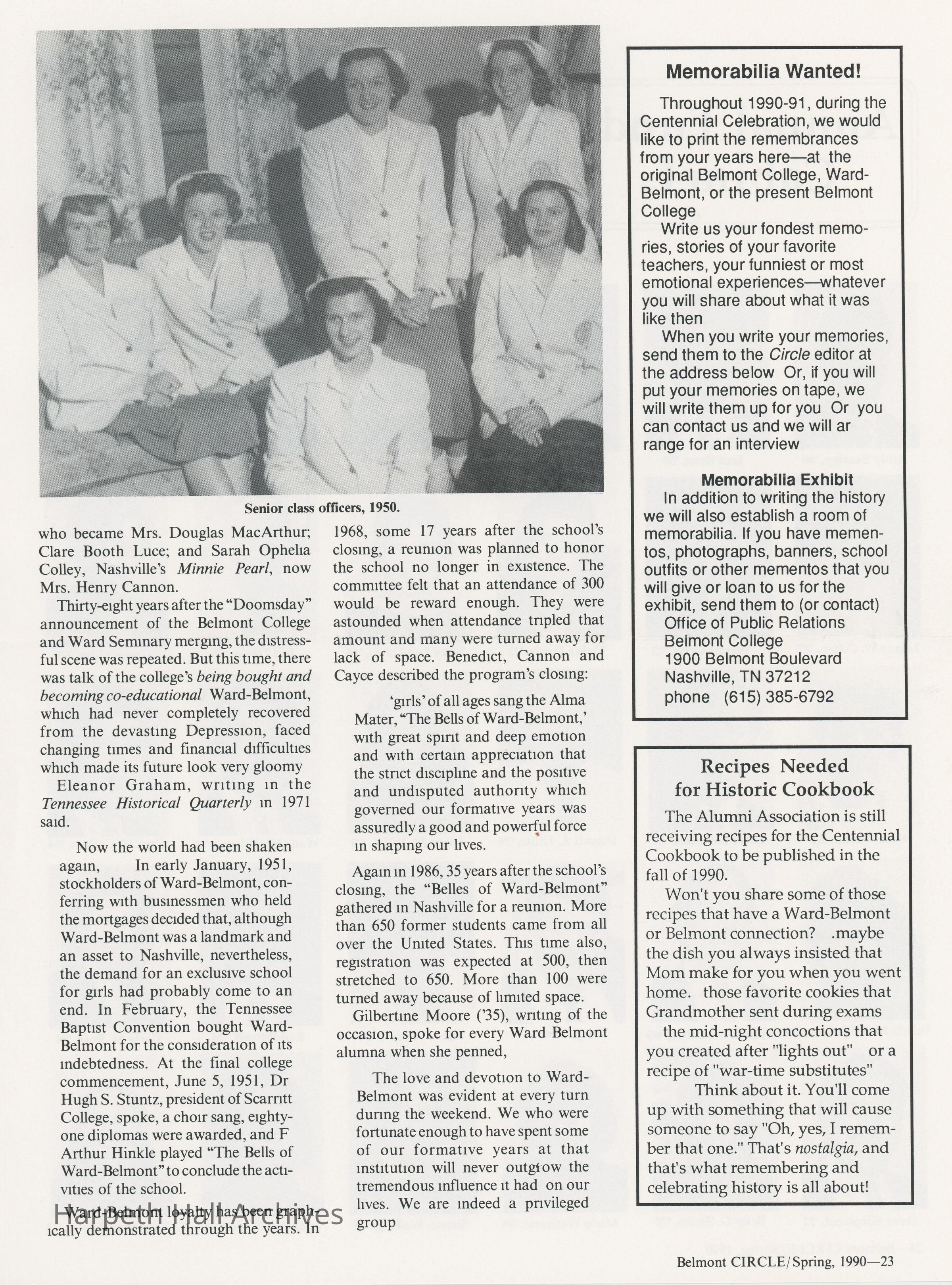 Ward-Belmont, Memories, 1990, Publication