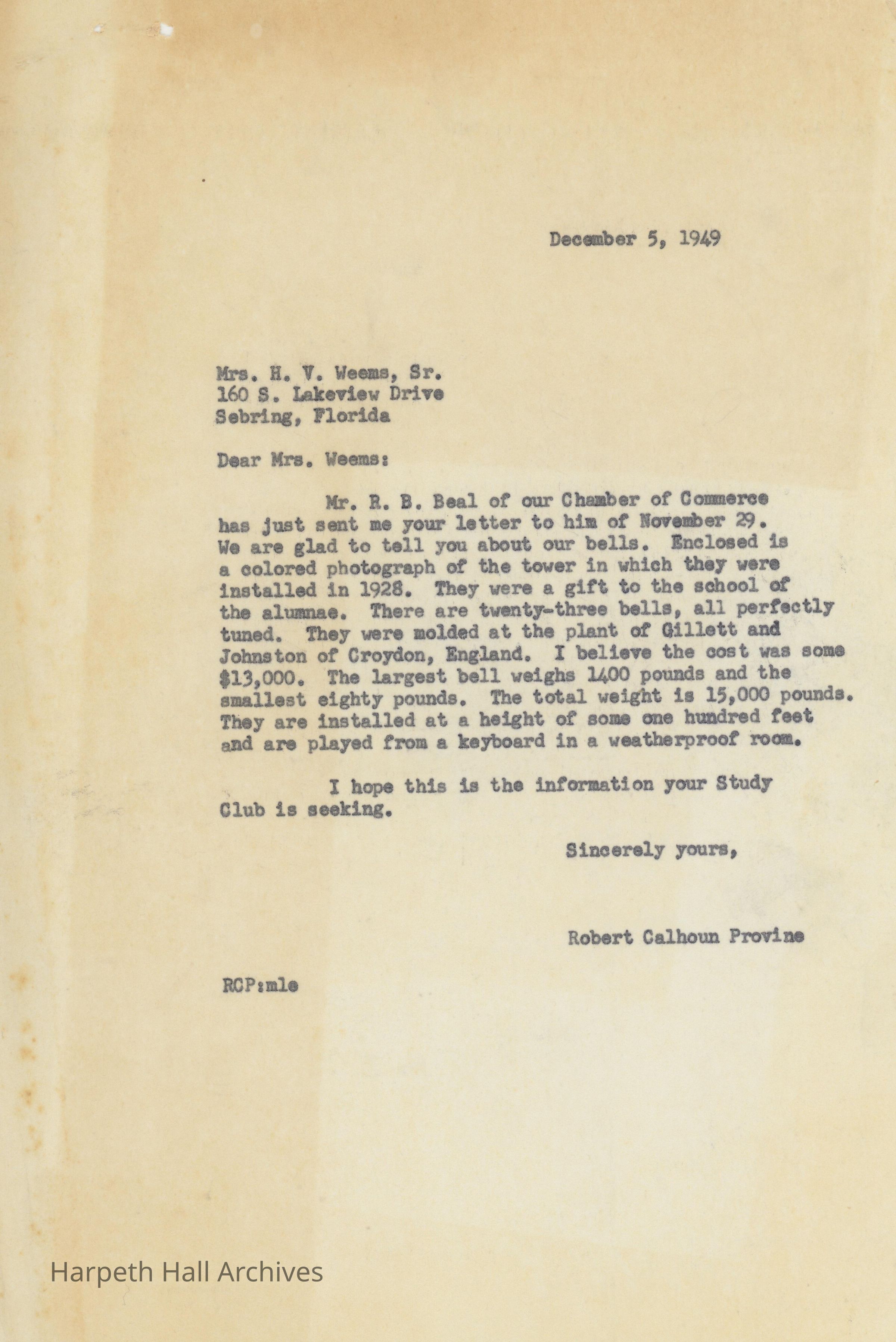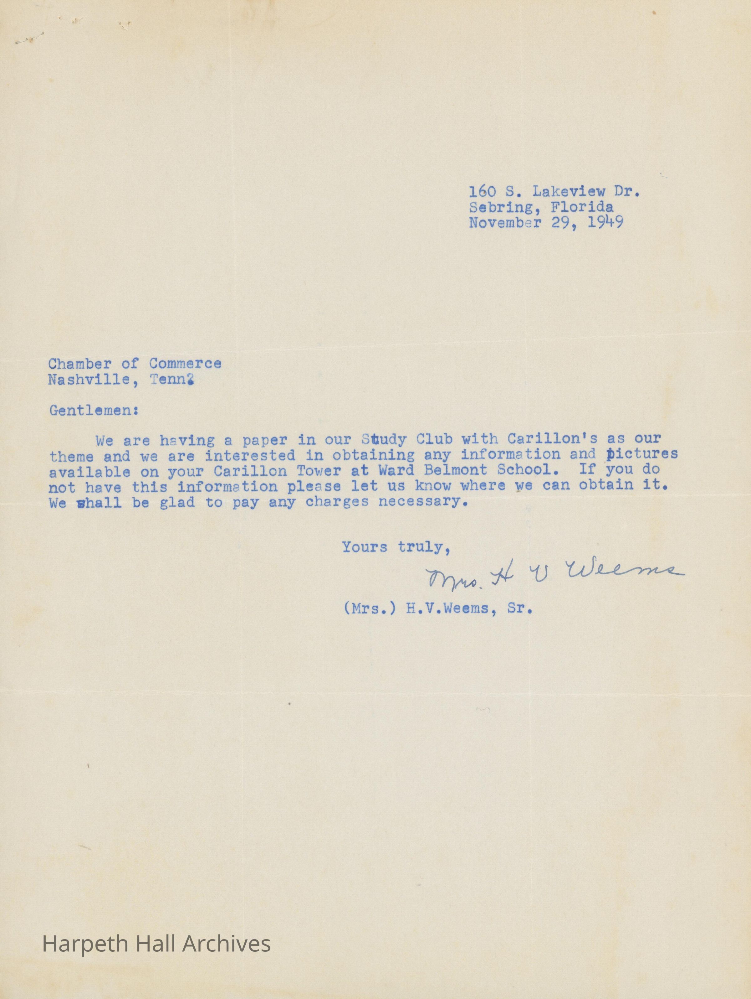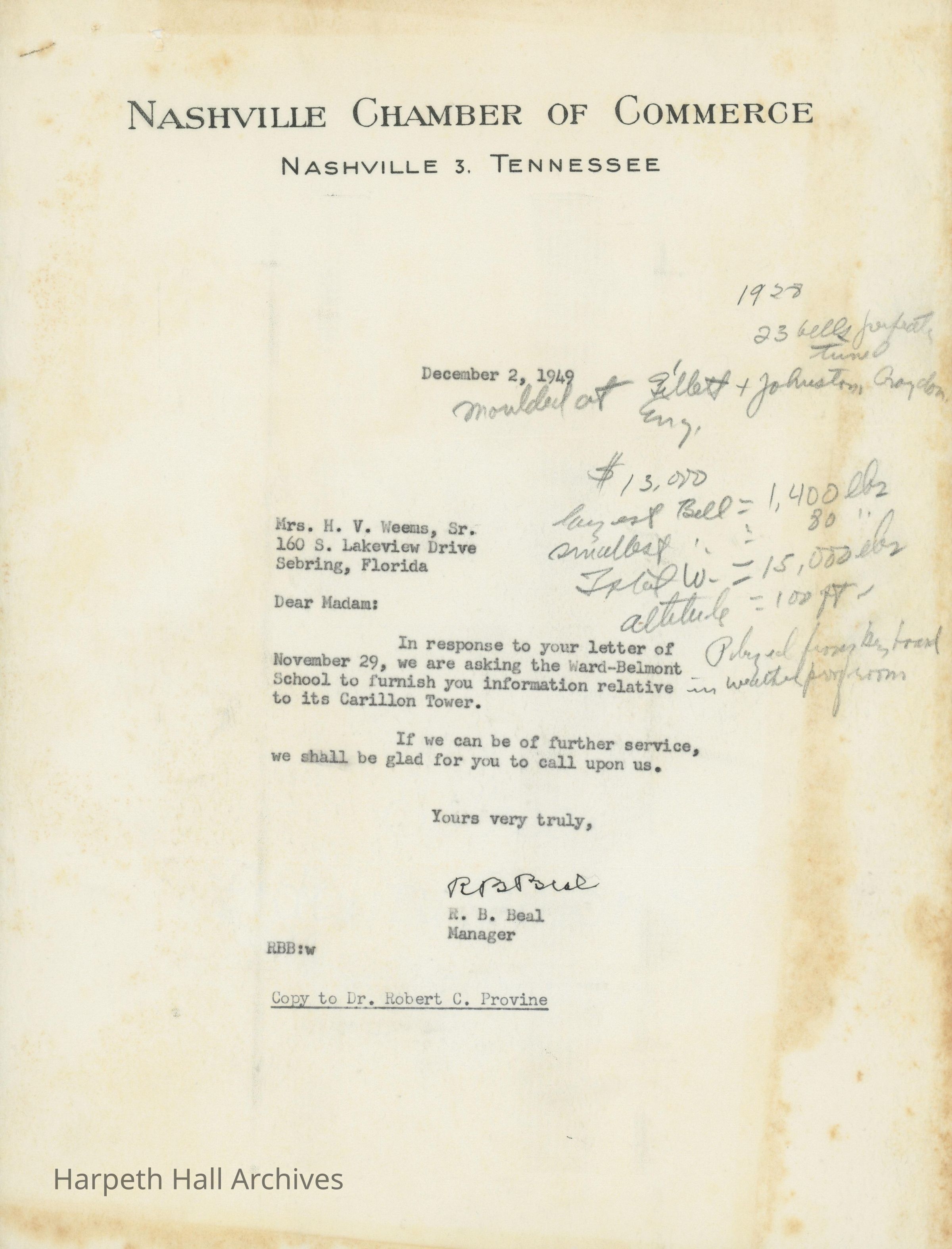 Letters between Nashville Chamber of Commerce and Ward-Belmont President Robert C. Provine. The letters were sent in 1949.Collection