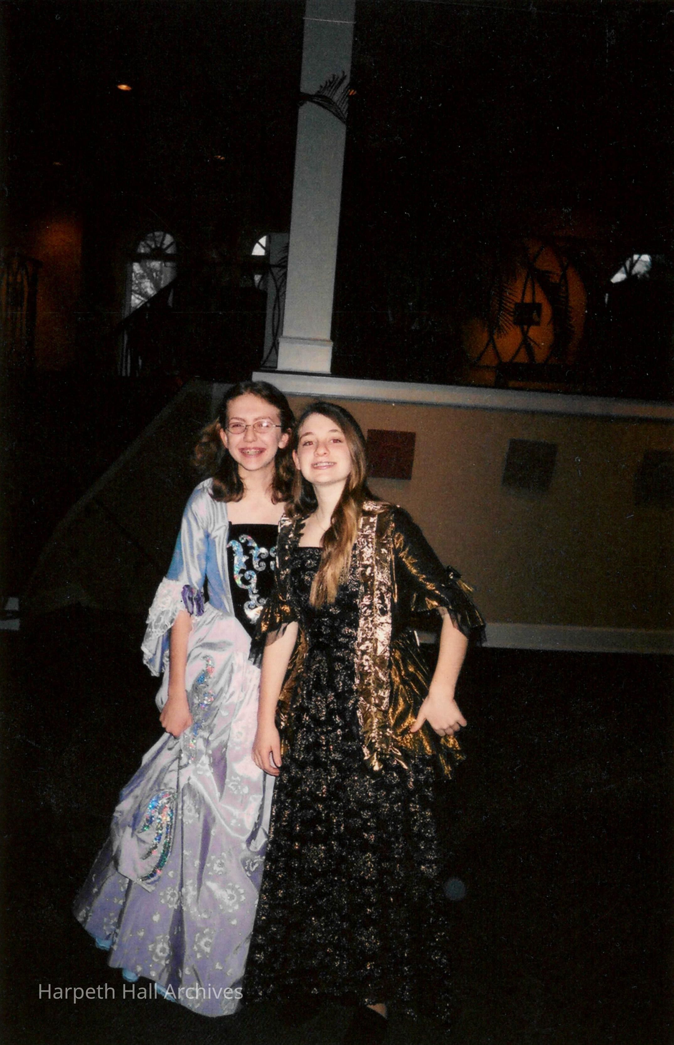 Two seventh grade students who performed in the George Washington Day Celebration. The photo is taken in the Marnie Sheridan Gallery in the McMurry Center.Context