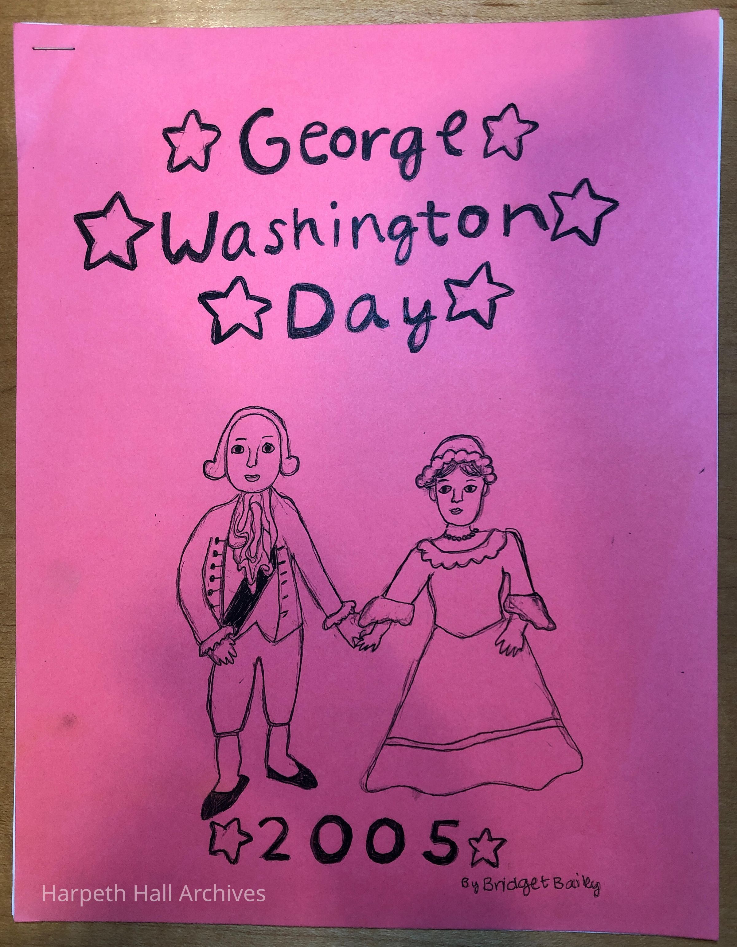 The 2005 program for the George Washington Day Celebration put on by the class of 2010 when they were in the seventh grade. The celebration was dedicated to soldiers who have served in Iraq or Afghanistan. George Washington was played by eighth grader Sabin Nettles (2009) and Martha Washington was played by eighth grader Andee Johnson (2009). Front cover design by Bridget Bailey (2010).Context