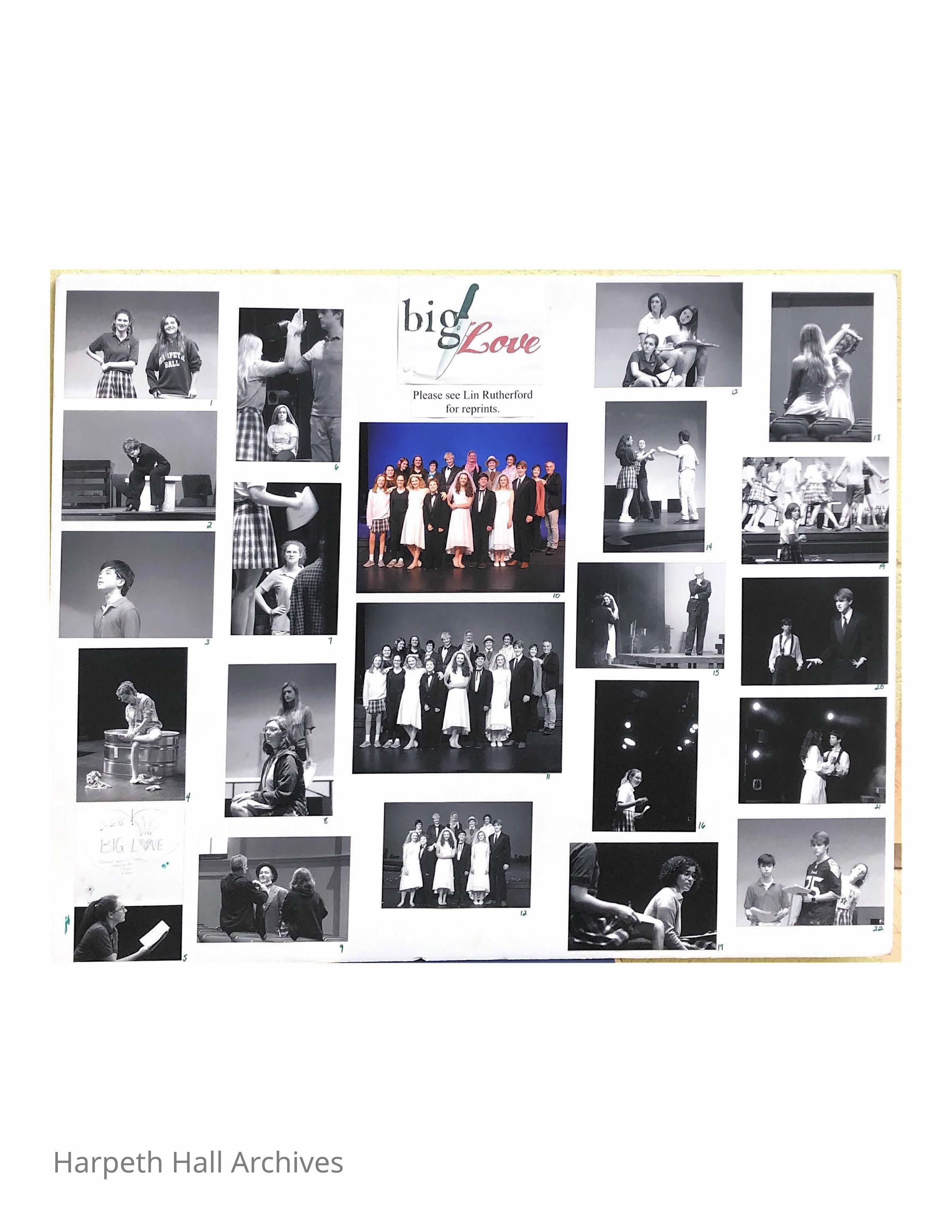The cast board for the showing of Big Love put on by the Harpeth Hall Playmakers during the fall of 2019.