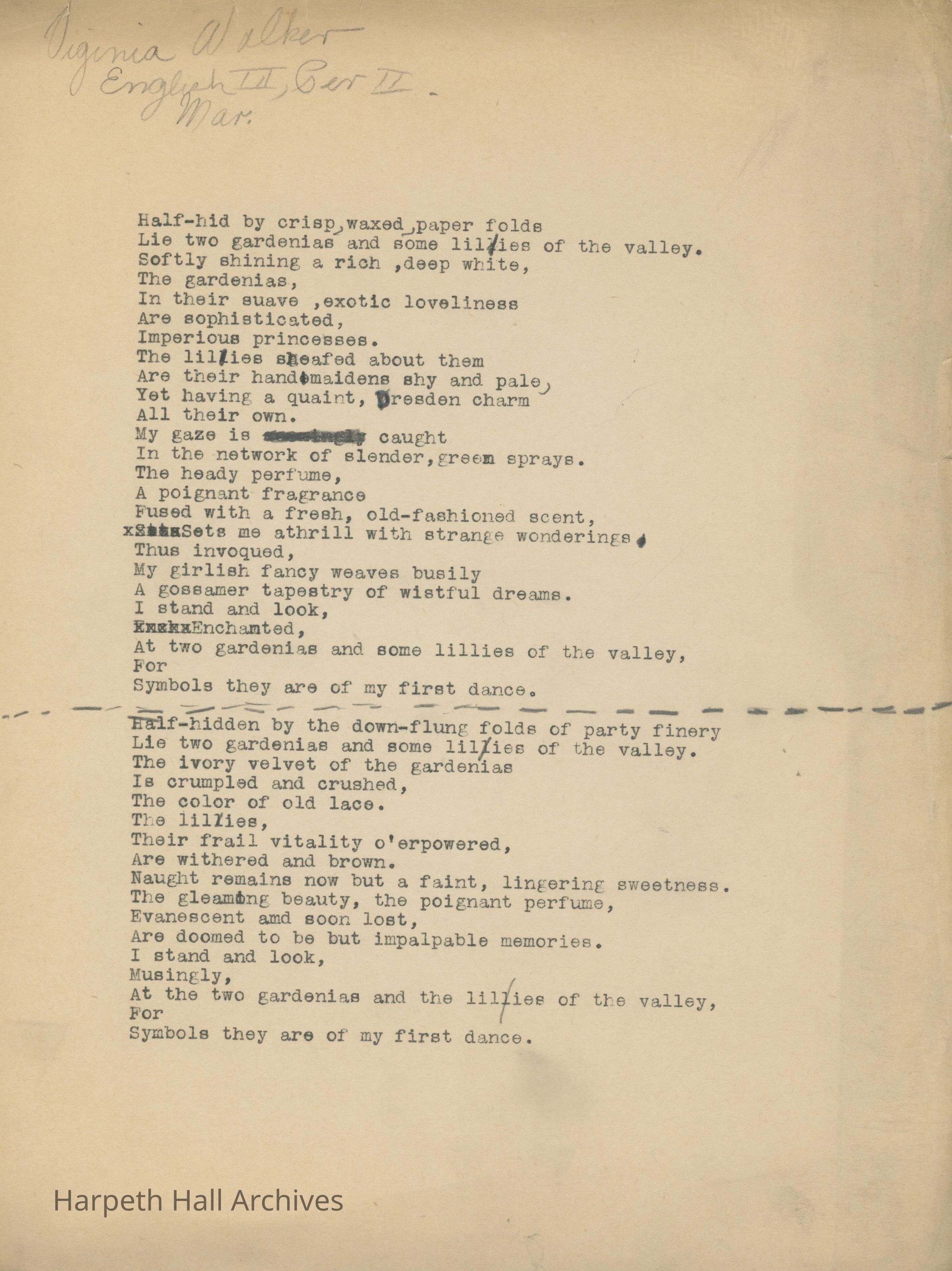 A poem written by Ward-Belmont student Virginia Walker for her English II class in March.