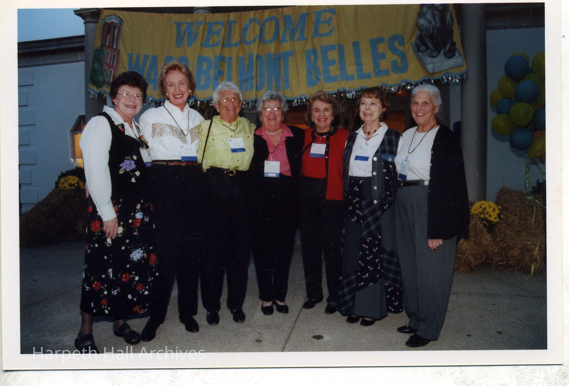 3rd from left is Patsy “Pat” Neblett Moran (1951) and 3rd from the right is Ellen White Dillon (1948) at the Ward-Belmont Reunion in October of 2000 in a gymnasium on Harpeth Hall's Campus