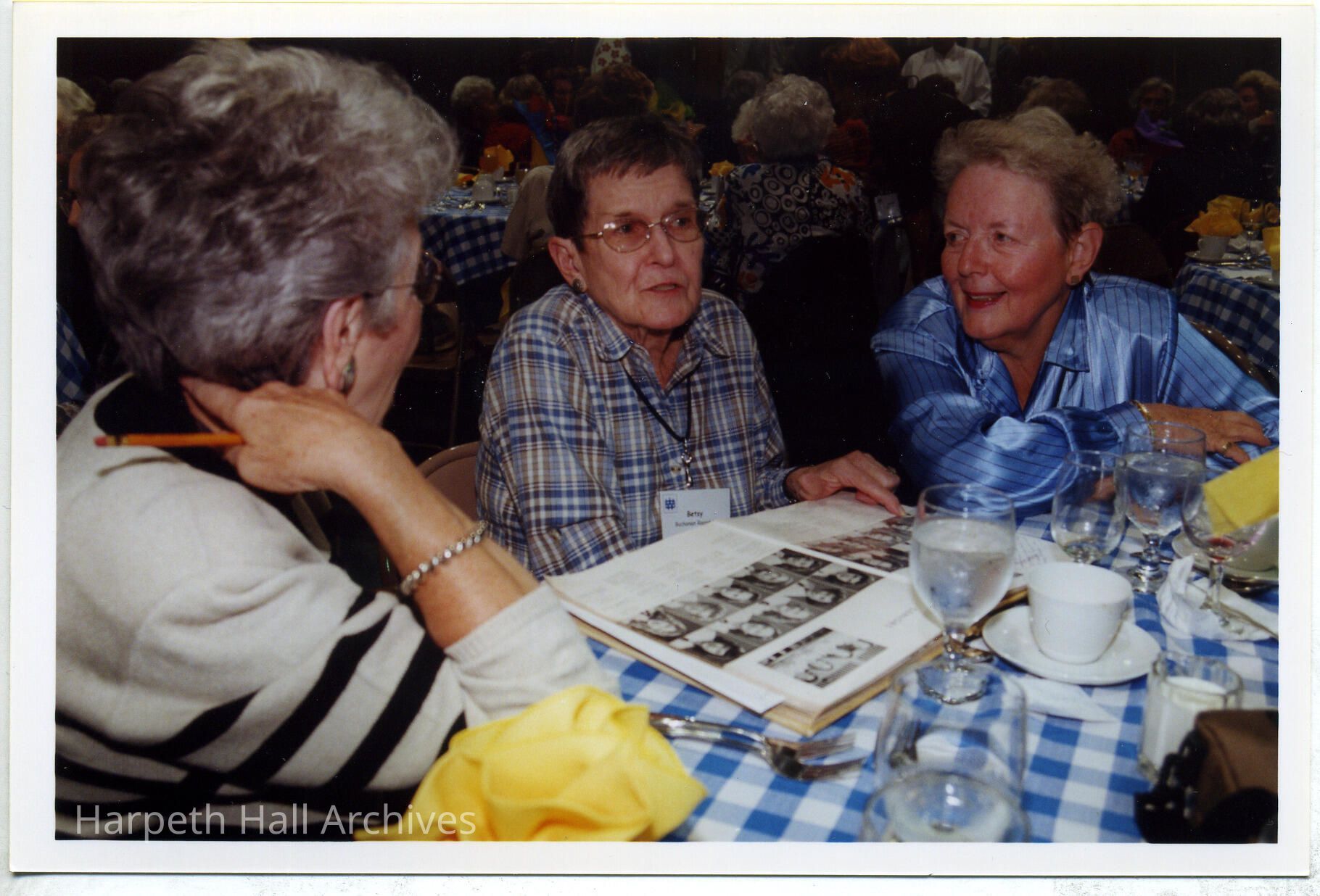 Betsy Buchanan and two other women at the Ward-Belmont Reunion in October of 2000 in a gymnasium on Harpeth Hall's Campus