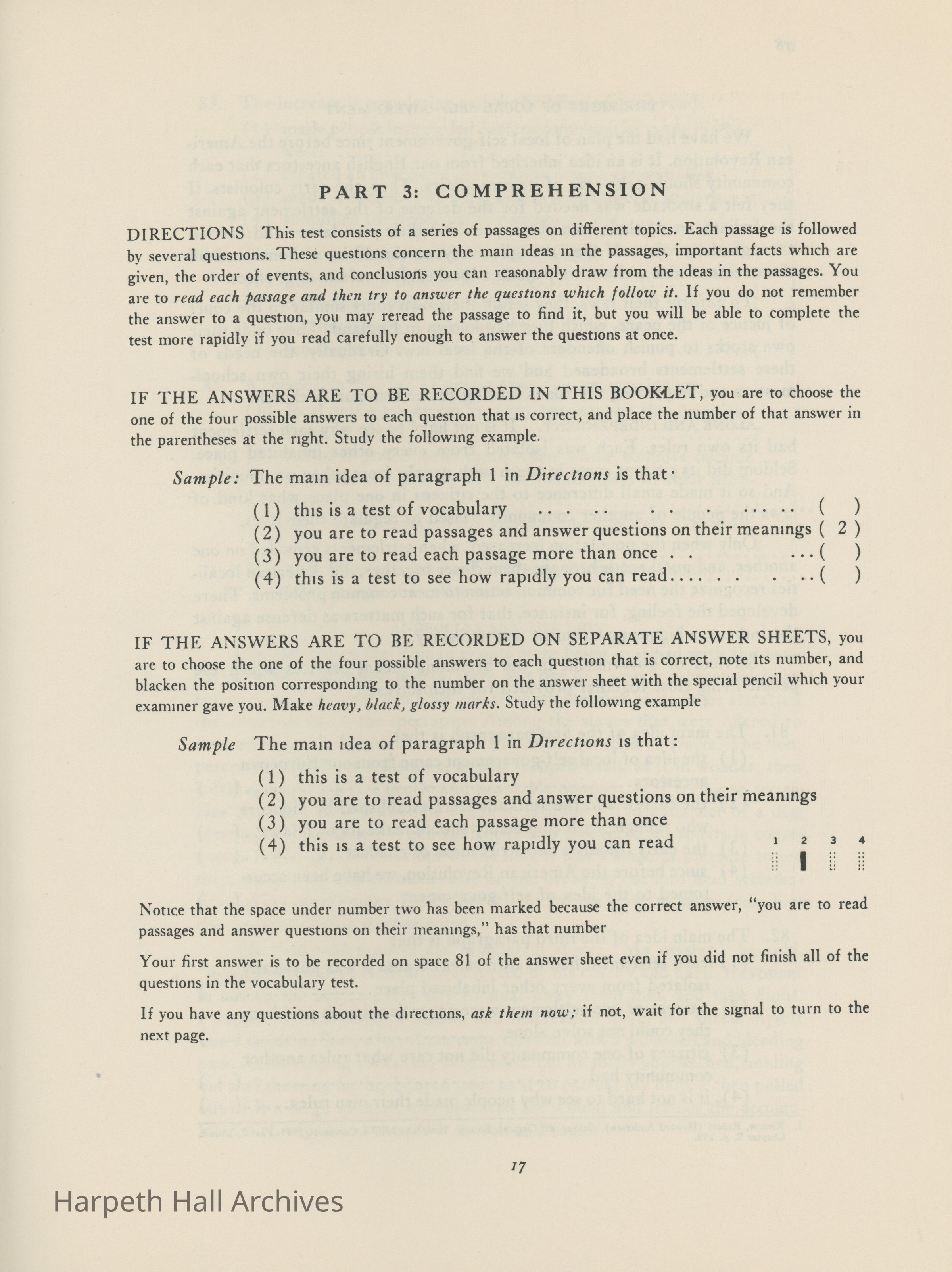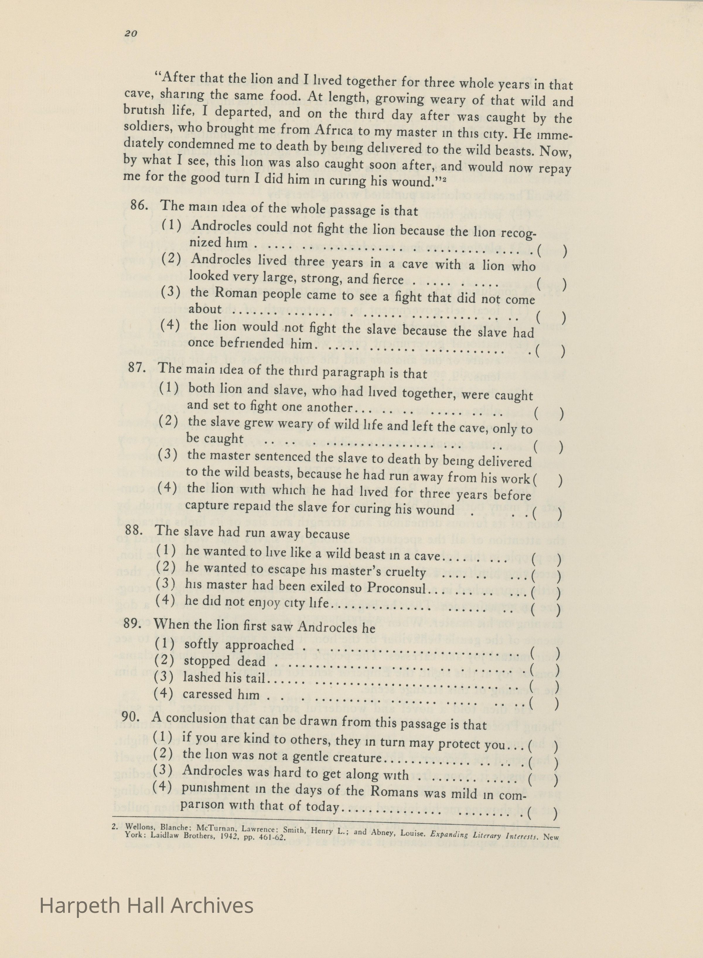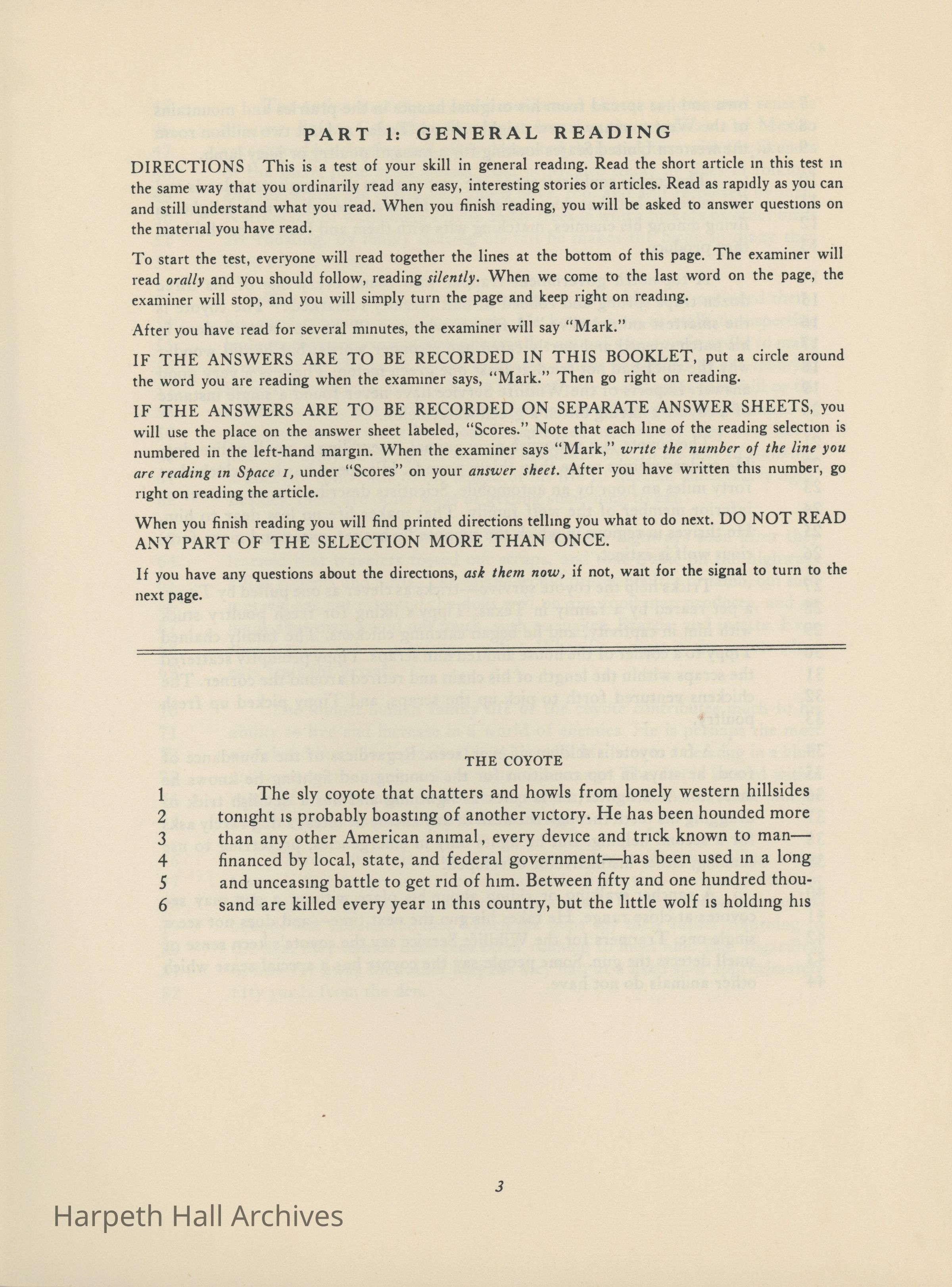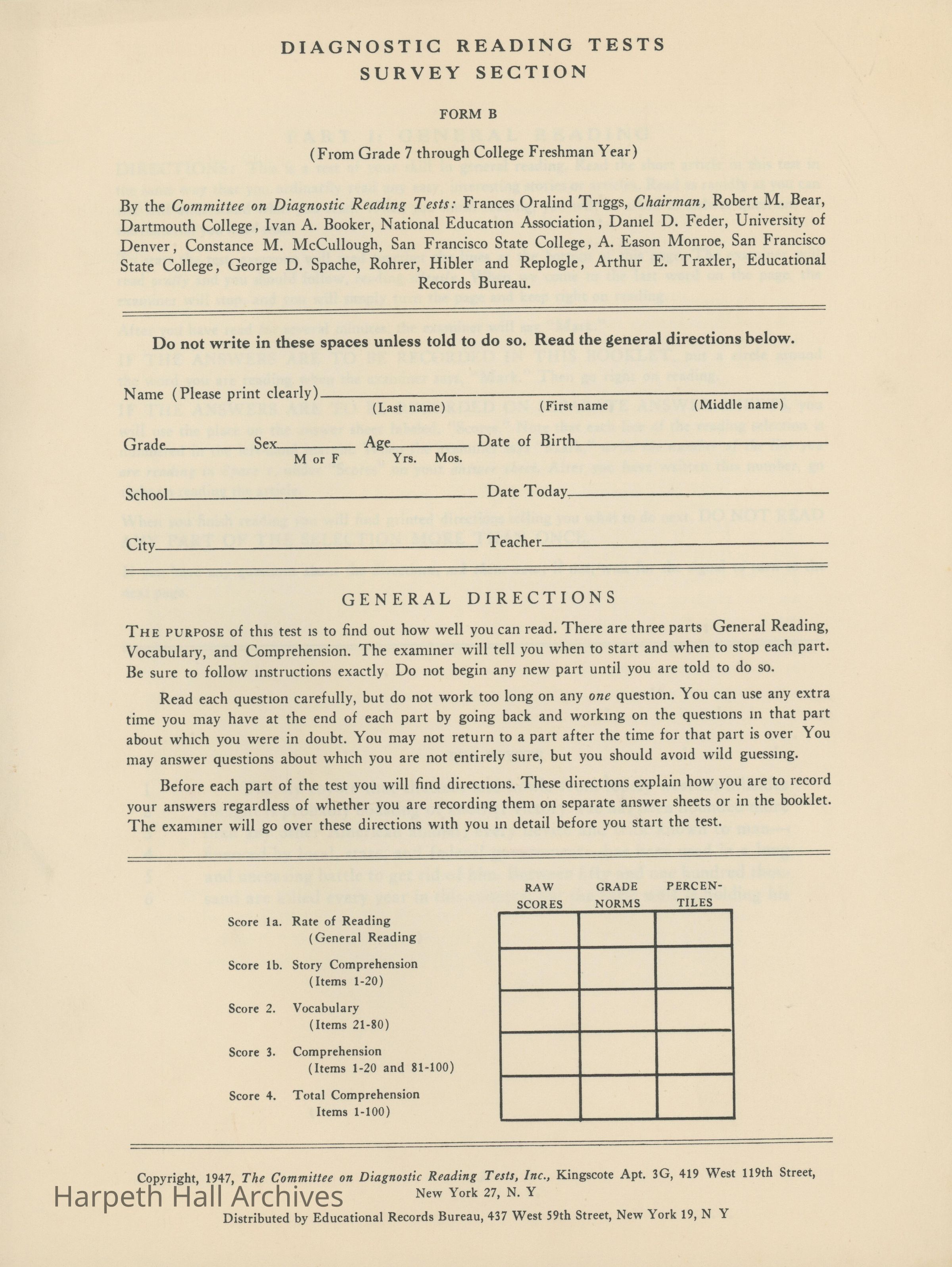 The diagnostic reading tests survey section packet used by Ward-Belmont students.