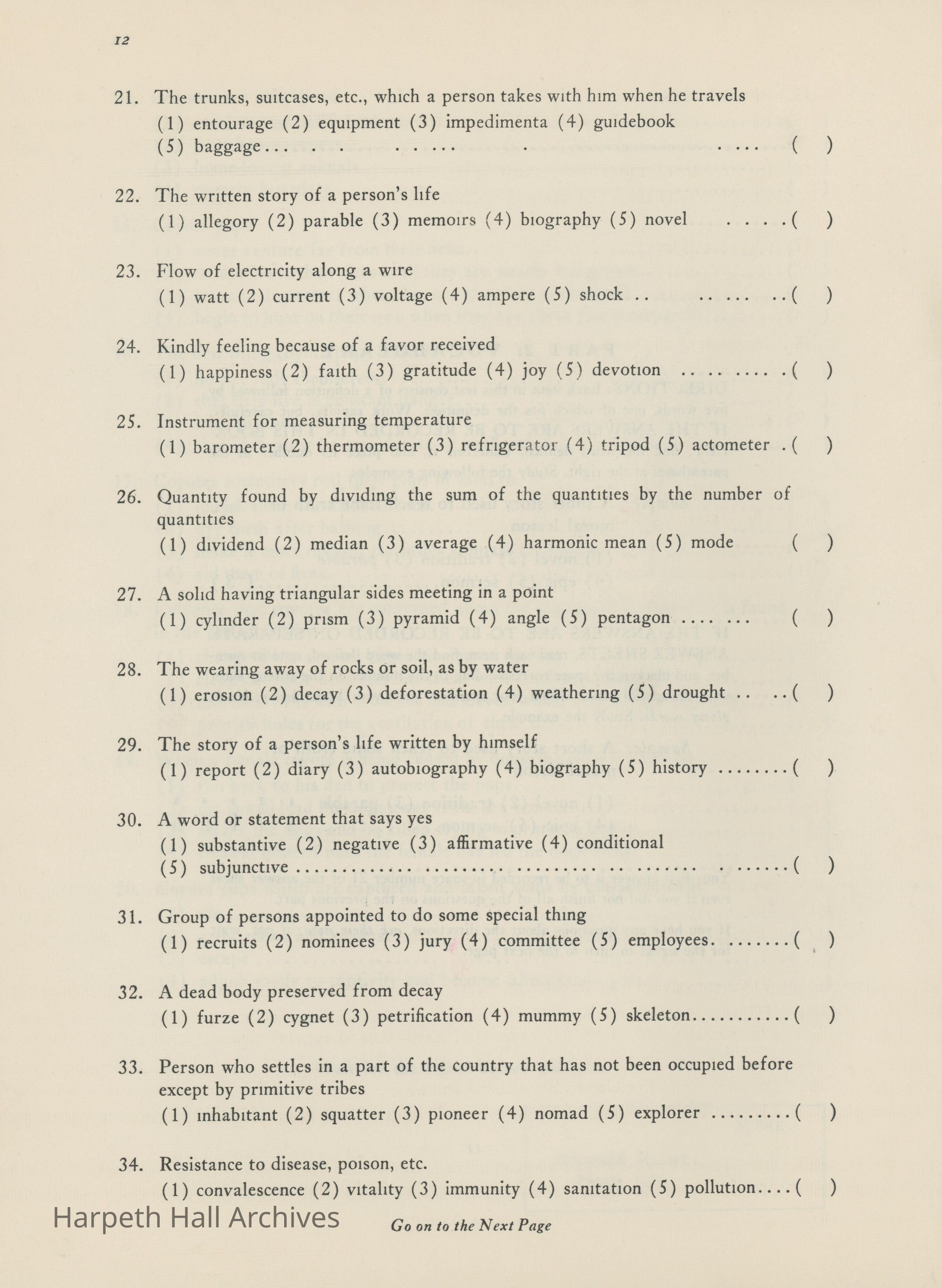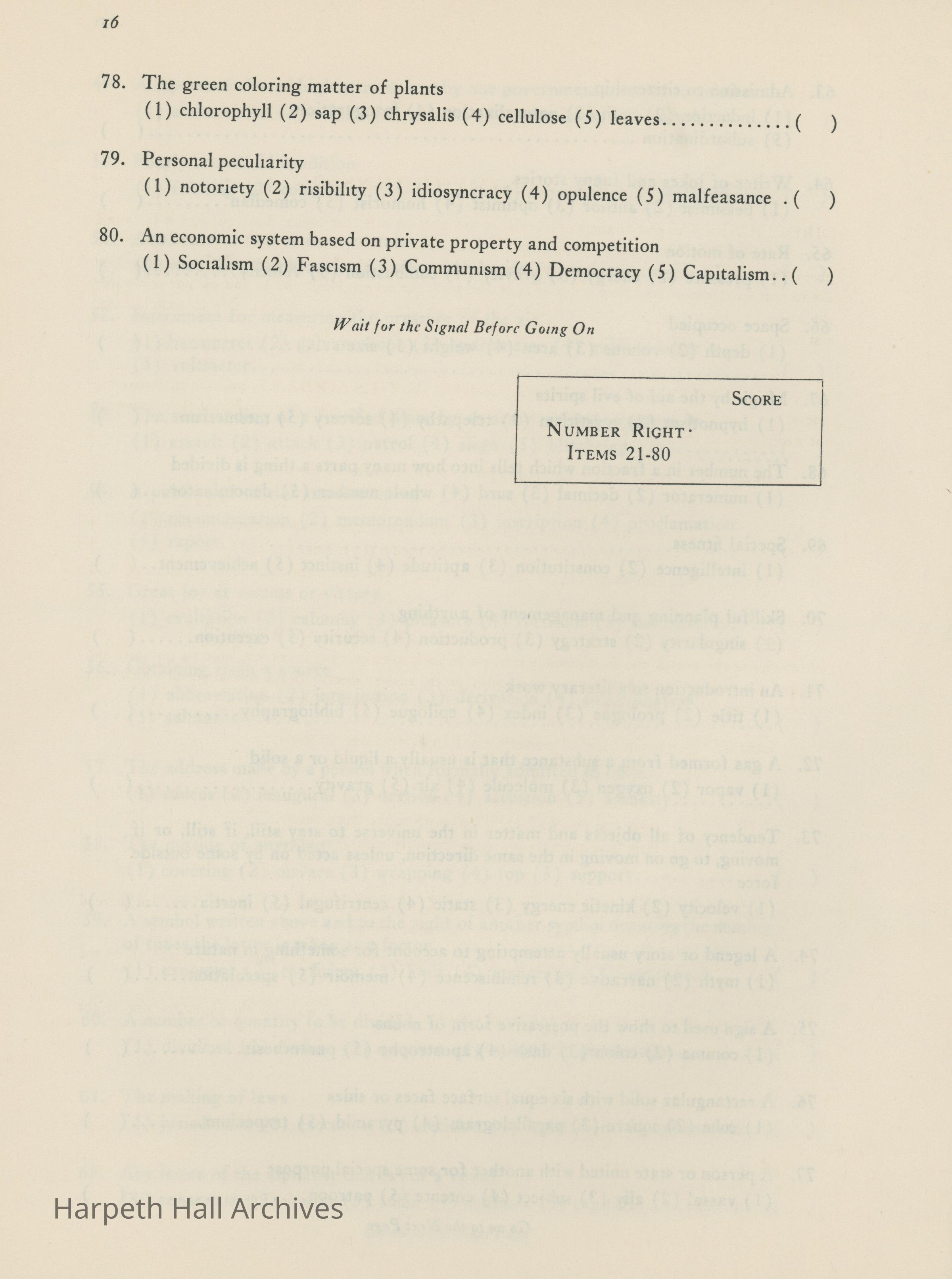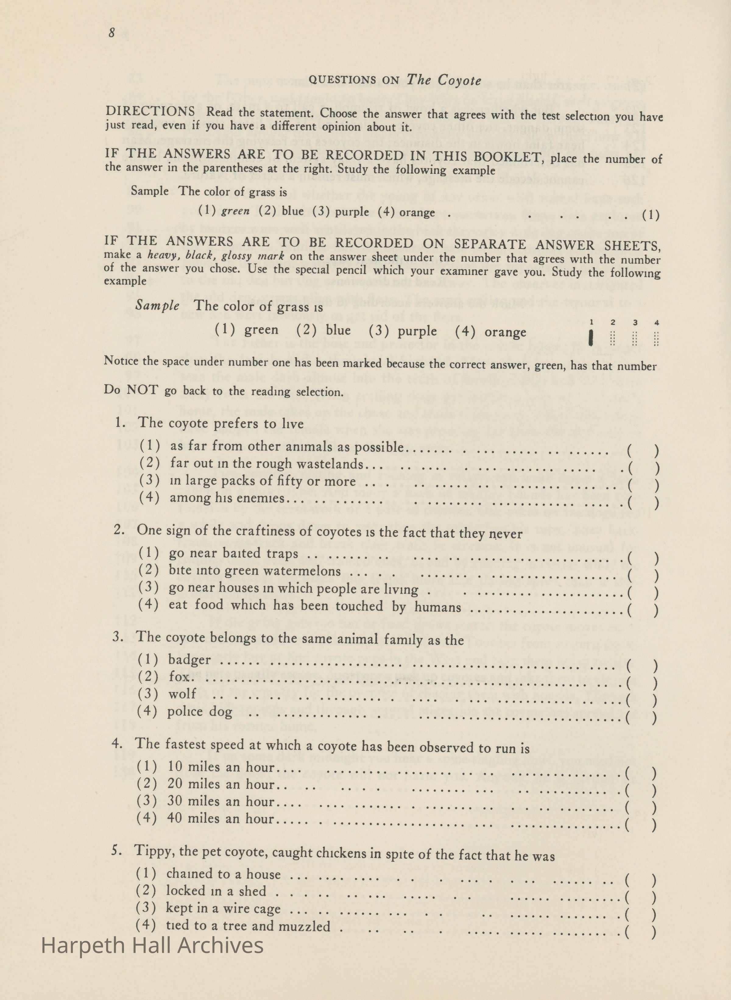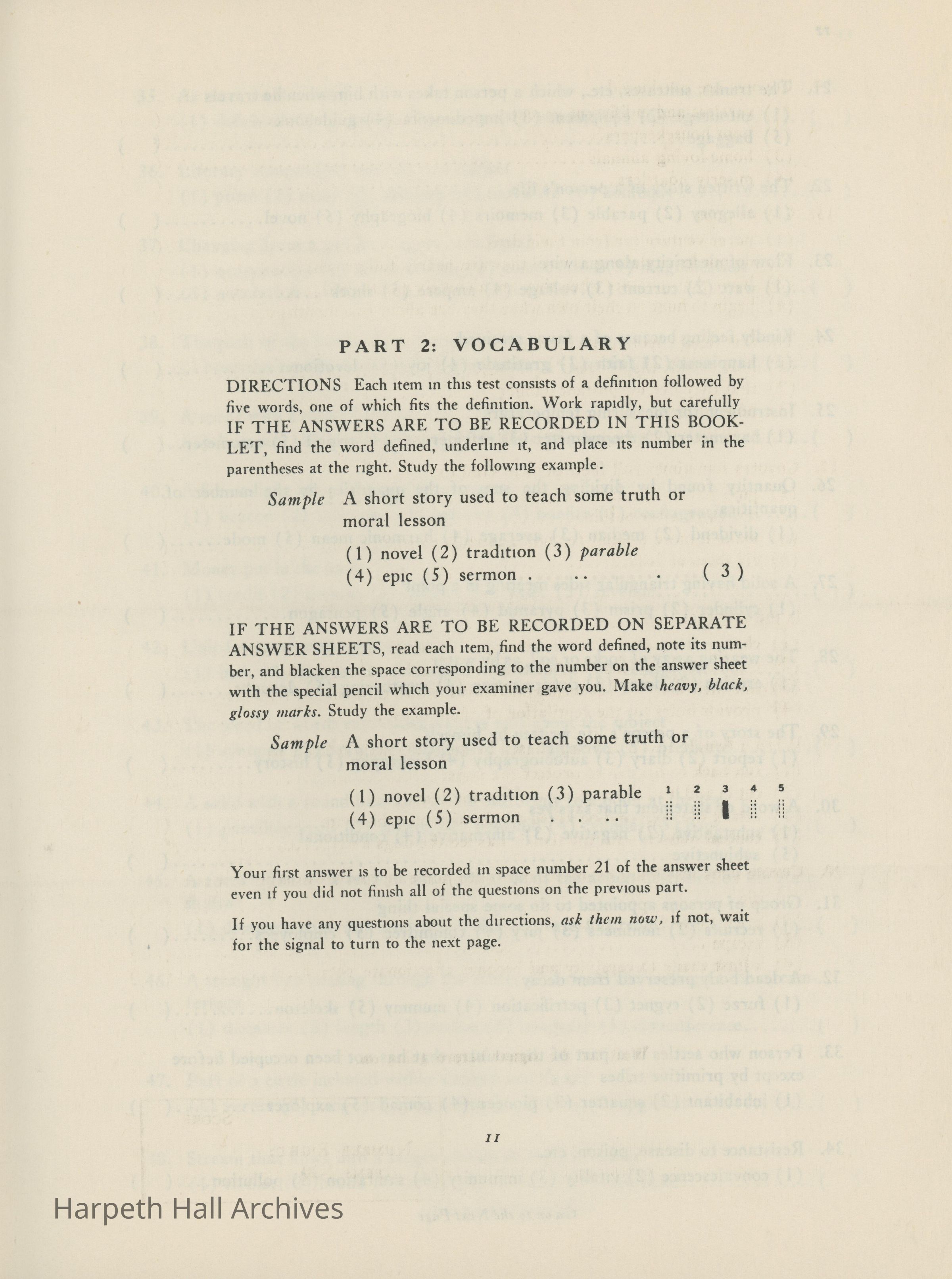 The diagnostic reading tests survey section packet used by Ward-Belmont students.