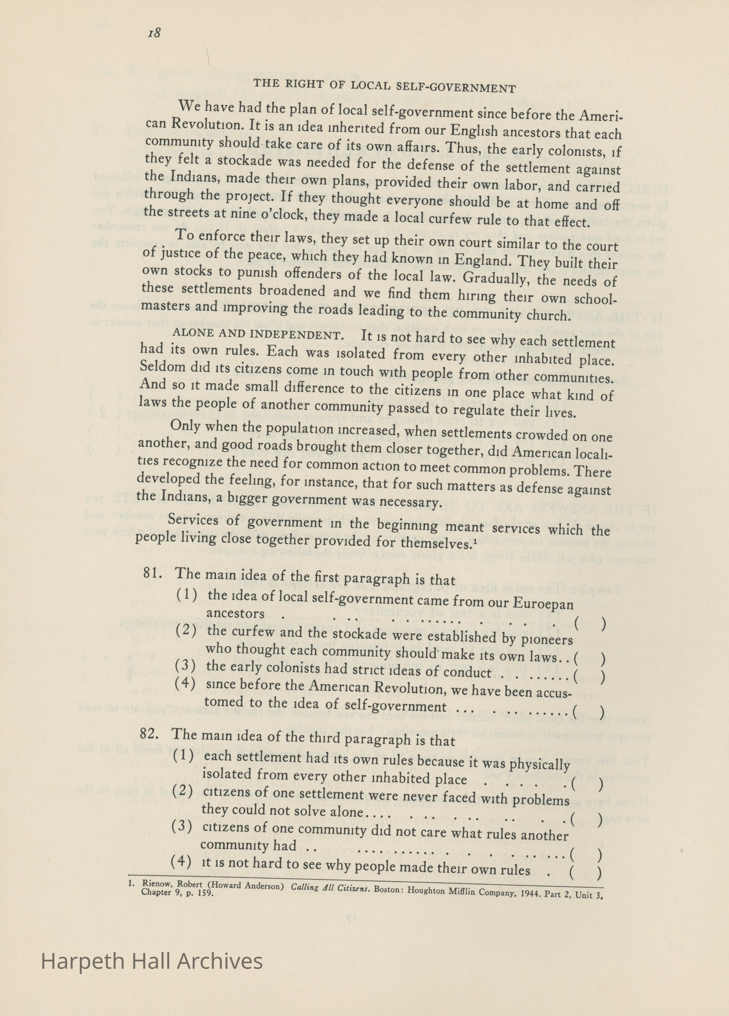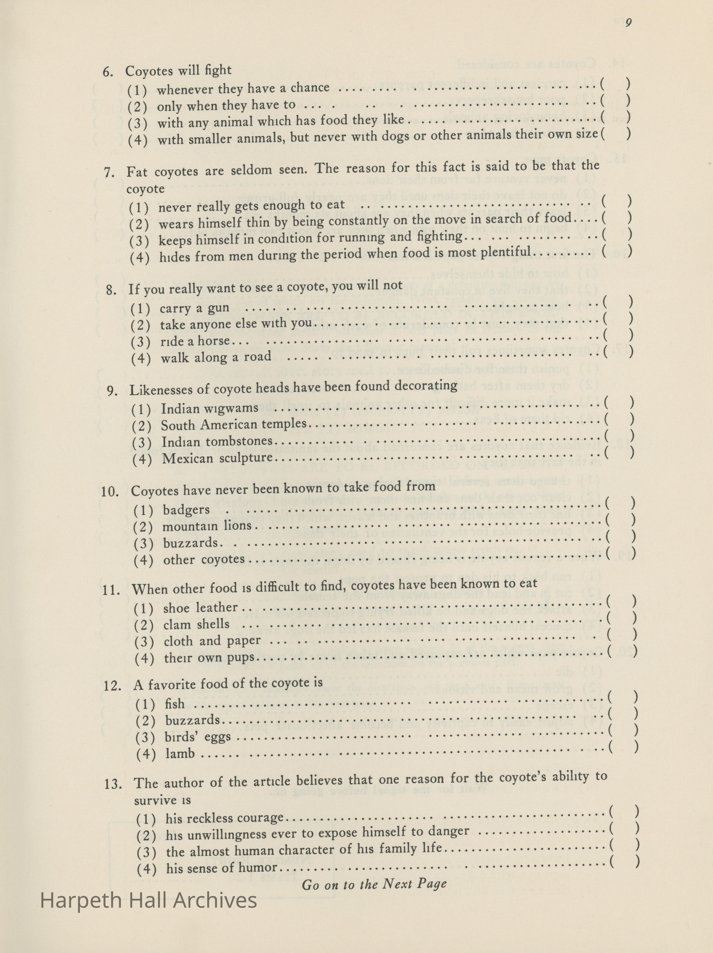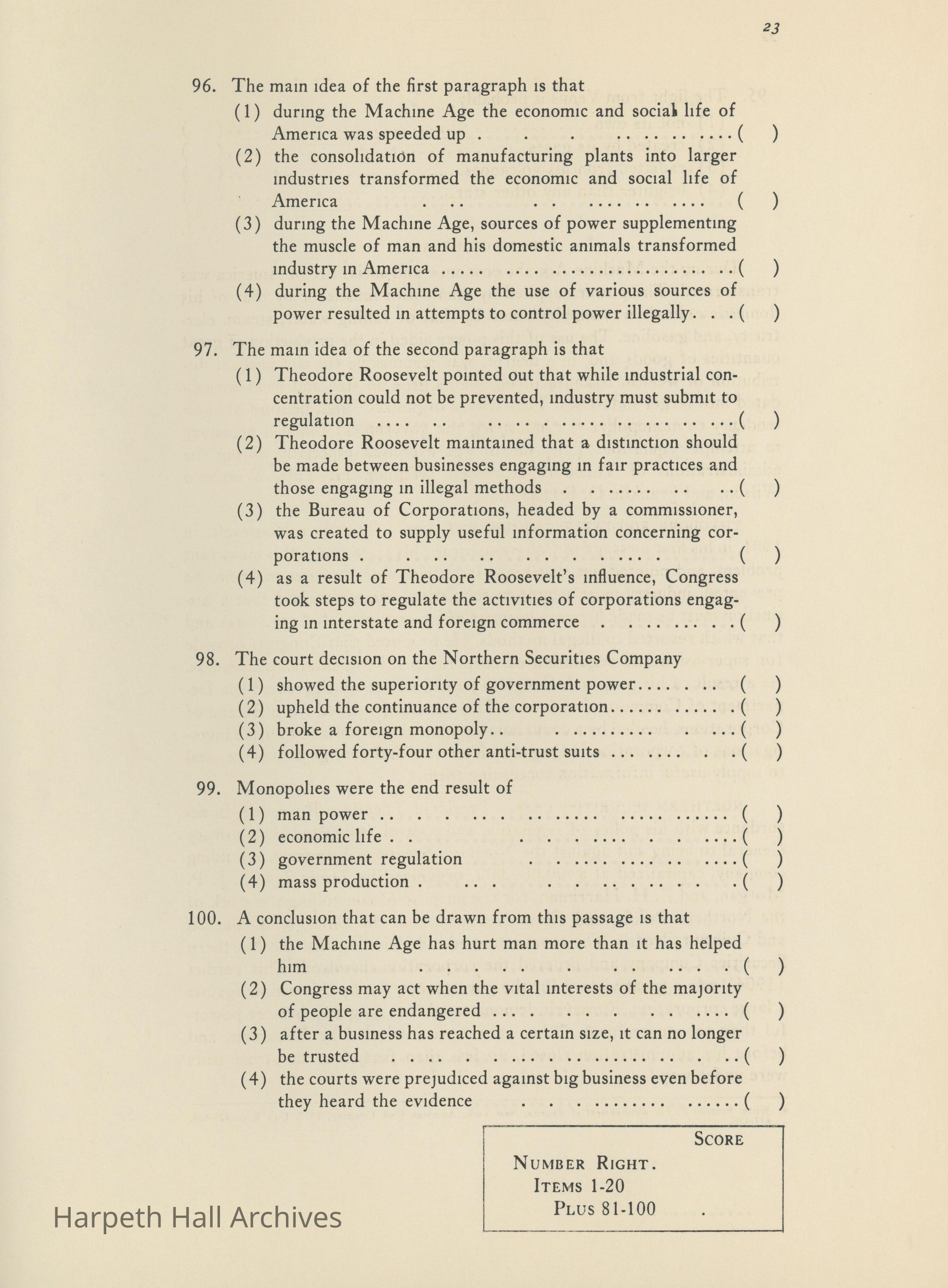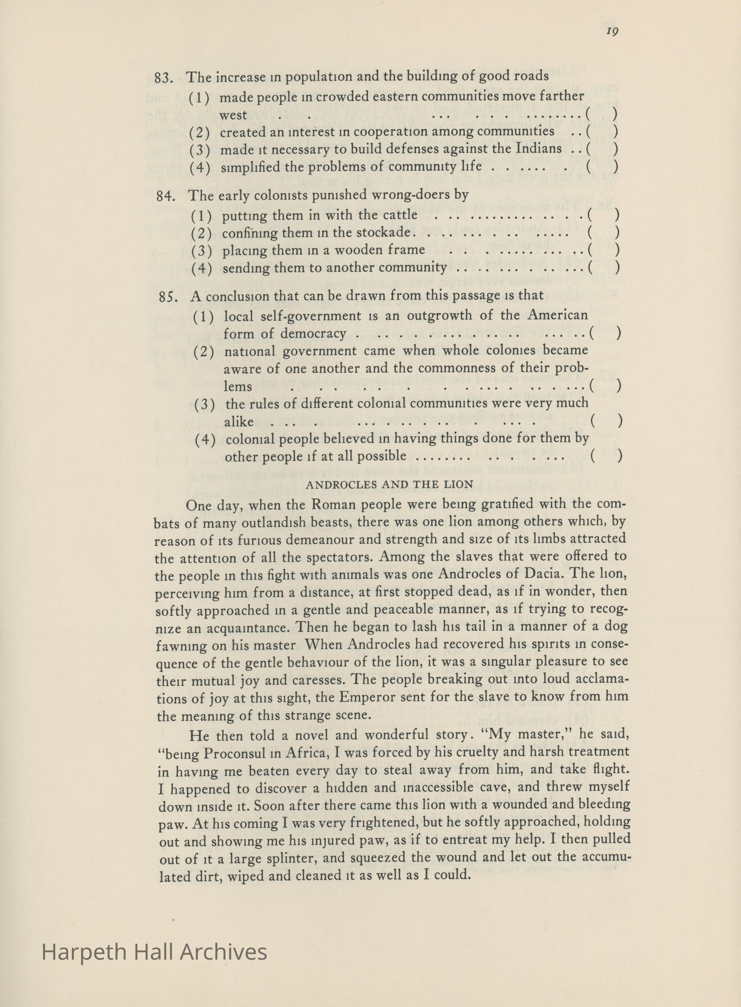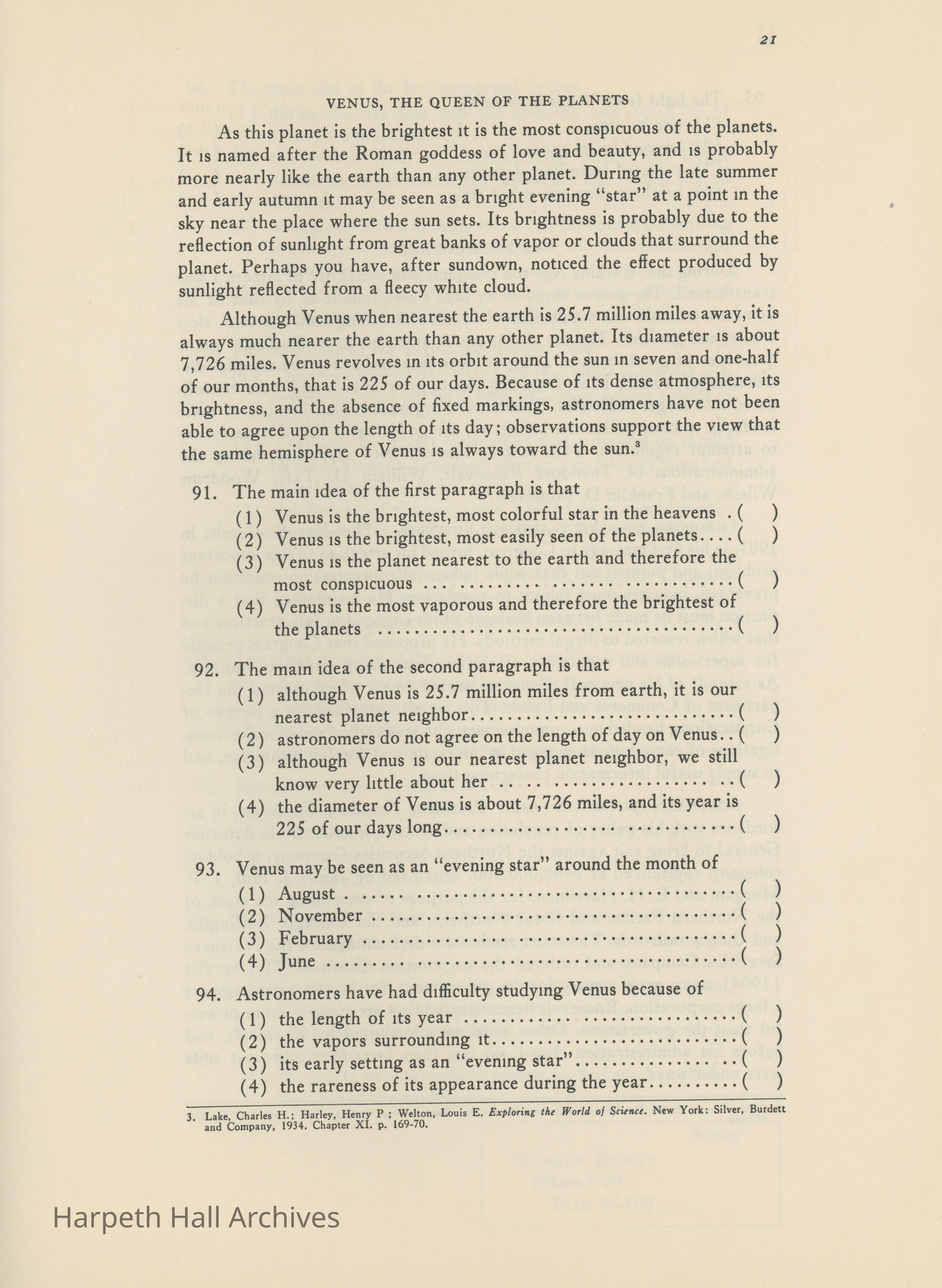 The diagnostic reading tests survey section packet used by Ward-Belmont students.