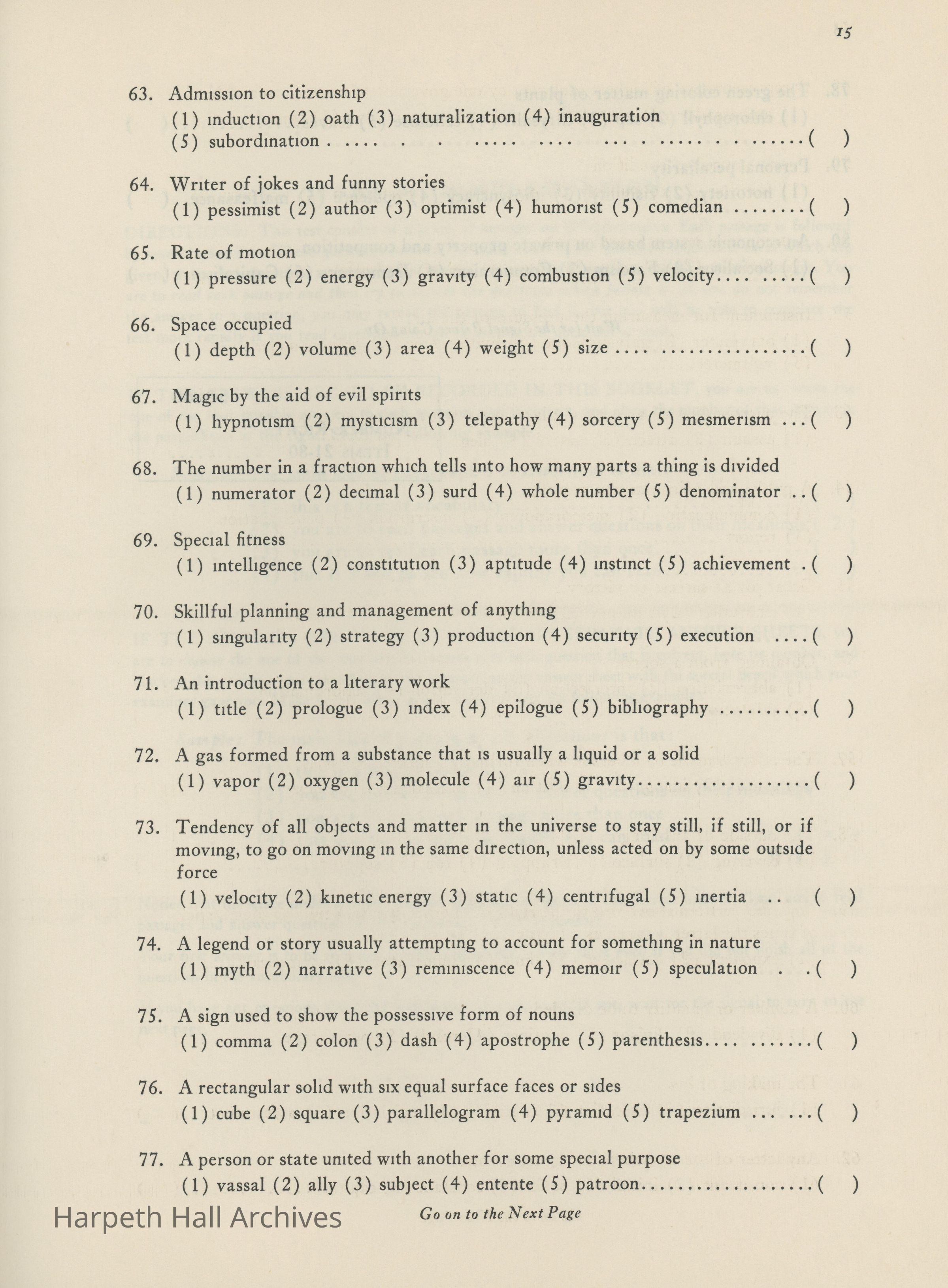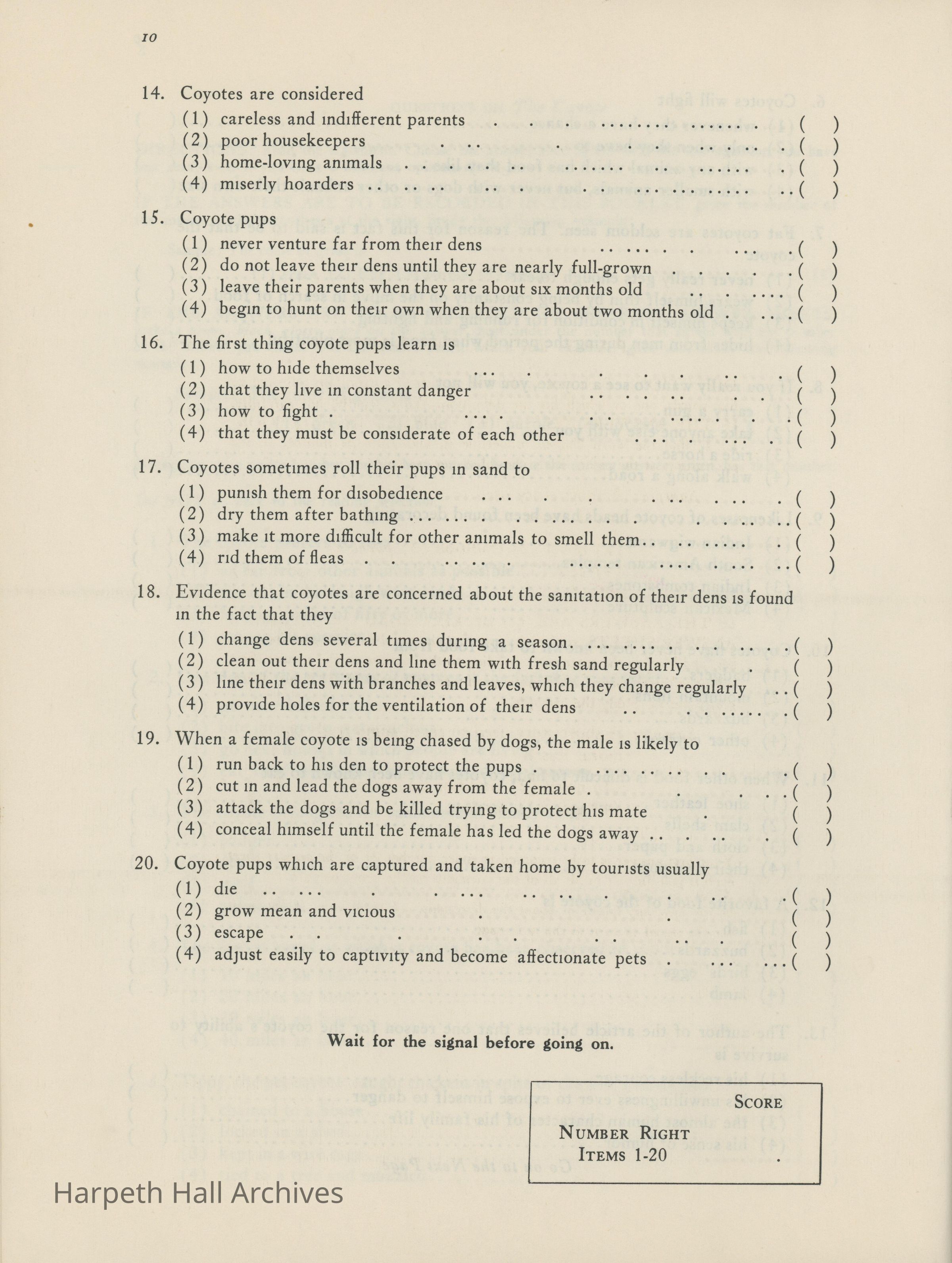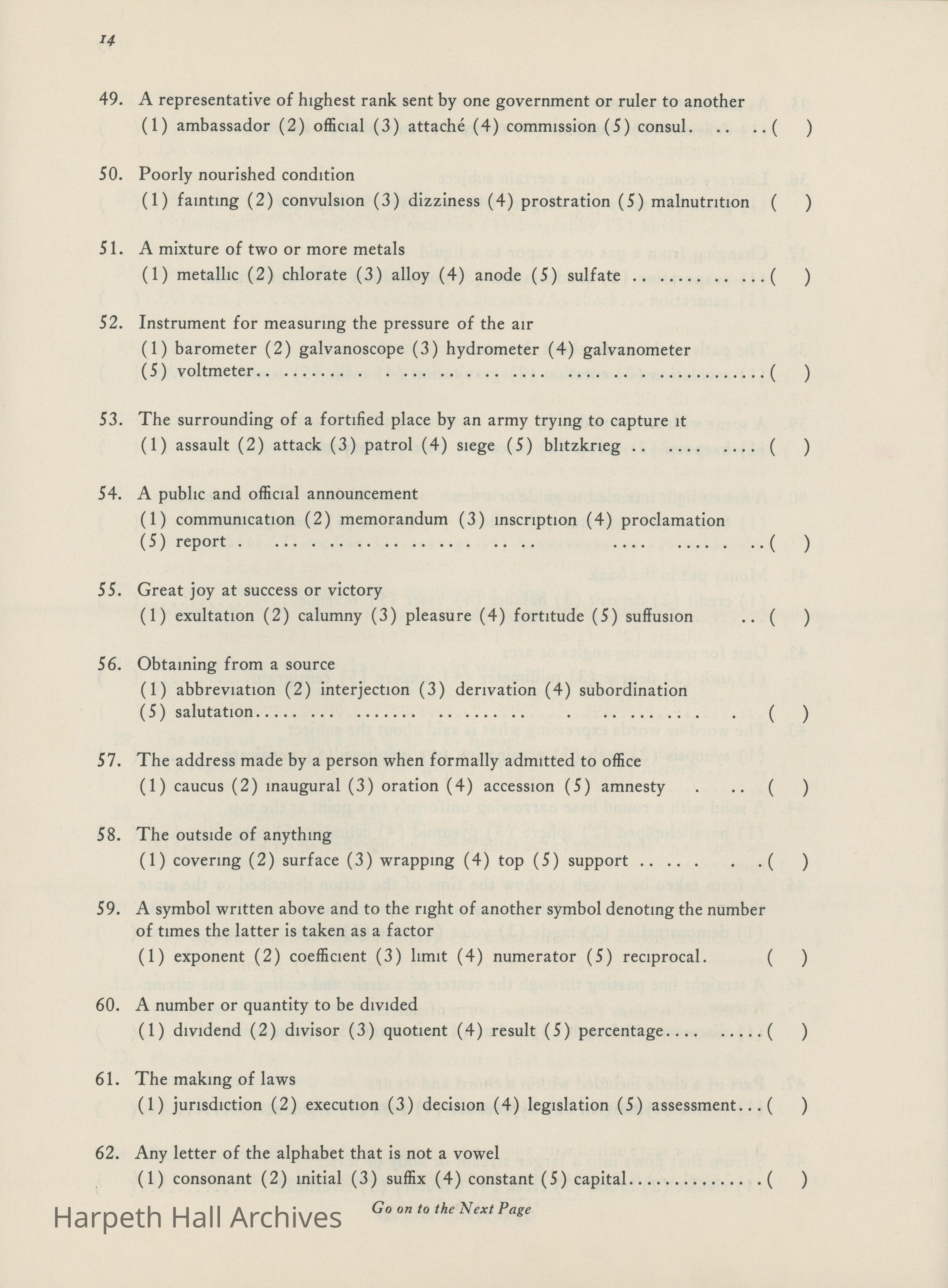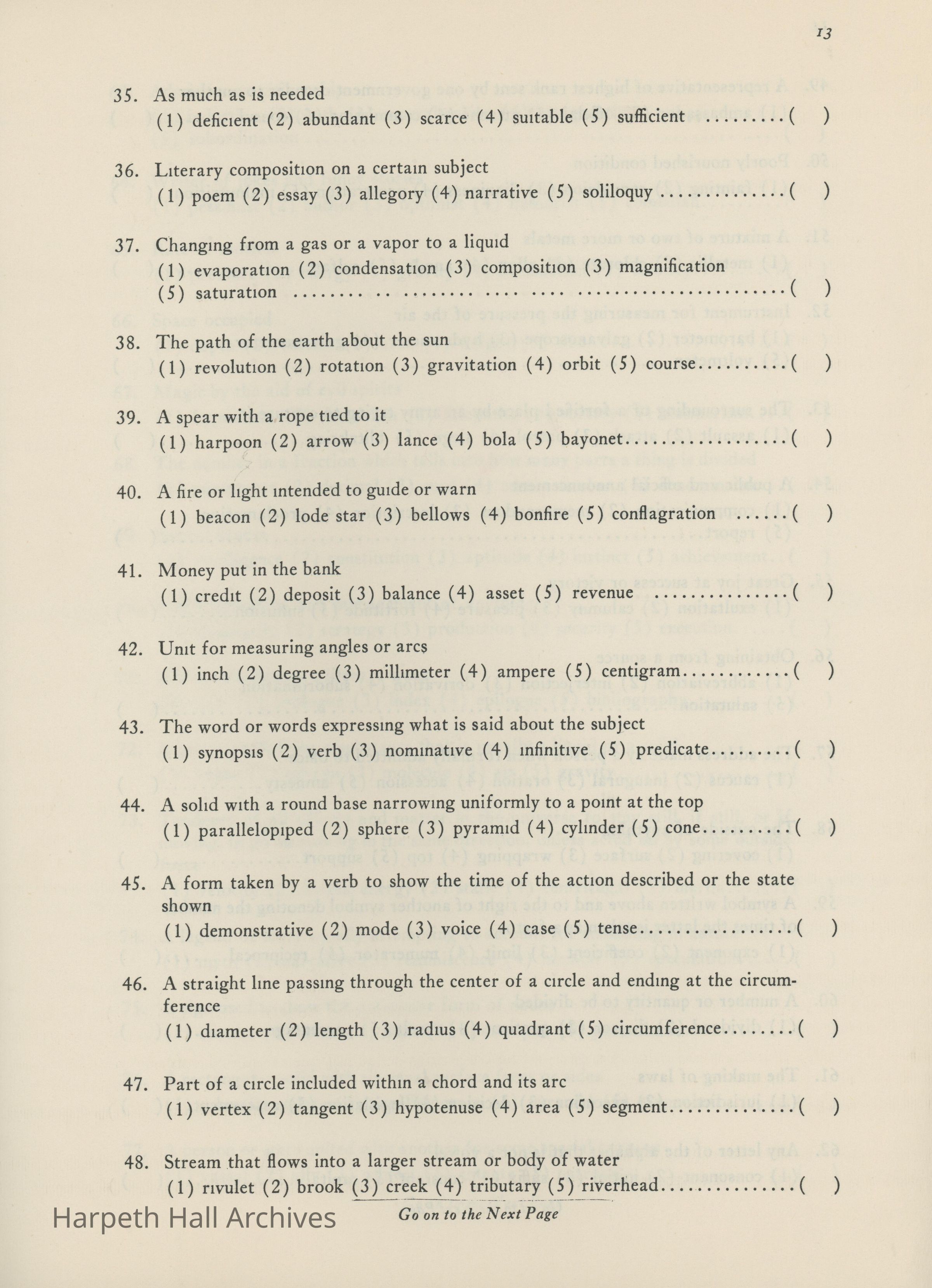 The diagnostic reading tests survey section packet used by Ward-Belmont students.