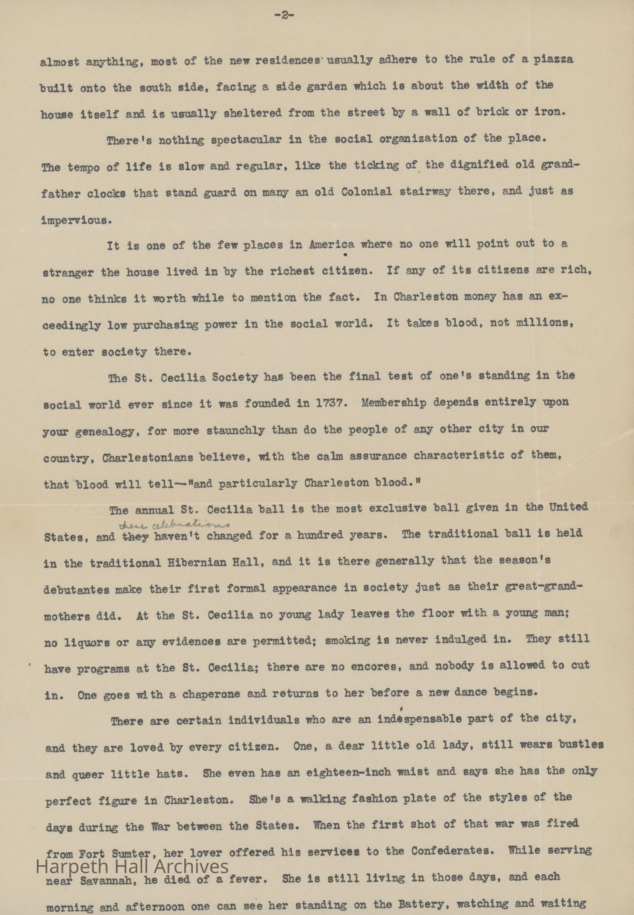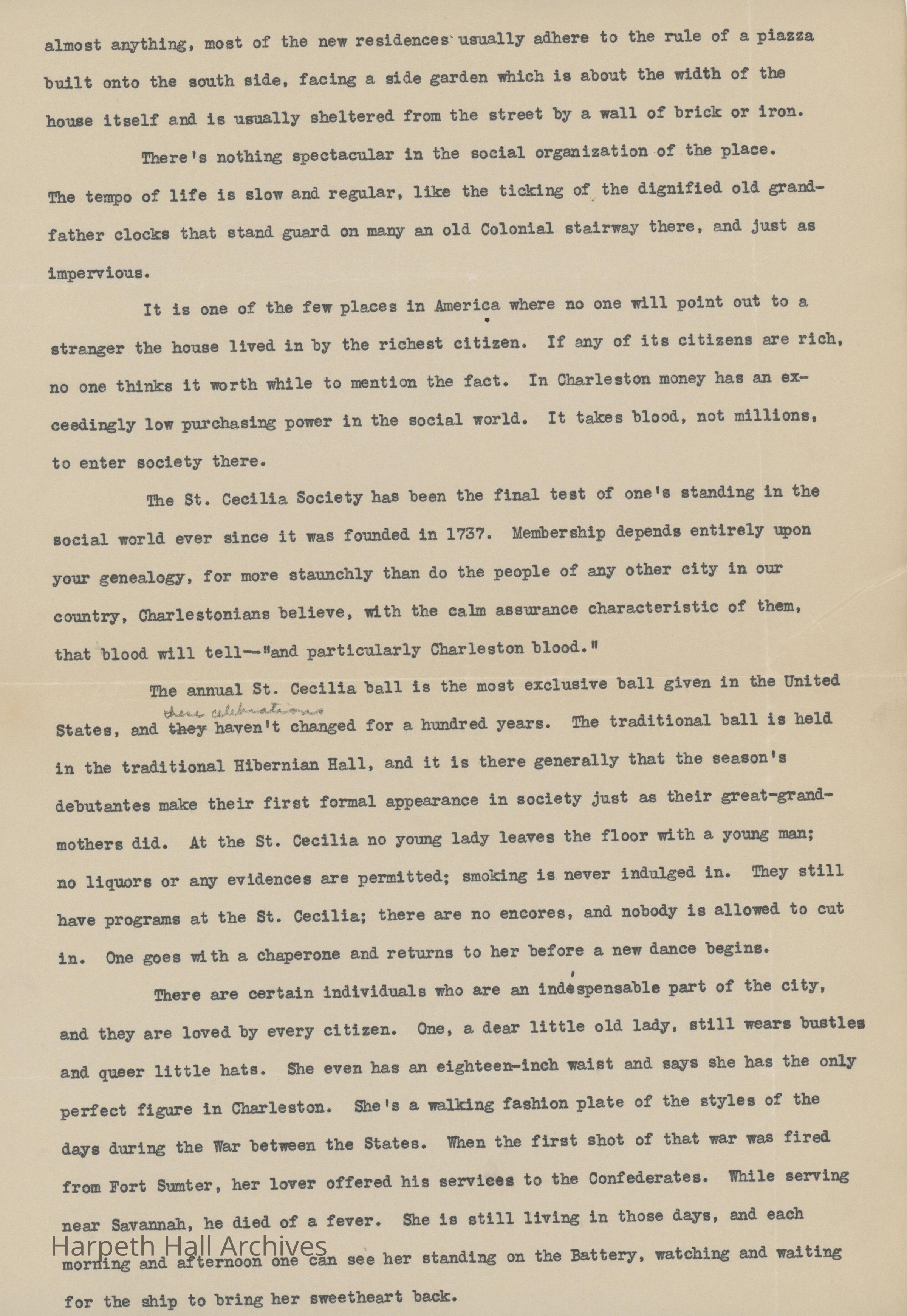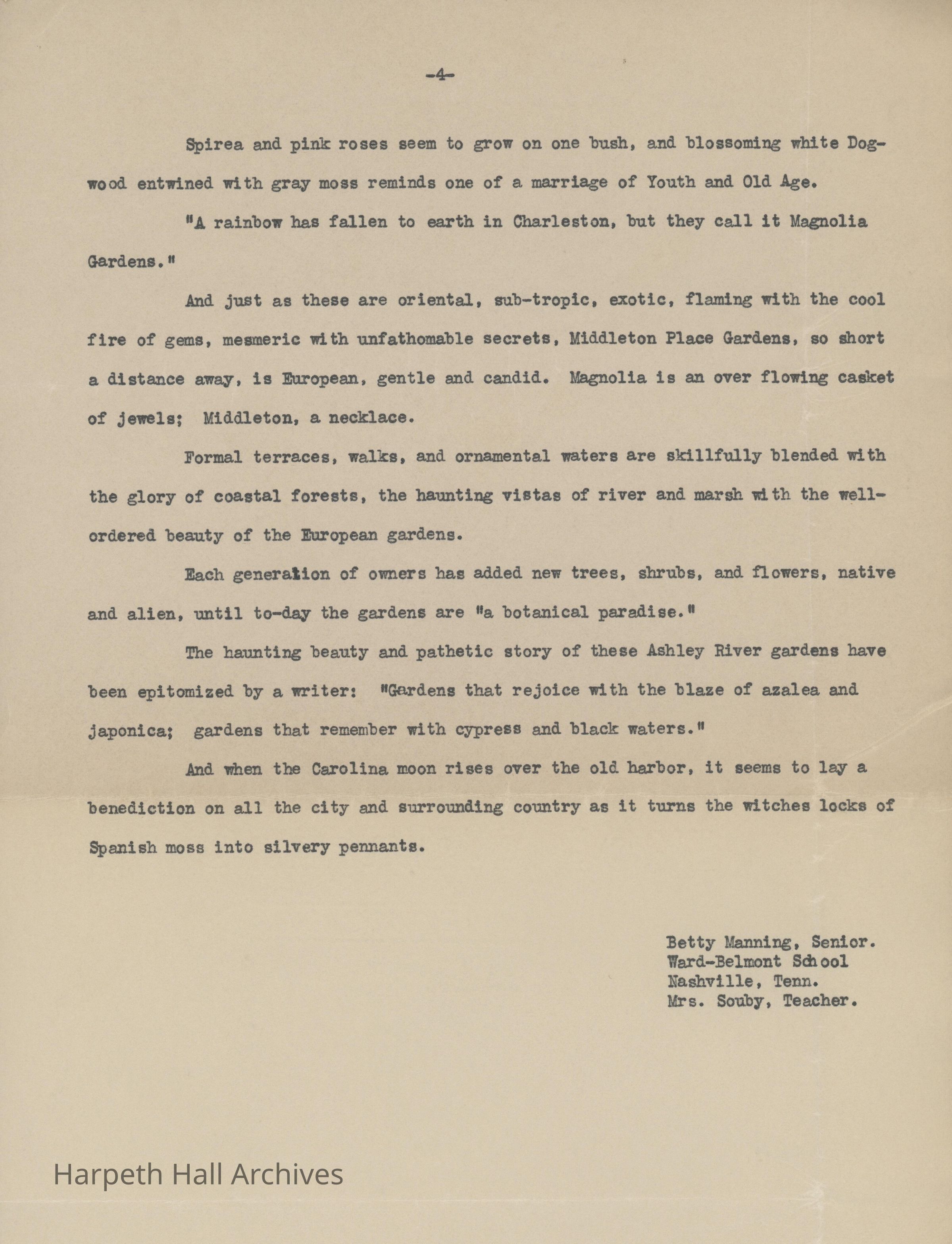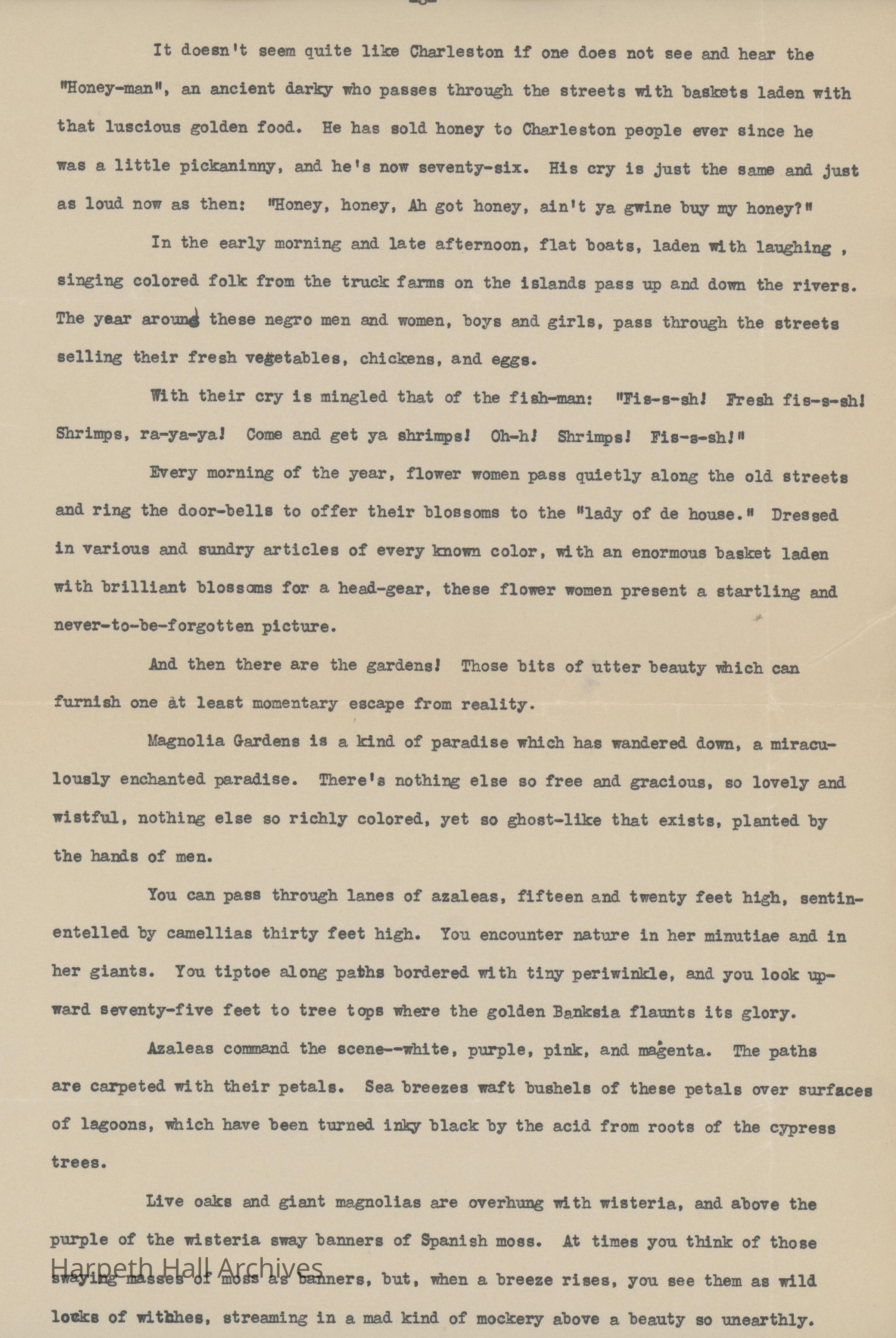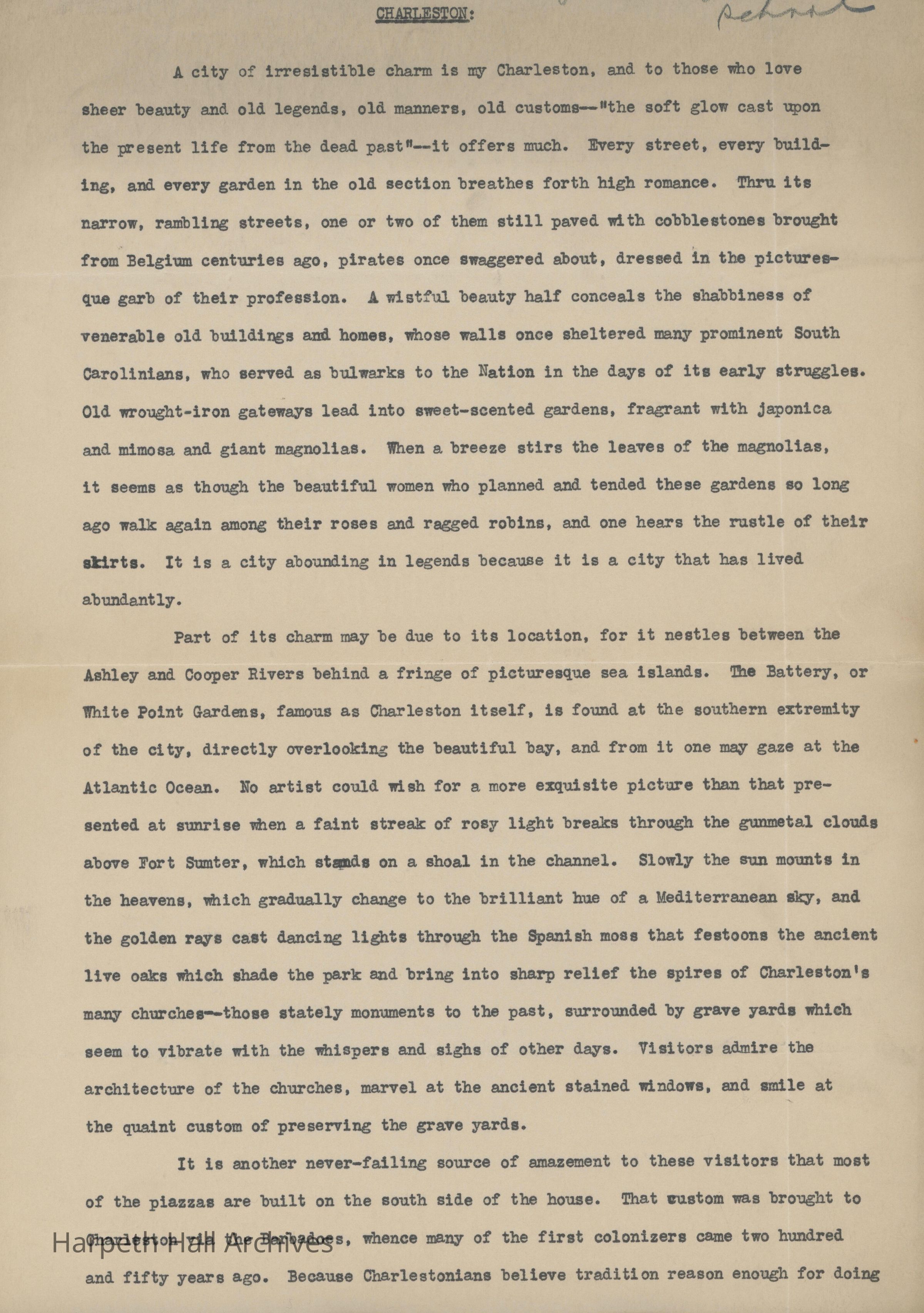 An essay entitled, "Charleston" written by Ward-Belmont student, Betty Manning. The essay won a $15 prize.Collection