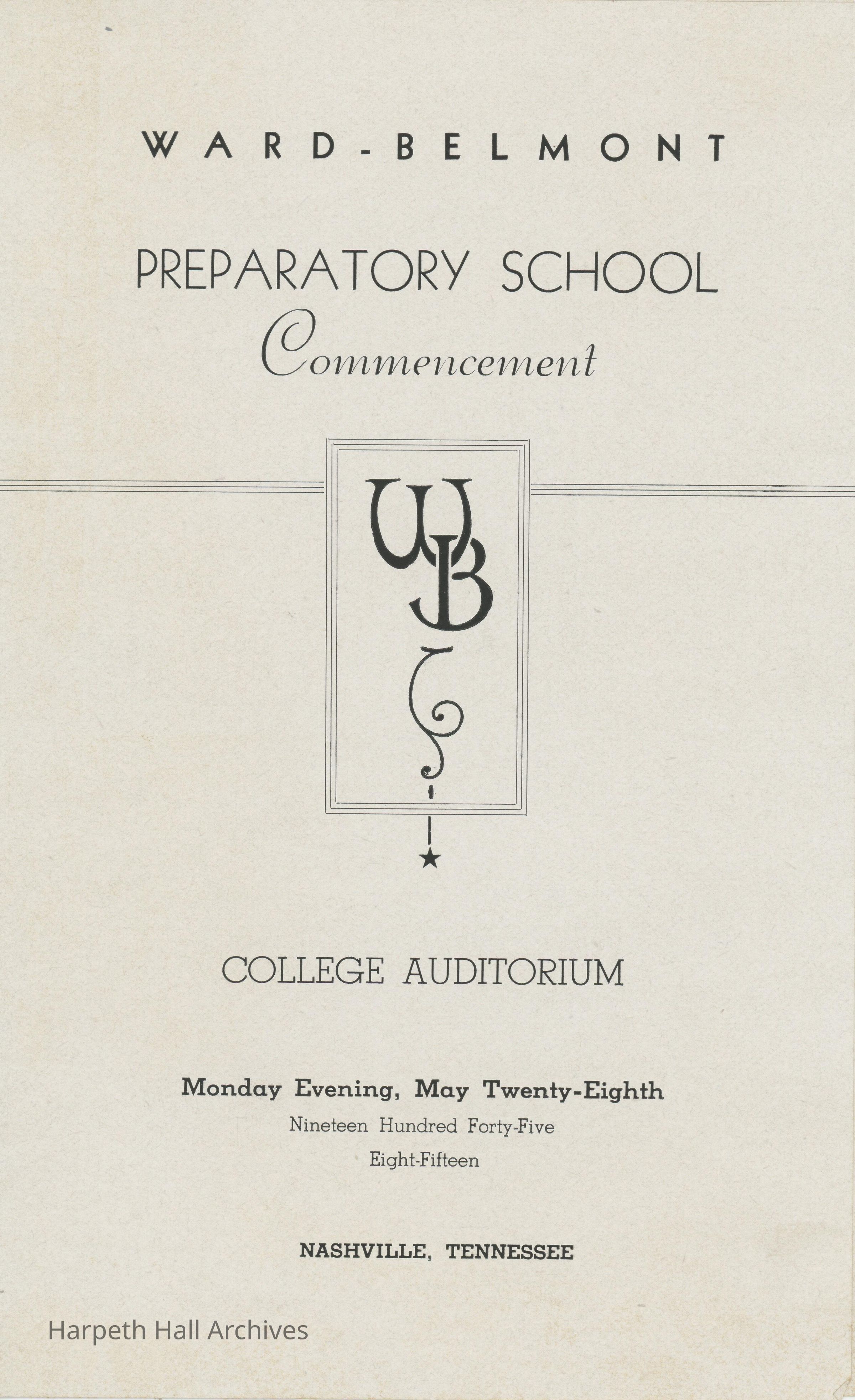 The program for Ward-Belmont's Preparatory School Commencement on May 28th, 1945.Collection