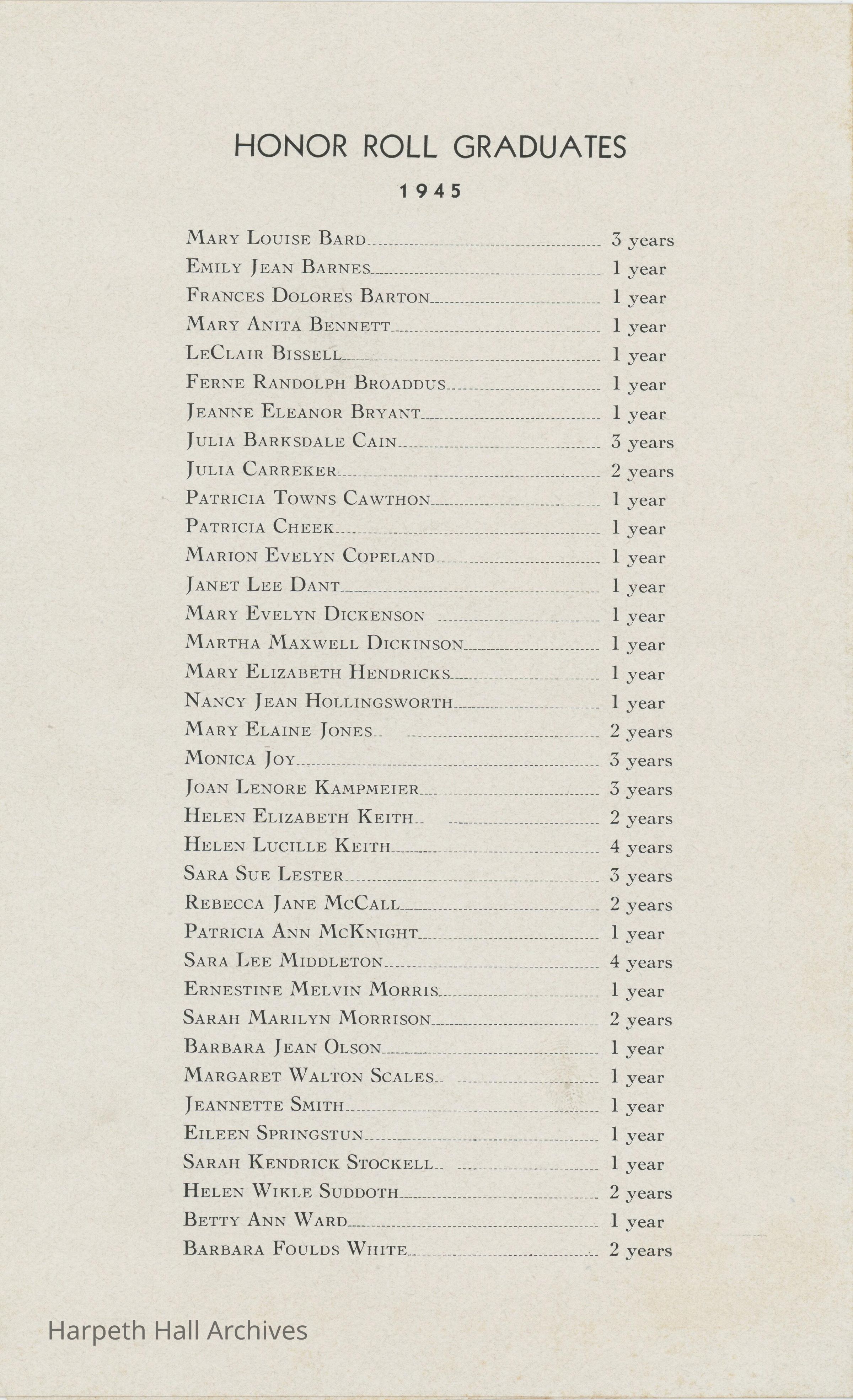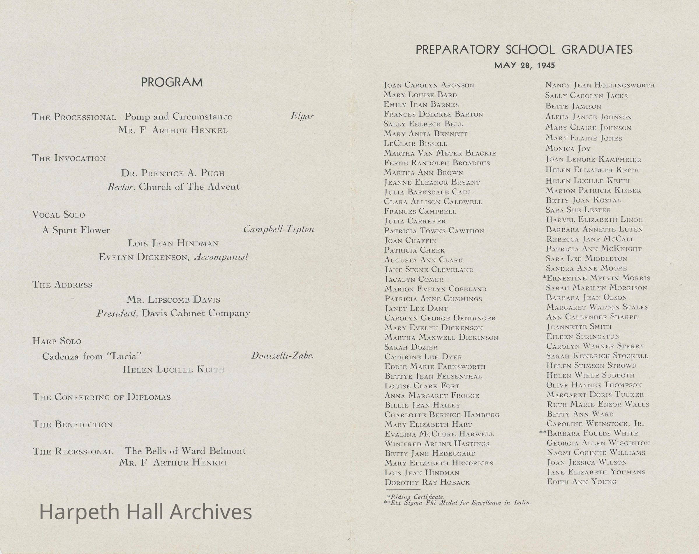 1945, Ward-Belmont, Commencement, Program