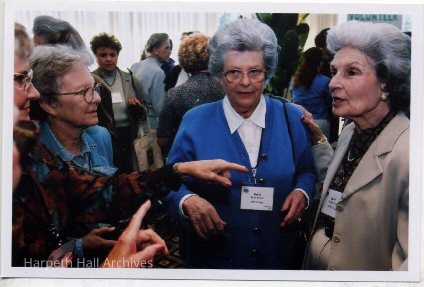 second from the right is Betty Black Bryant (1944) and on the far right is Lorell McCann Ryan (1945) at the Ward-Belmont Reunion in October 2000