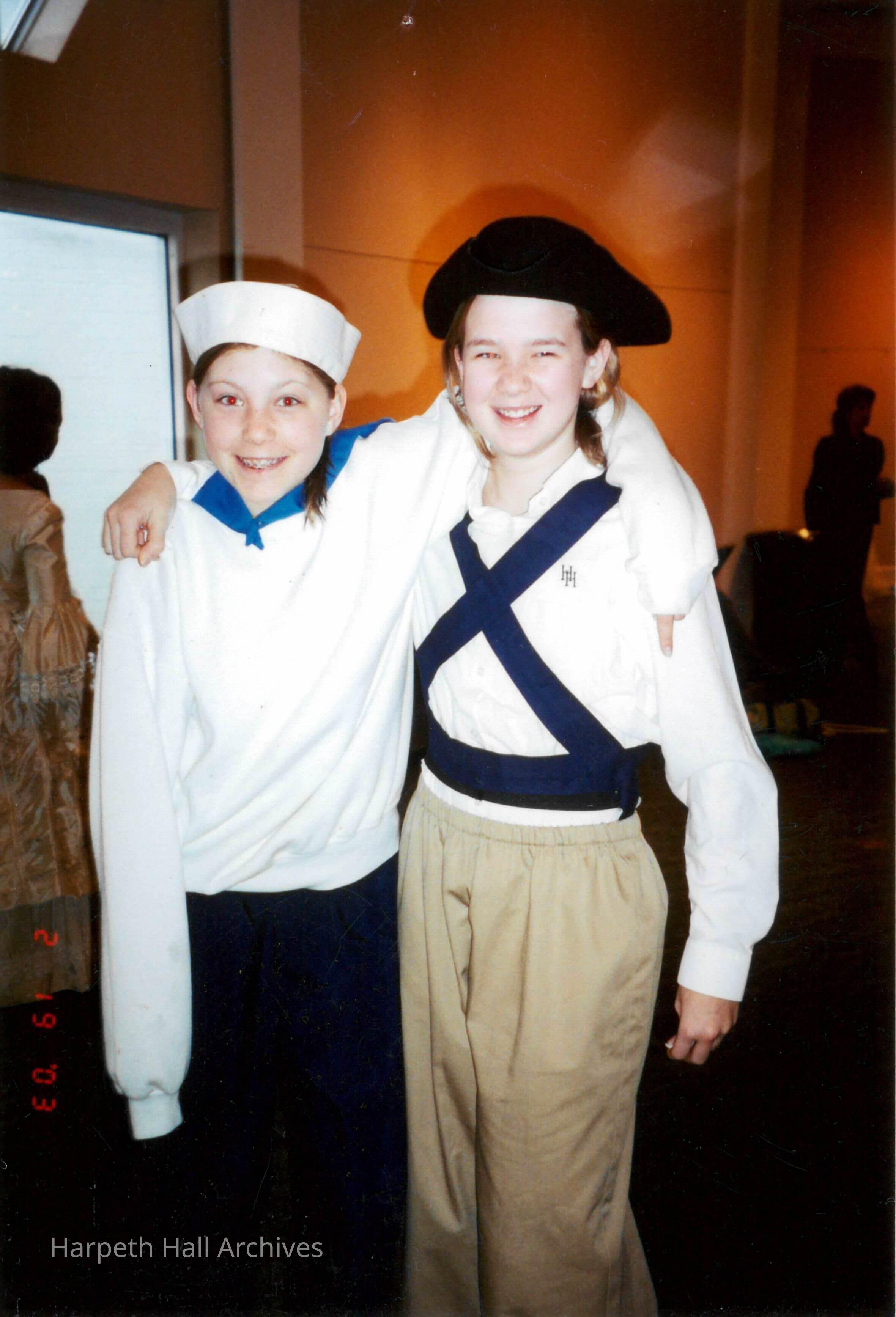Two seventh grade students who performed in the George Washington Day Celebration on February 19, 2003. The students are from the class of 2008, and the photo is taken in the Marnie Sheridan Gallery in the McMurry Center.Context