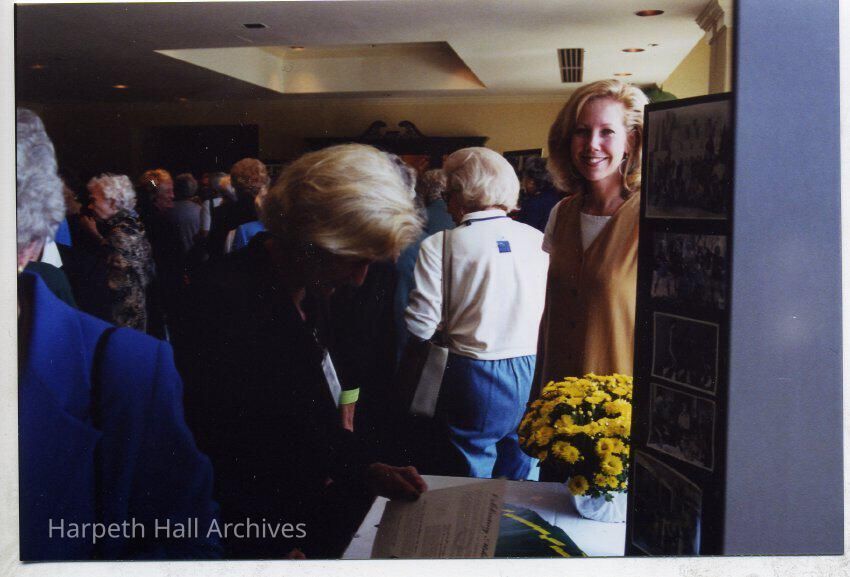 Heather Cunningham Cochran (1979), on the right, is helping with the Celebrating Milestones books at the Ward-Belmont Reunion in October 2000