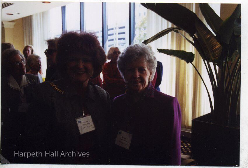 from left to right: Virginia Patton Saunders (192) and Mary "Maxine" Bozeman Salmon (1939) at the 2000 Ward-Belmont Reunion