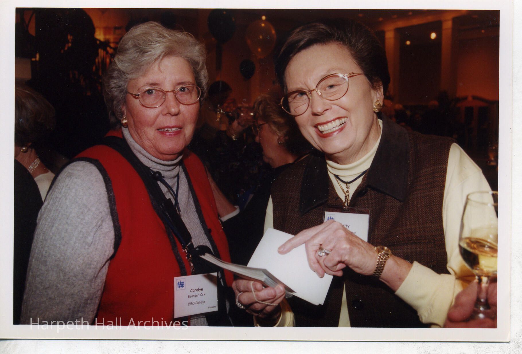 on left is Carolyn Beardon Cox (1950) at the Ward Belmont Reunion in 2000 in the Marnie Sheridan Gallery at the Harpeth Hall School