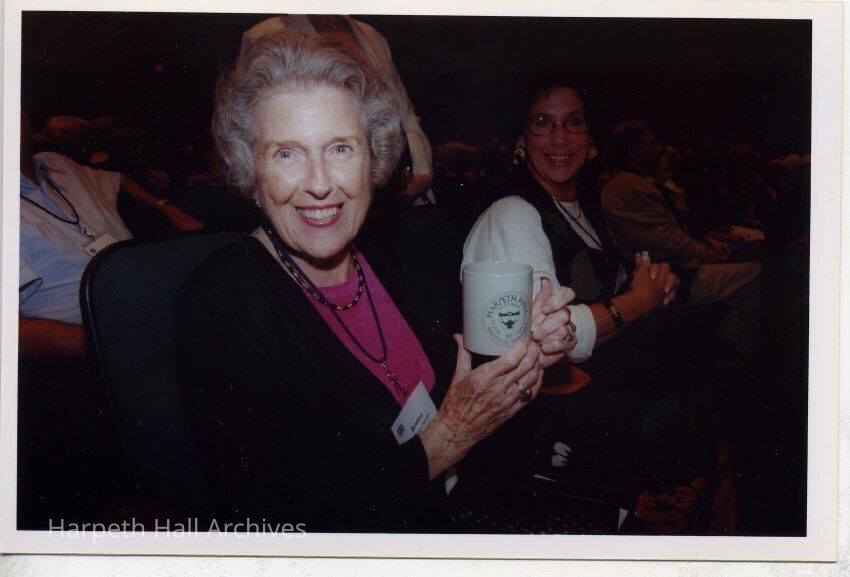 Berenice MacGregor Gordon (1931) receives a mug in honor of her 70th reunion at the Ward-Belmont Reunion in 2000 in the Frances Bond Davis Theater located at the Harpeth Hall School