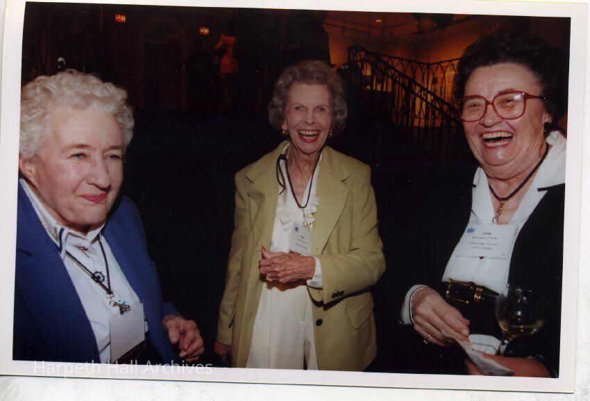 Jane Woodward Adair (1942), on the right, and others at the Ward-Belmont Reunion in 2000 in the Marnie Sheridan Gallery at the Harpeth Hall School