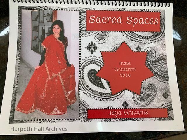 Jaya Williams ('10) journal, titled "Sacred Spaces," kept during Winterim 2010 trip to India. Entries organized by places visited in India from Taj Mahal to Ellora Caves with multiple color photographs included.Context