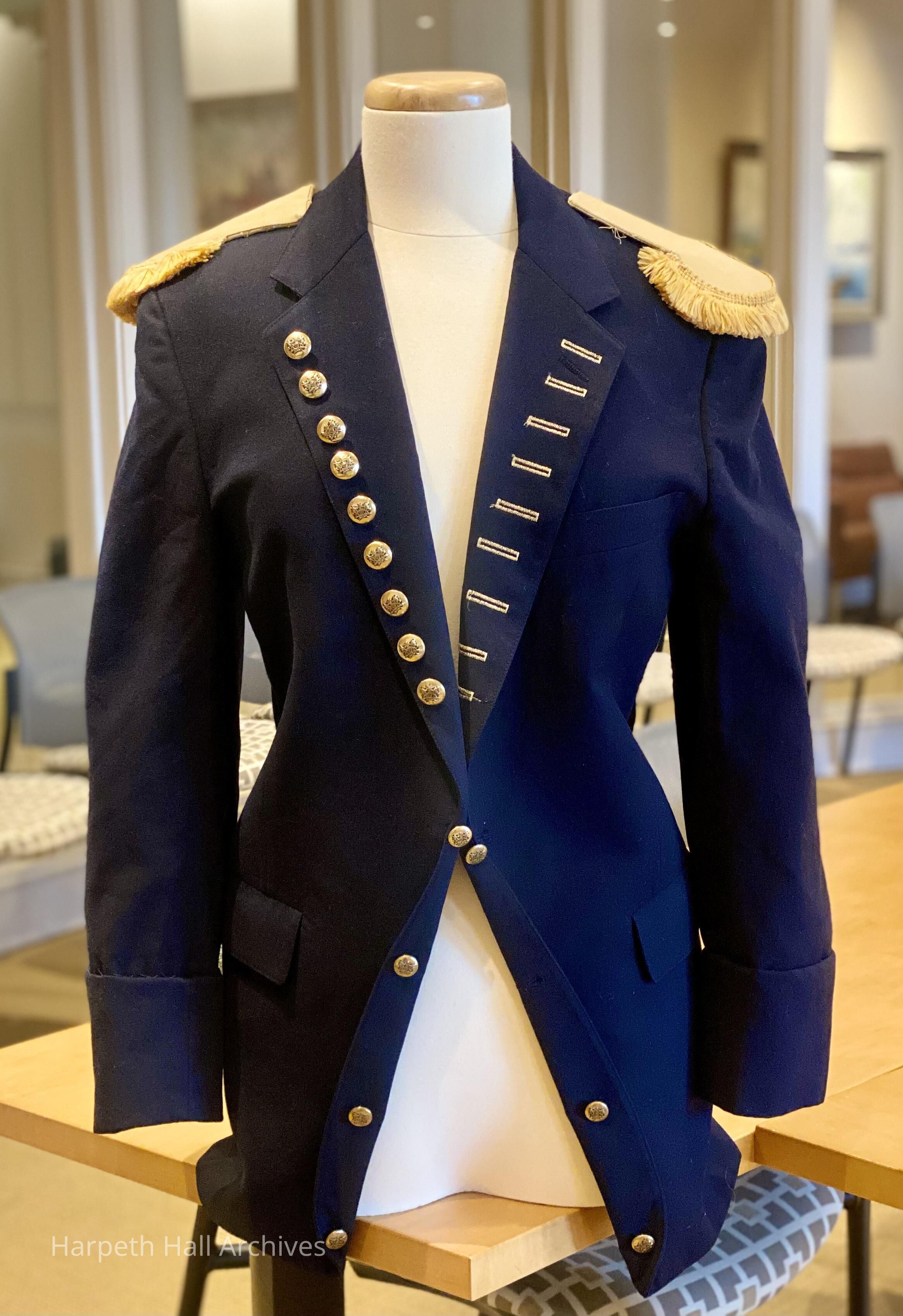 A military-style tunic, worn by students playing the role of George Washington in the George Washington Day Celebration. Younger students played either a solider, a sailor, or a lady or gentleman; two older students were chosen to play George and Martha Washington.Context