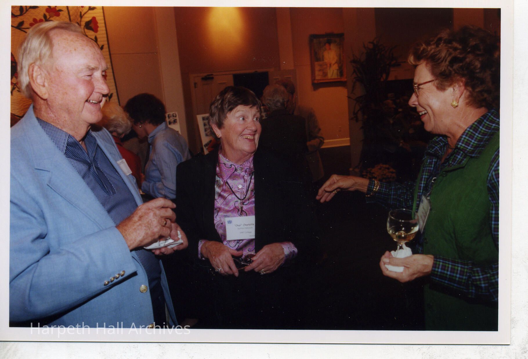 from left to right: Donald "Don)" Nichols and Charlotte "Char" Sutton Hancock (1947) at the Ward-Belmont Reunion in 2000 in the Marnie Sheridan Gallery at the Harpeth Hall School
