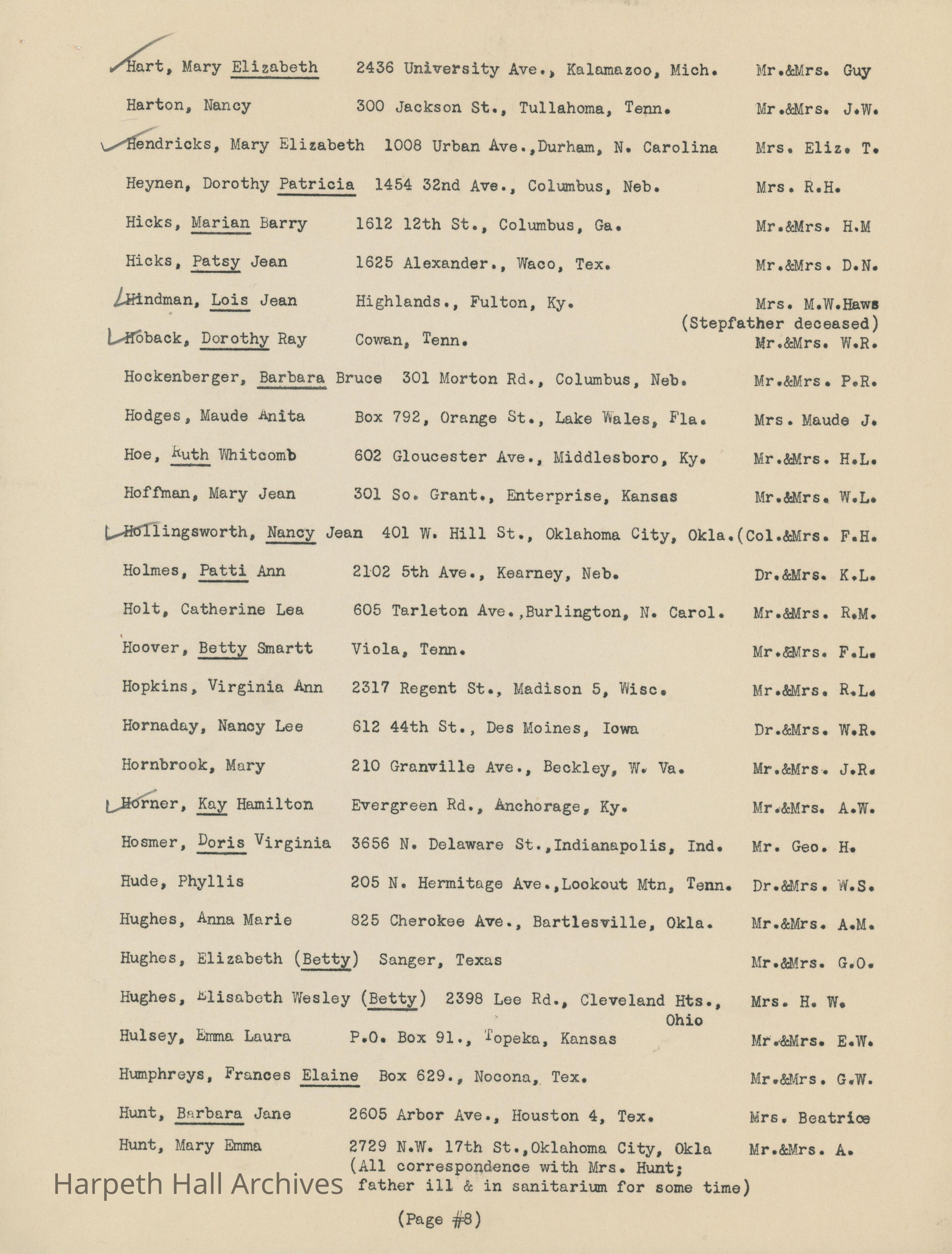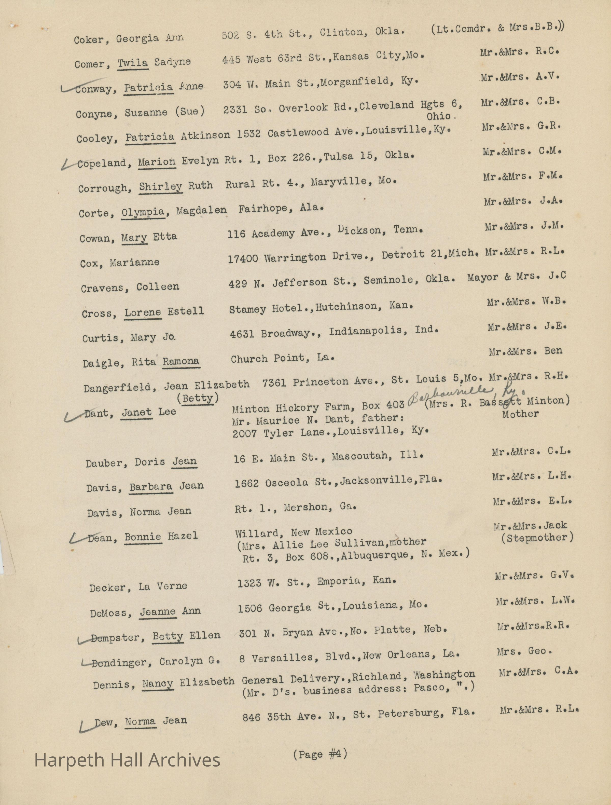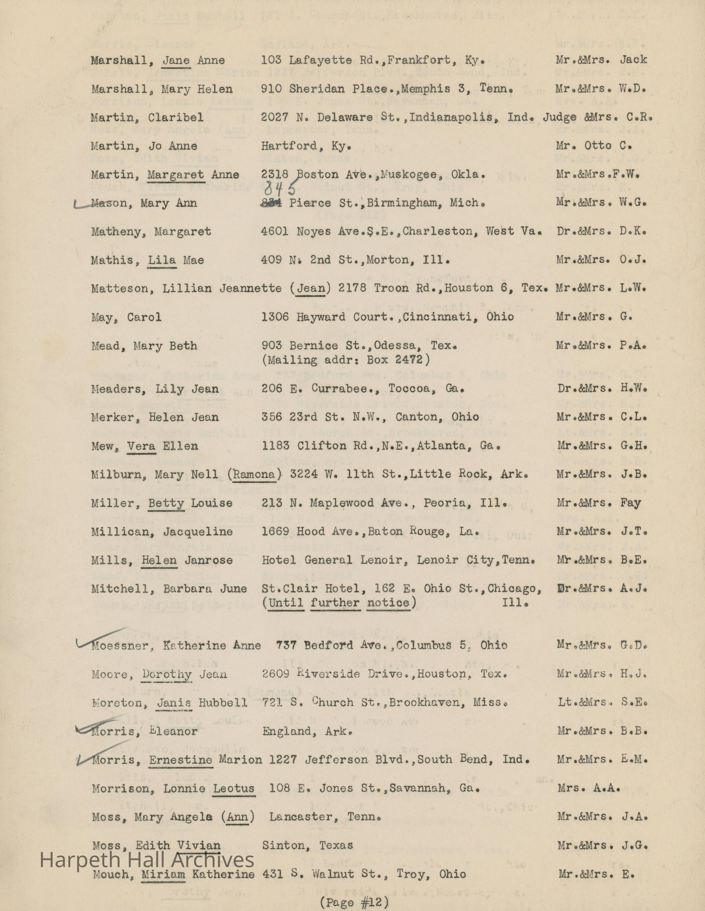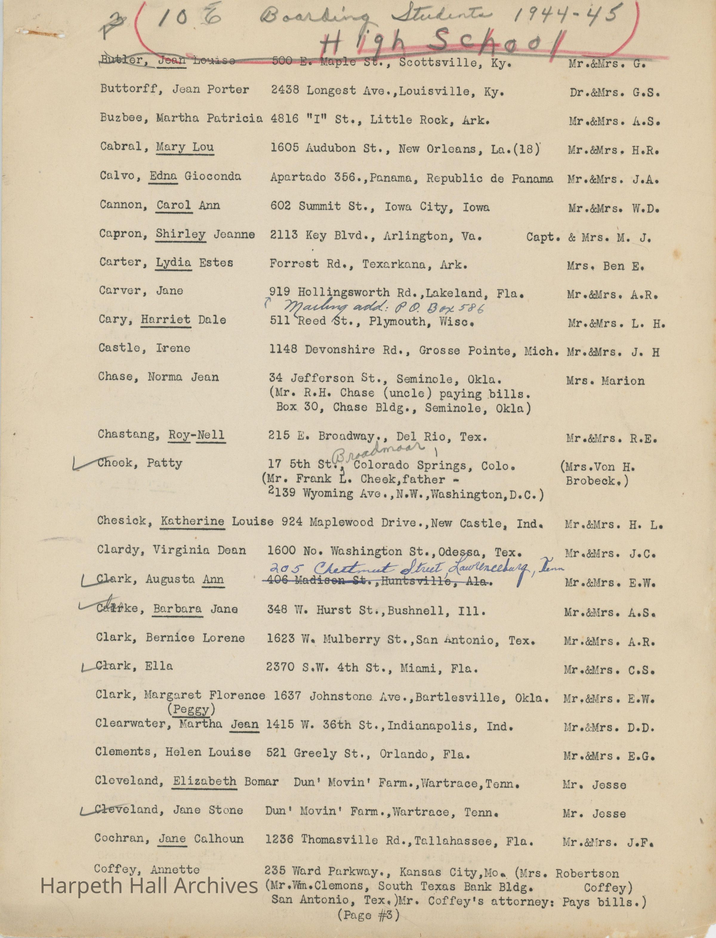 The list of boarding students at Ward-Belmont High School during the 1944-1945 school year.Collection