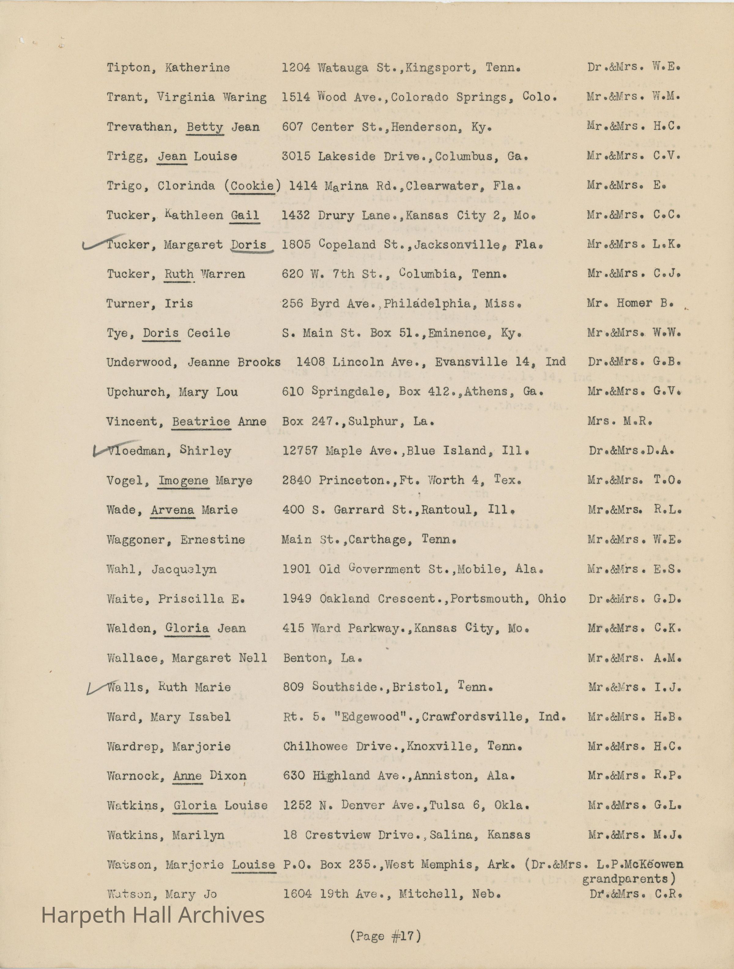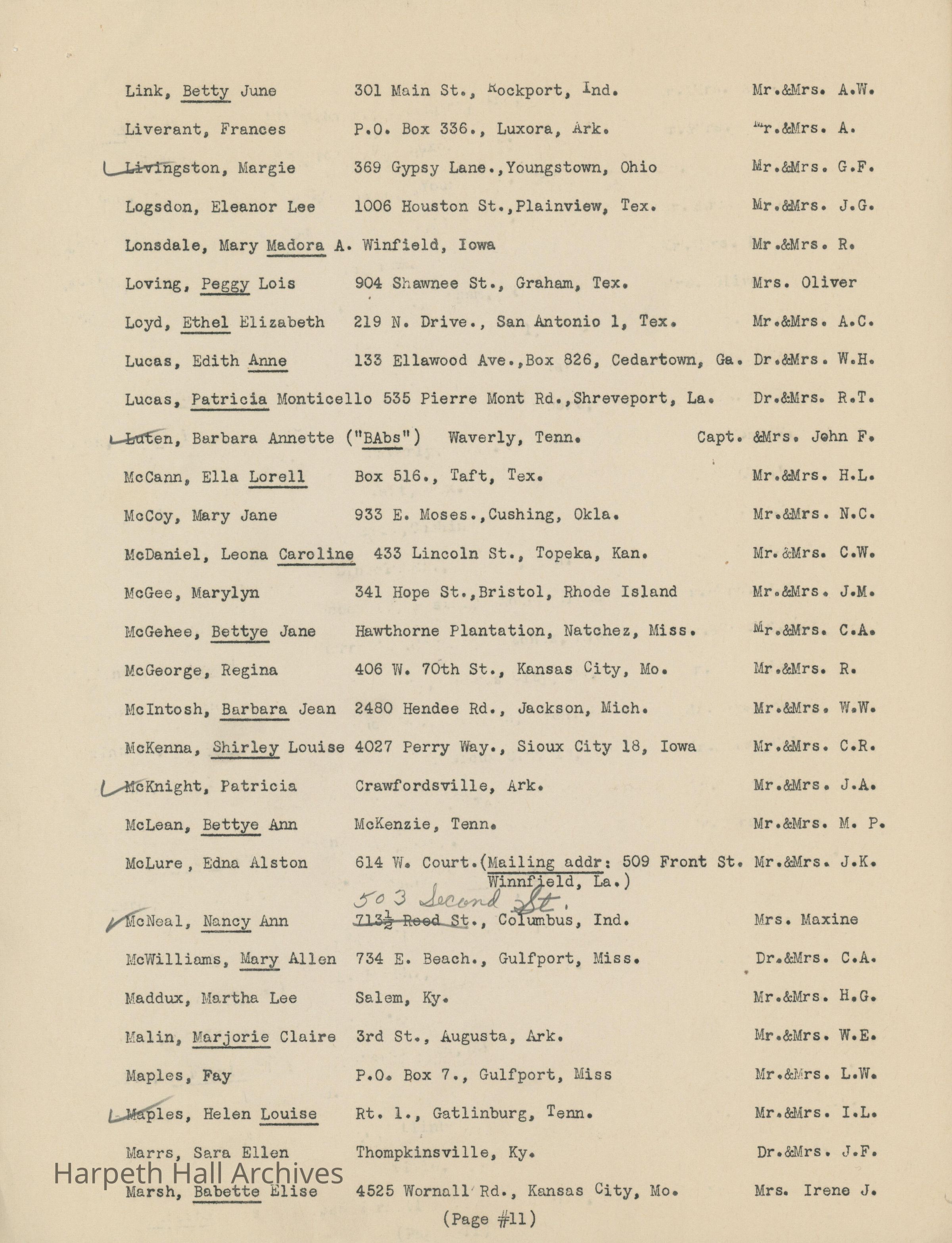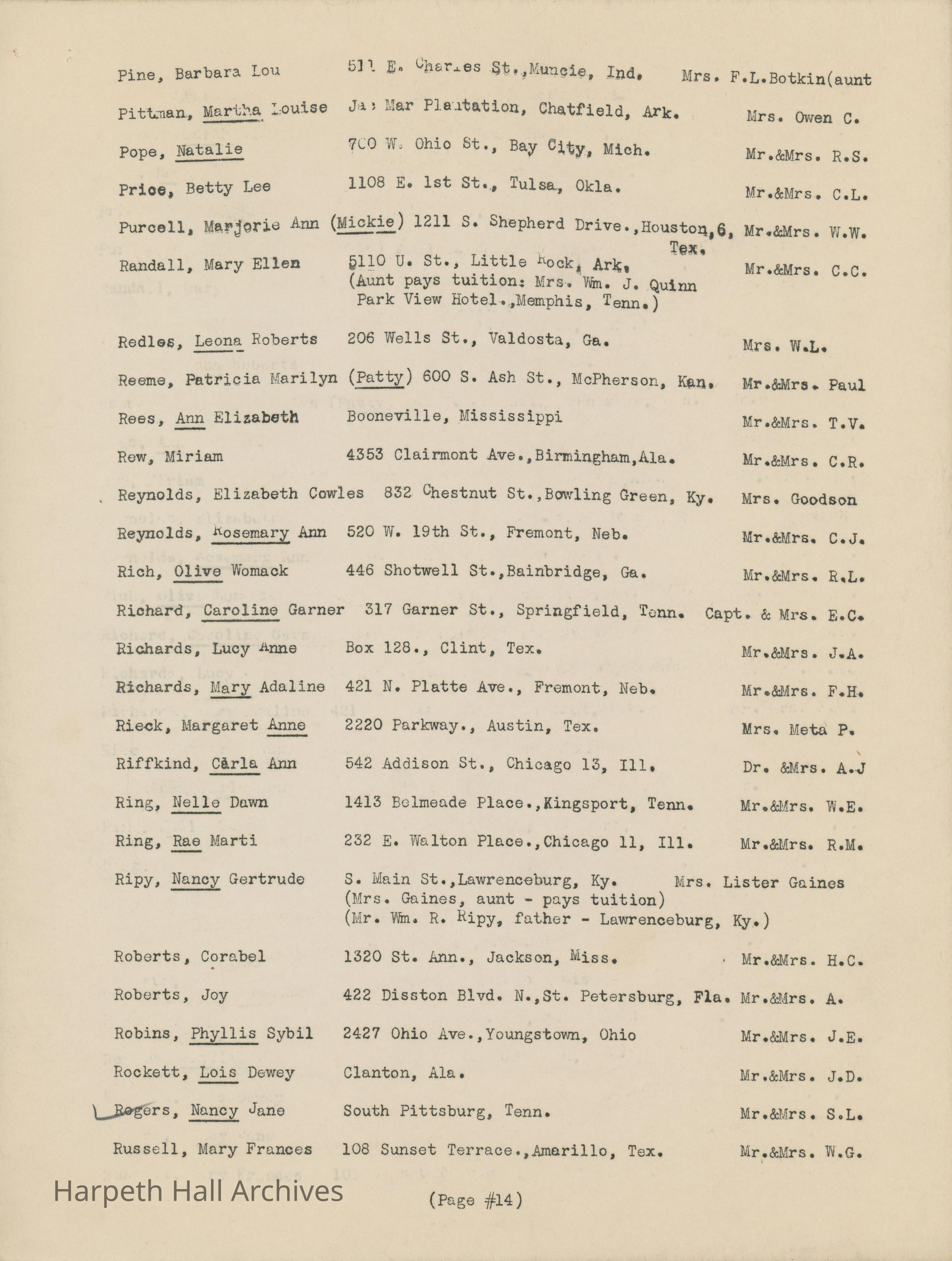 The list of boarding students at Ward-Belmont High School during the 1944-1945 school year.Collection