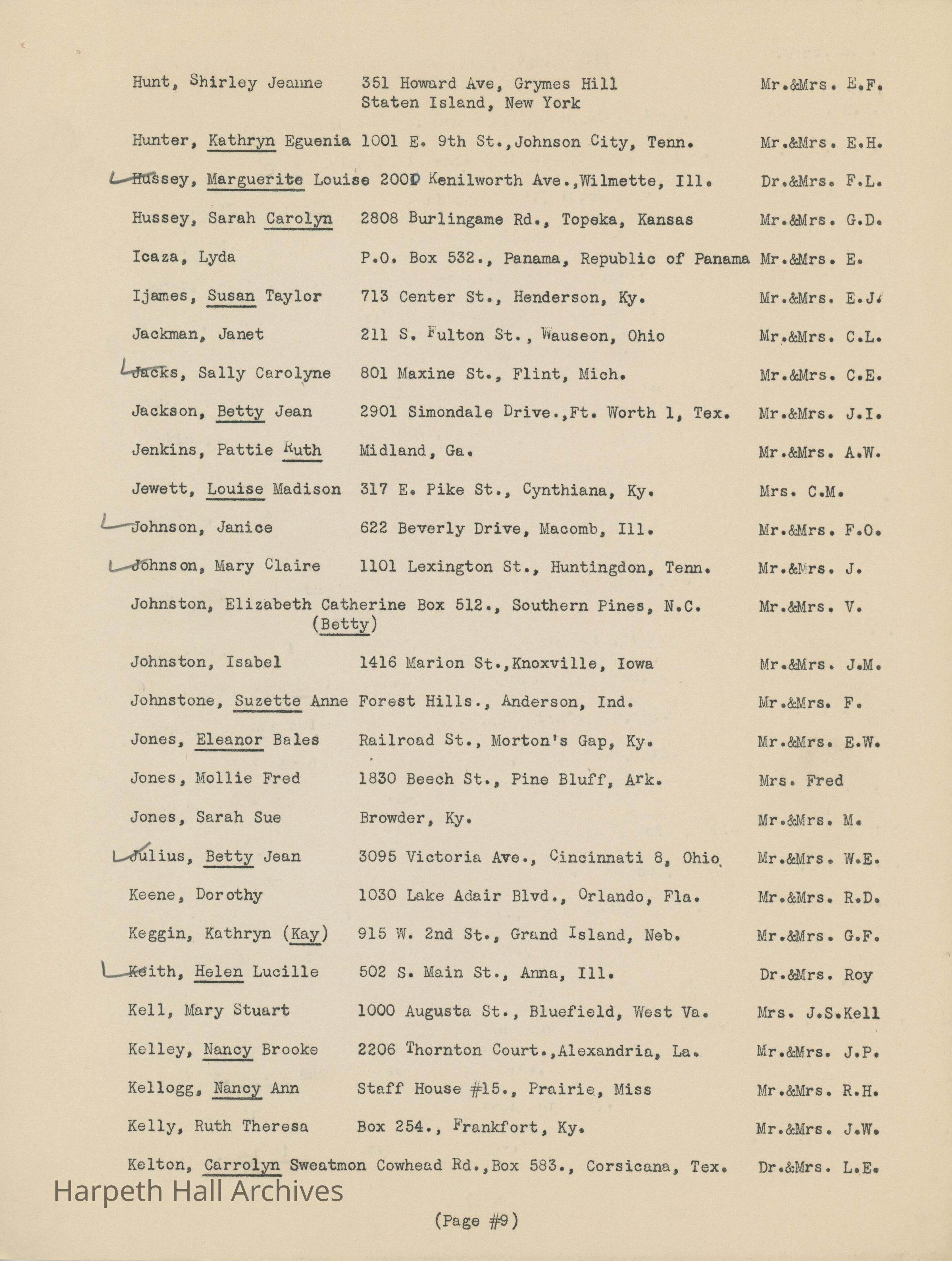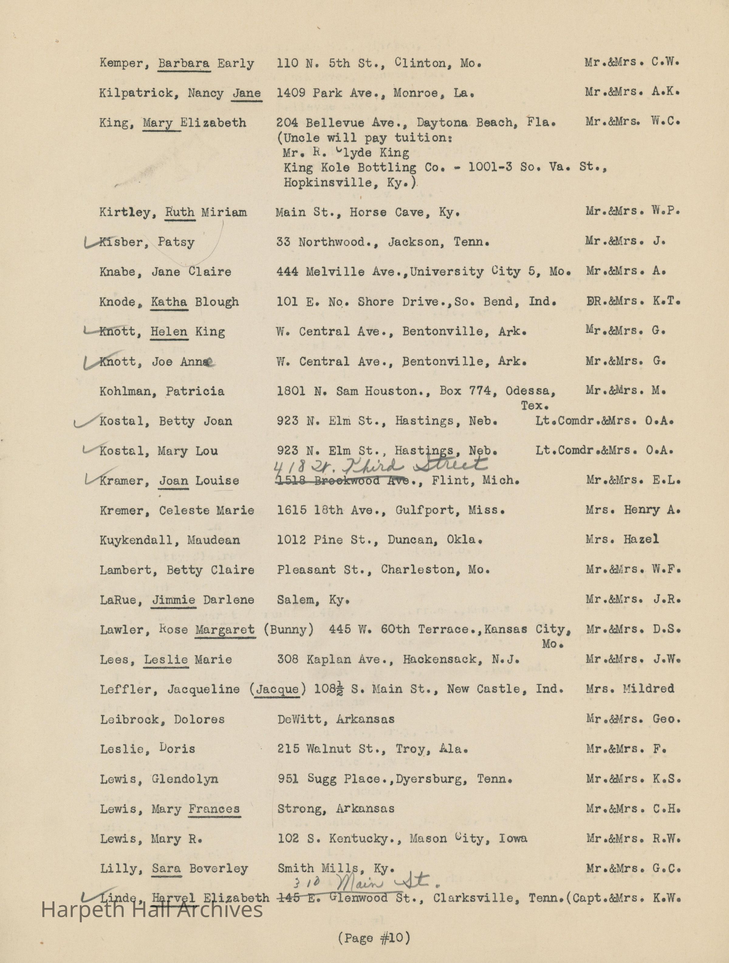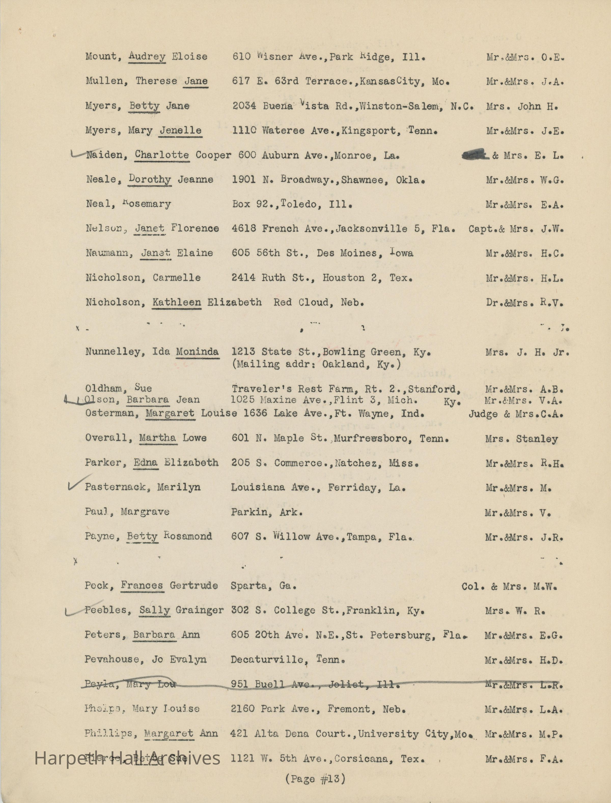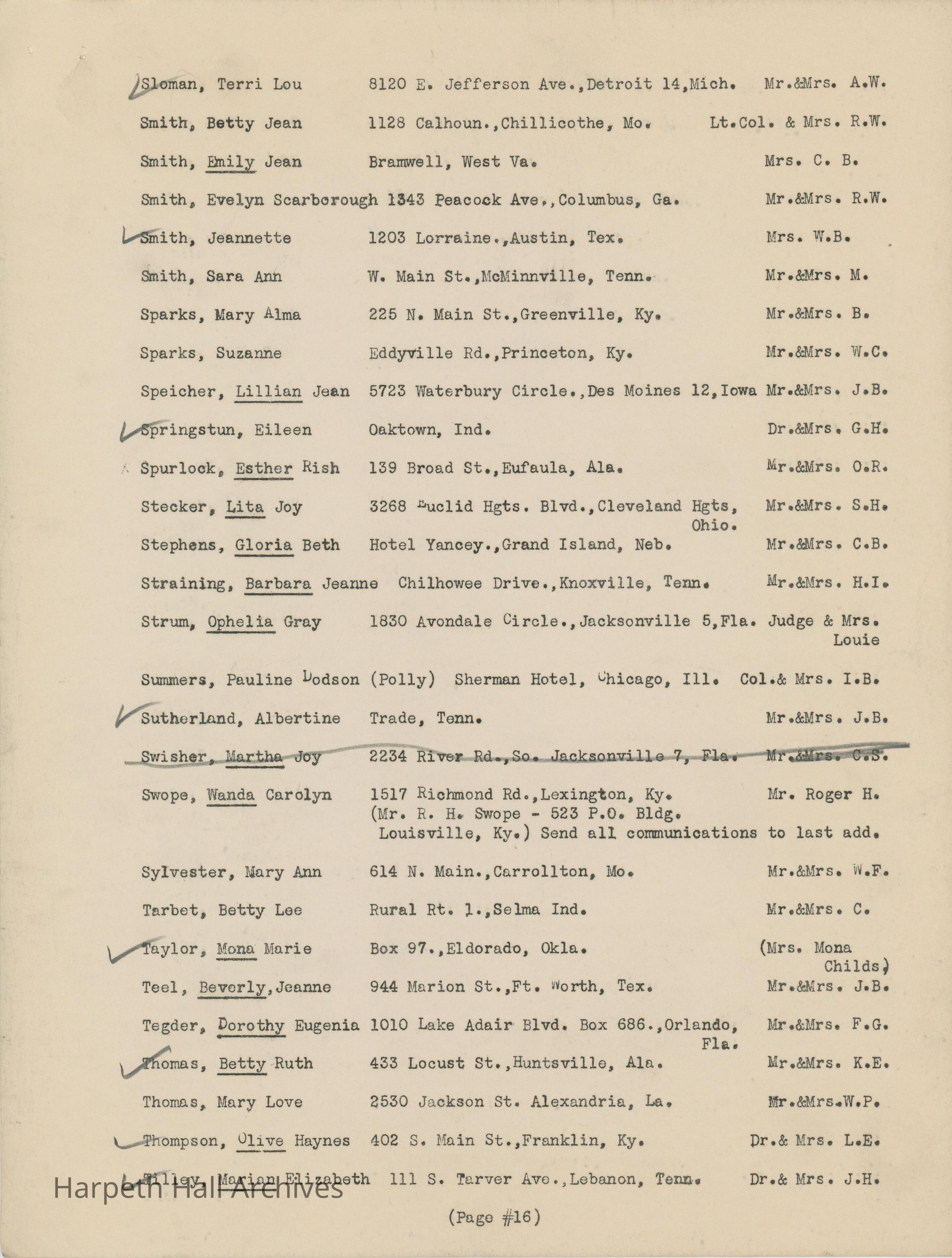 The list of boarding students at Ward-Belmont High School during the 1944-1945 school year.Collection